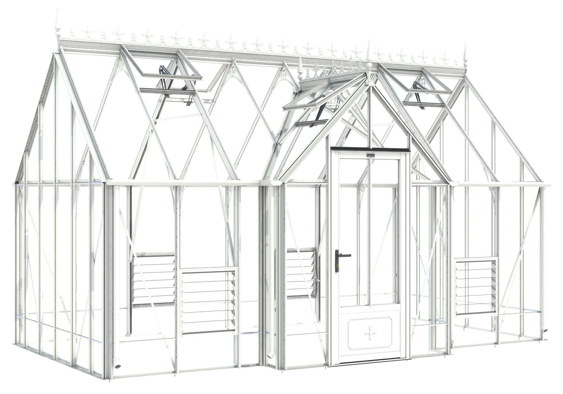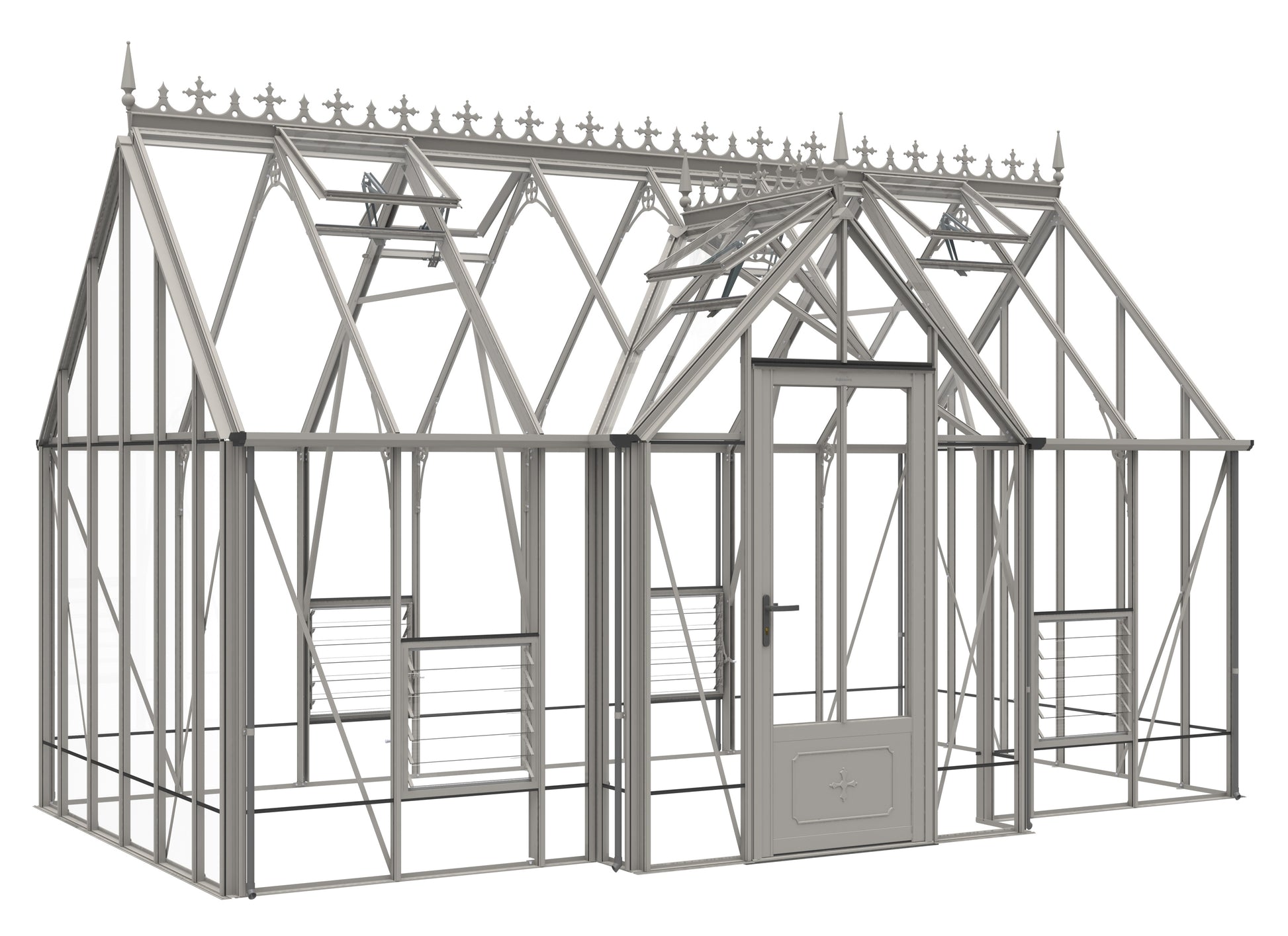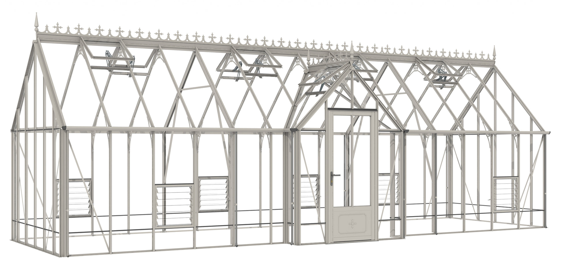 Ventilation is well-catered for in the Radley greenhouse, with numerous automatic roof vents and louvre vents provided. The quantity of vents varies based on the greenhouse's length, ensuring ample airflow and temperature control. To truly capture the stylish Victorian look, consider adding the optional colour-coordinated cast aluminium ridge cresting and finials, adding the perfect finishing touch.