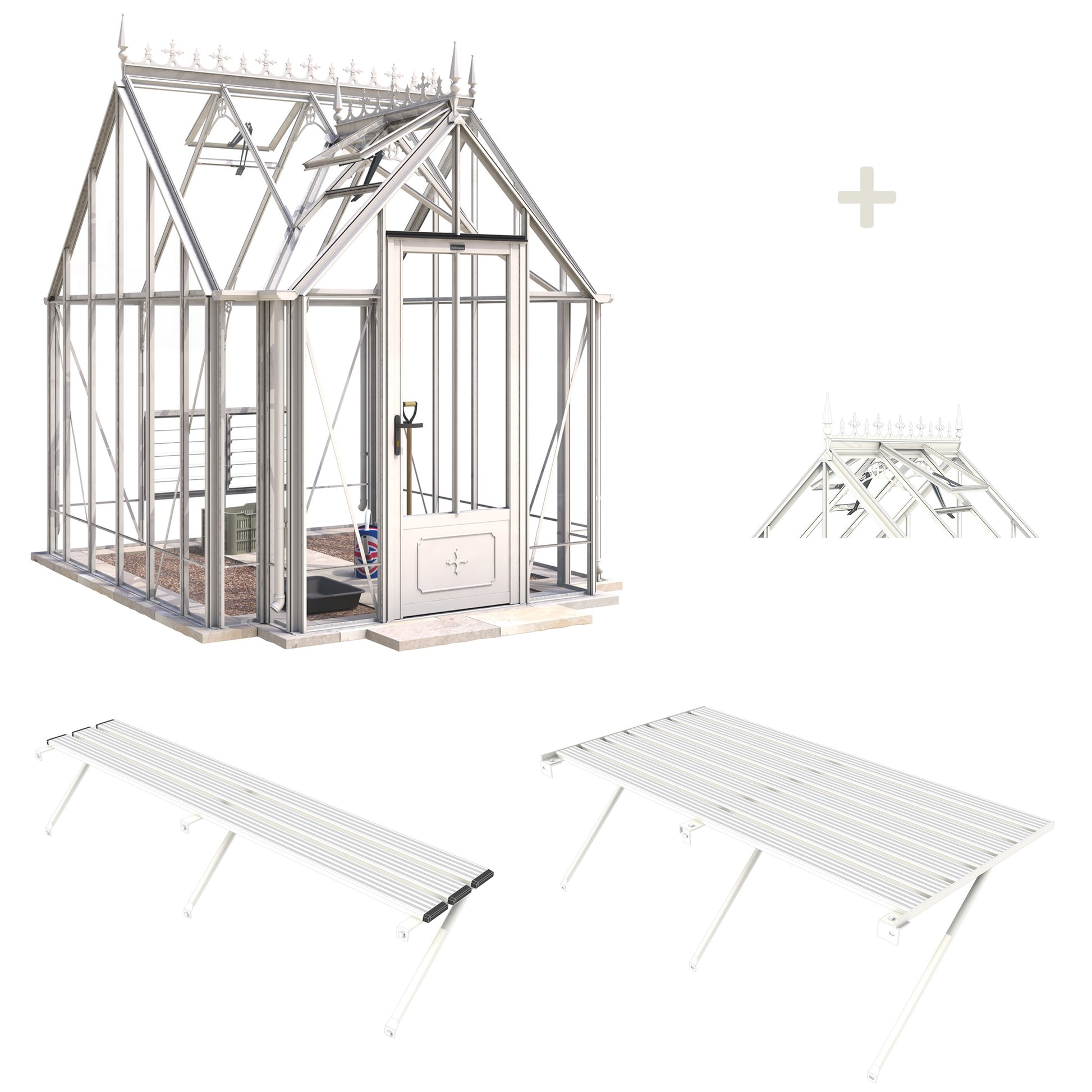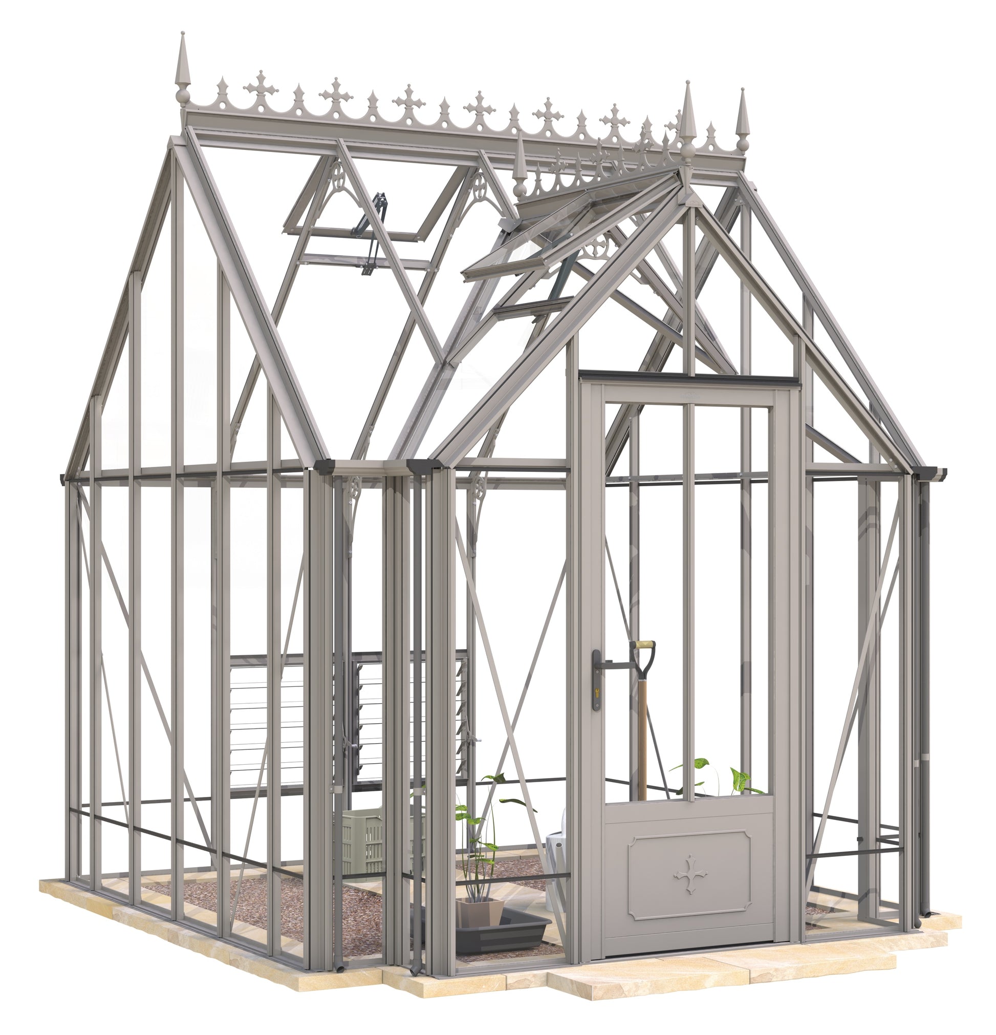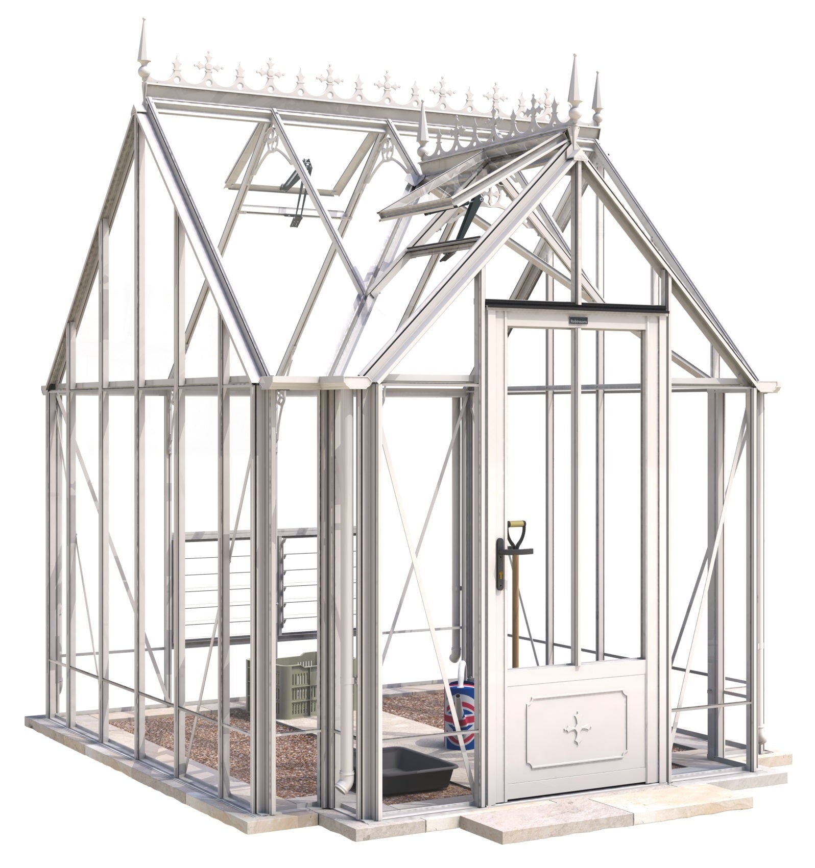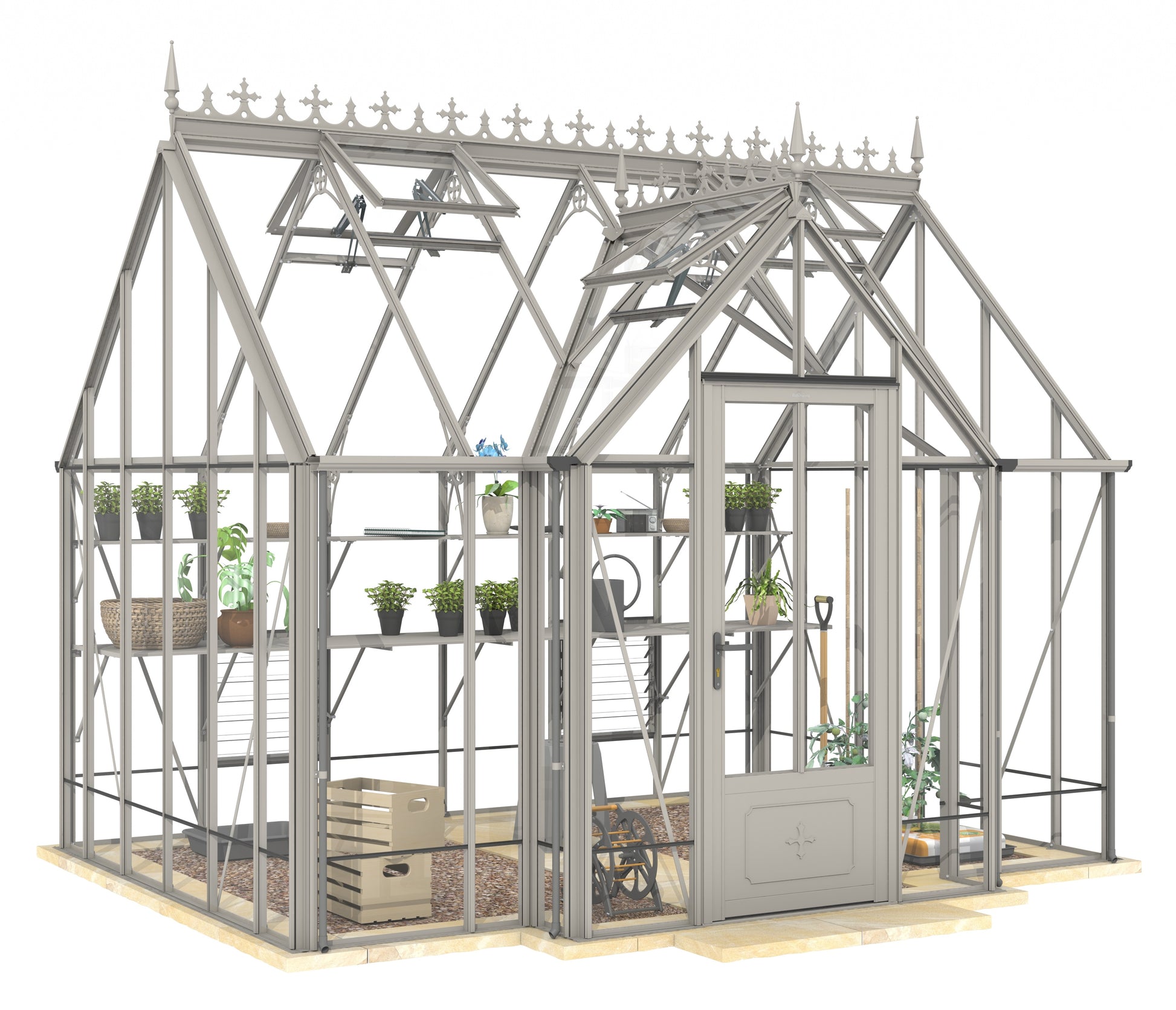 Ventilation is well-catered for in the Radley greenhouse, with numerous automatic roof vents and louvre vents provided. The quantity of vents varies based on the greenhouse's length, ensuring ample airflow and temperature control. To truly capture the stylish Victorian look, consider adding the optional colour-coordinated cast aluminium ridge cresting and finials, adding the perfect finishing touch.