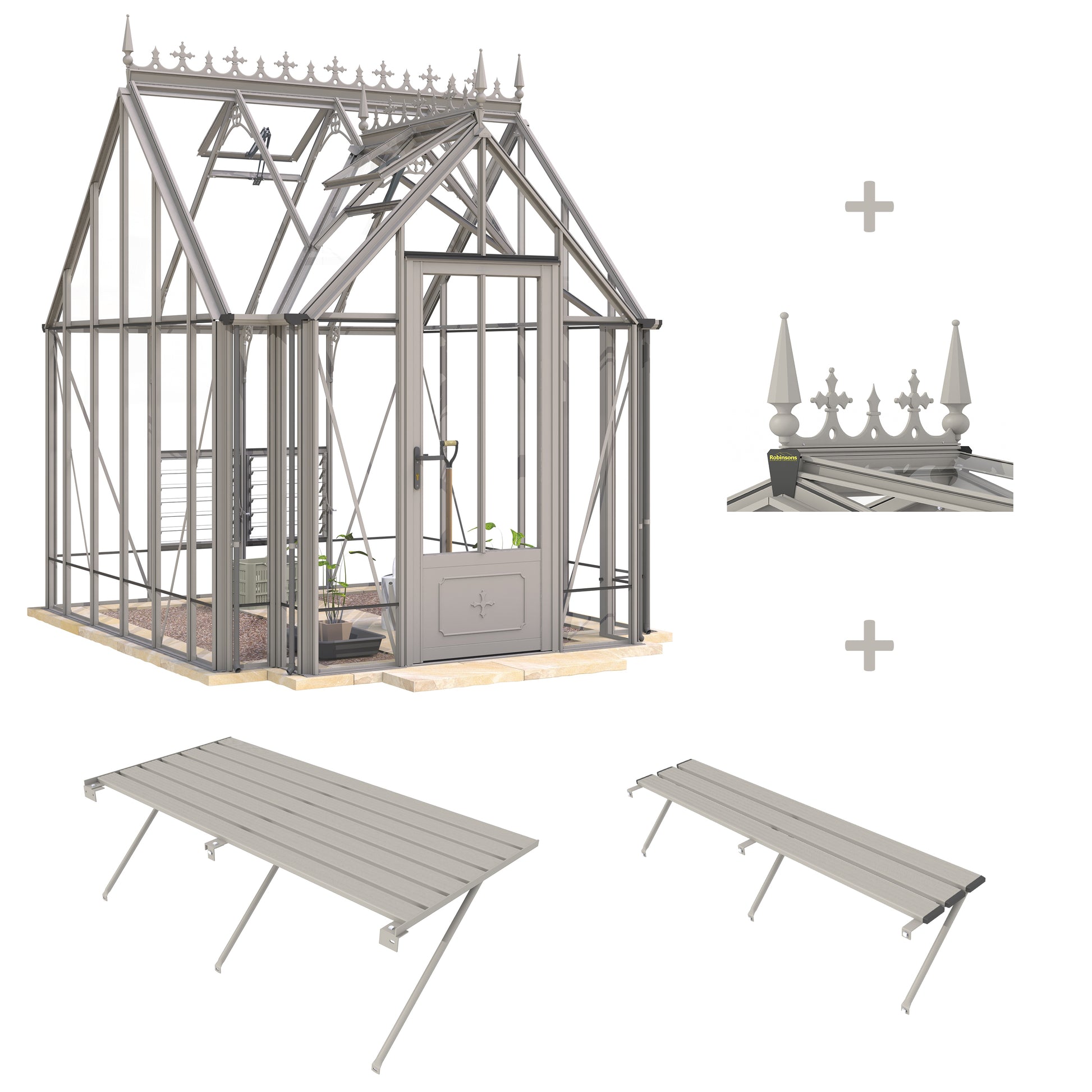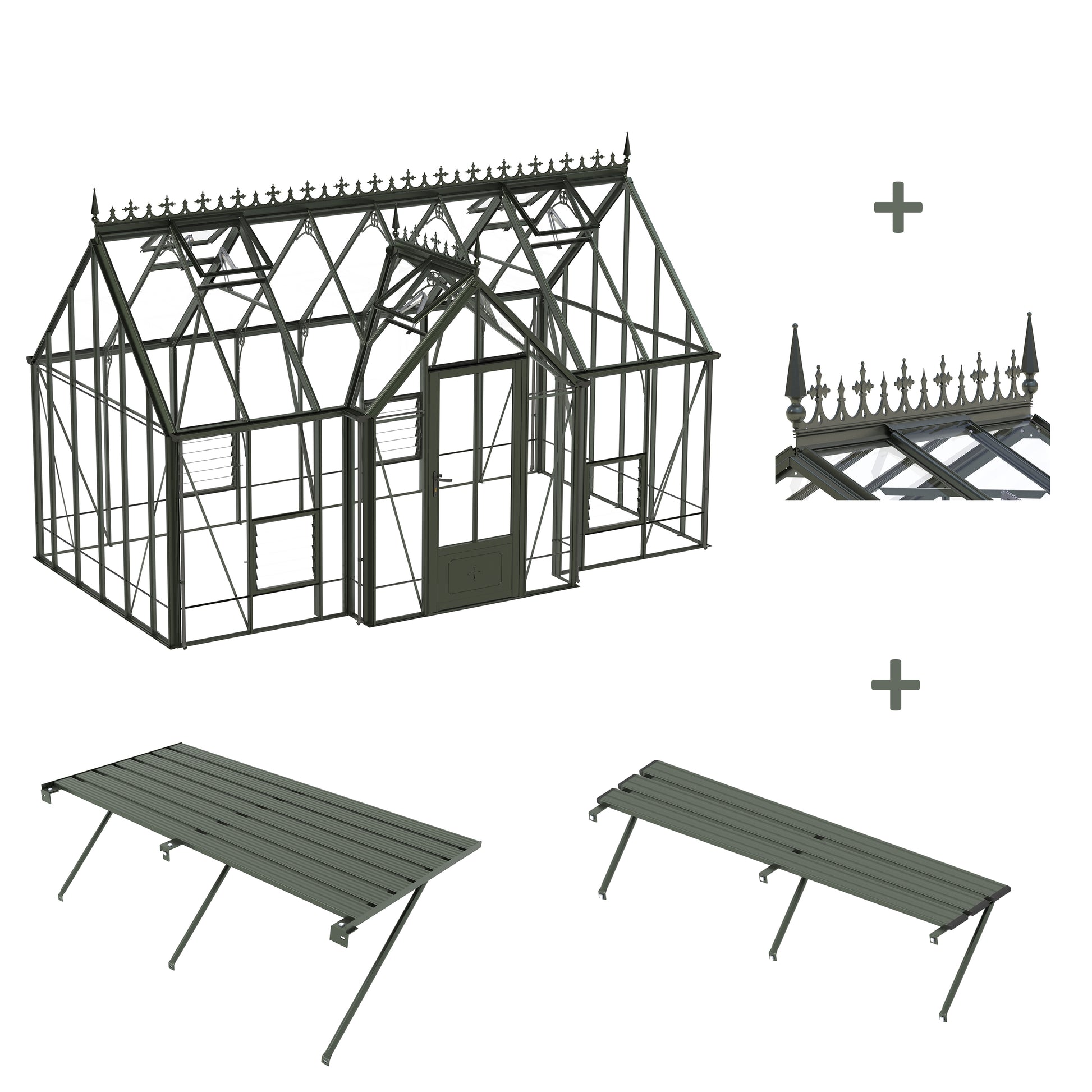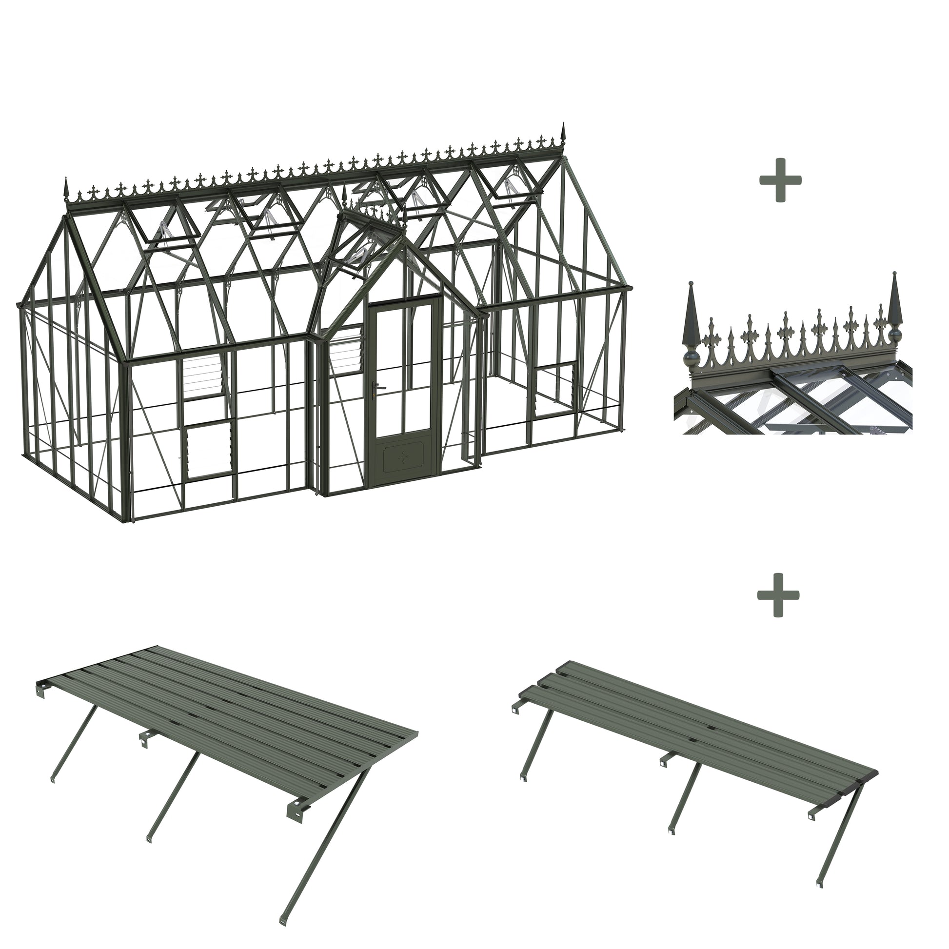 Add a touch of timeless elegance to your greenhouse with our optional ornate ridge cresting and finials. These exquisite architectural details are designed to enhance the aesthetics of your structure, bringing a classic Victorian charm to your garden.