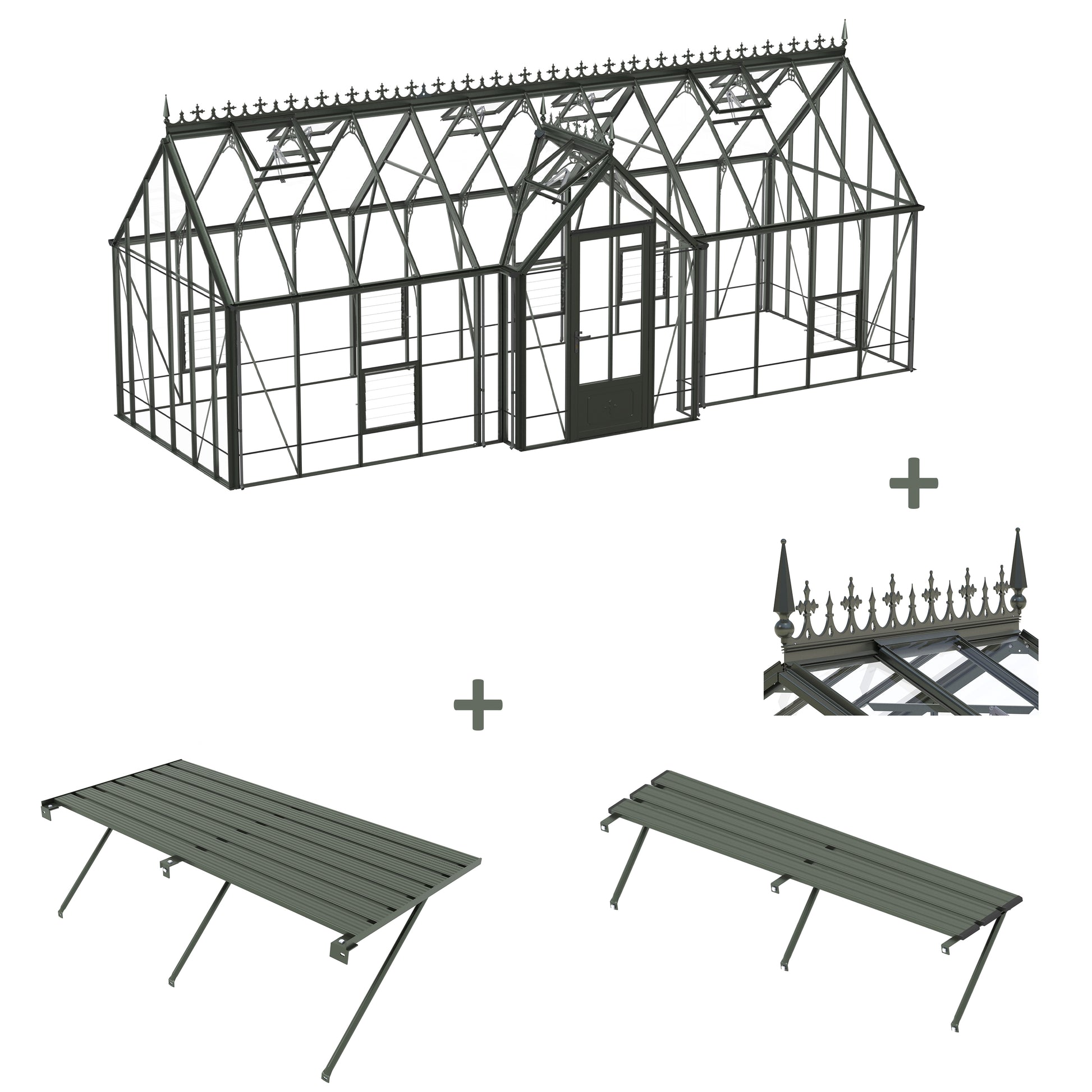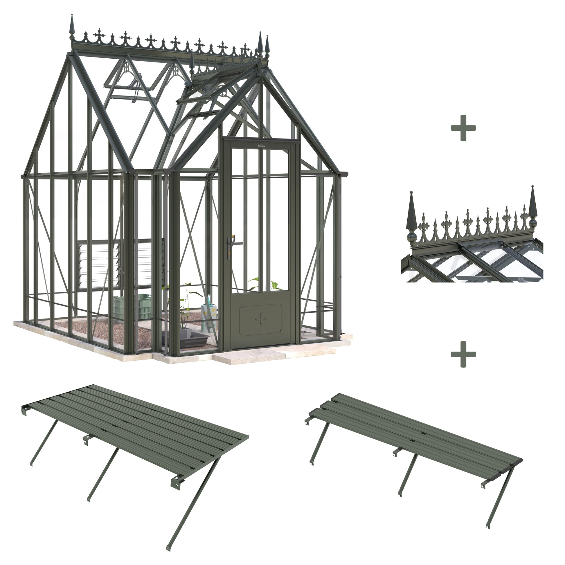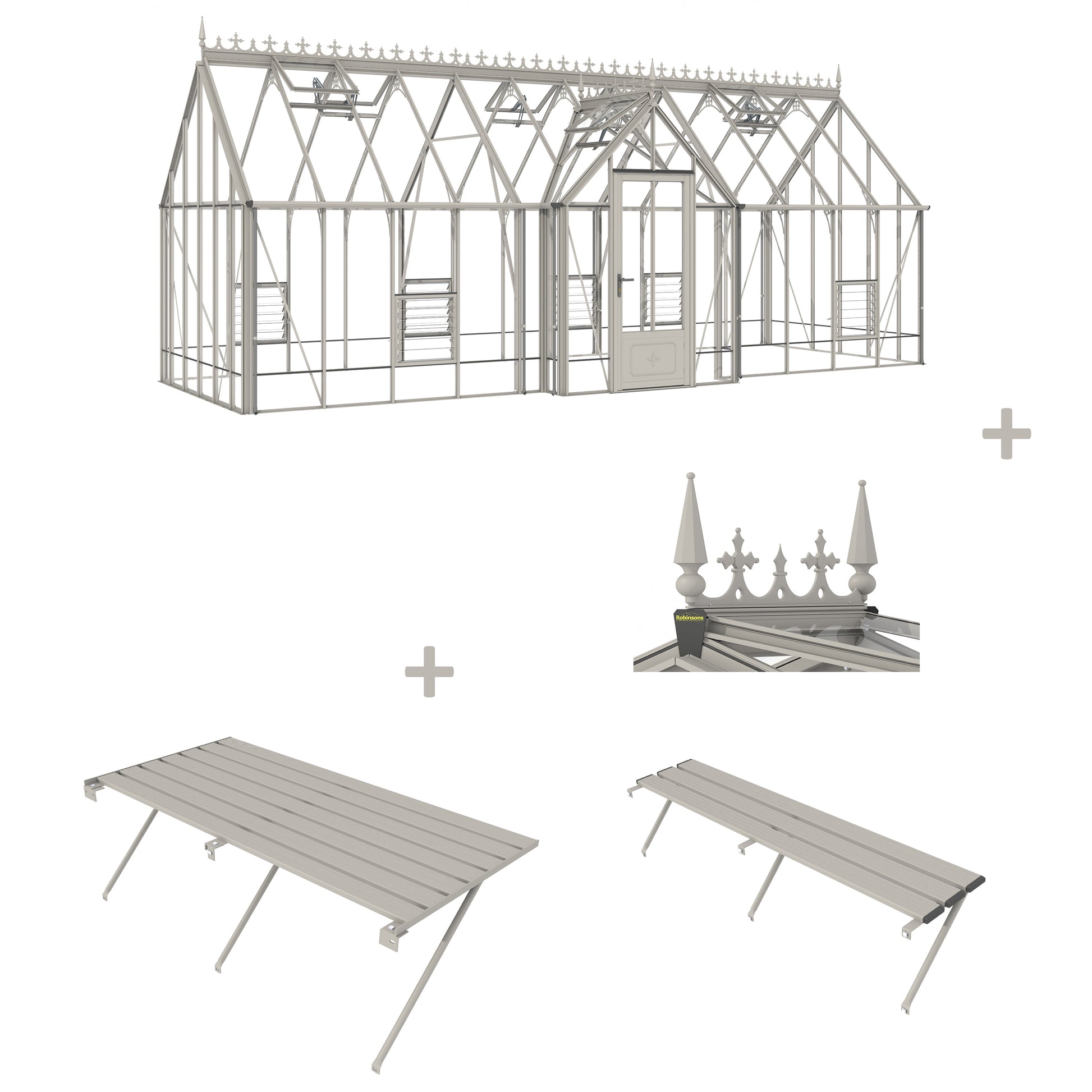 Add a touch of timeless elegance to your greenhouse with our optional ornate ridge cresting and finials. These exquisite architectural details are designed to enhance the aesthetics of your structure, bringing a classic Victorian charm to your garden.