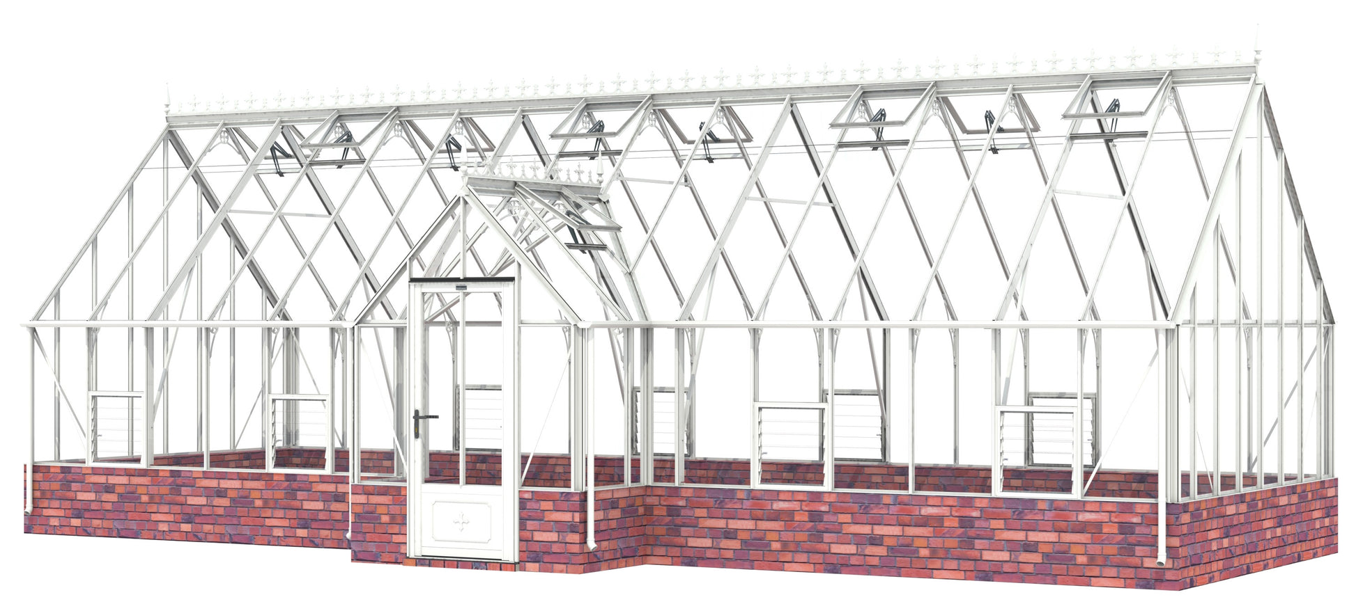 Discover the epitome of elegance and functionality with our Robinsons Ramsbury Greenhouses from the Victorian range. Built to marry traditional Victorian style with modern performance, this greenhouse isn't just a garden structure; it's a statement piece. The eye-catching design is elevated by the inclusion of cast aluminium spandrels at both eaves and ridge, reinforcing the structure without sacrificing style. Your plants will thank you for the extra height and room to grow, courtesy of the 45-degree pitch roof that not only provides a Victorian ambiance but also enhances light transmission and air circulation.