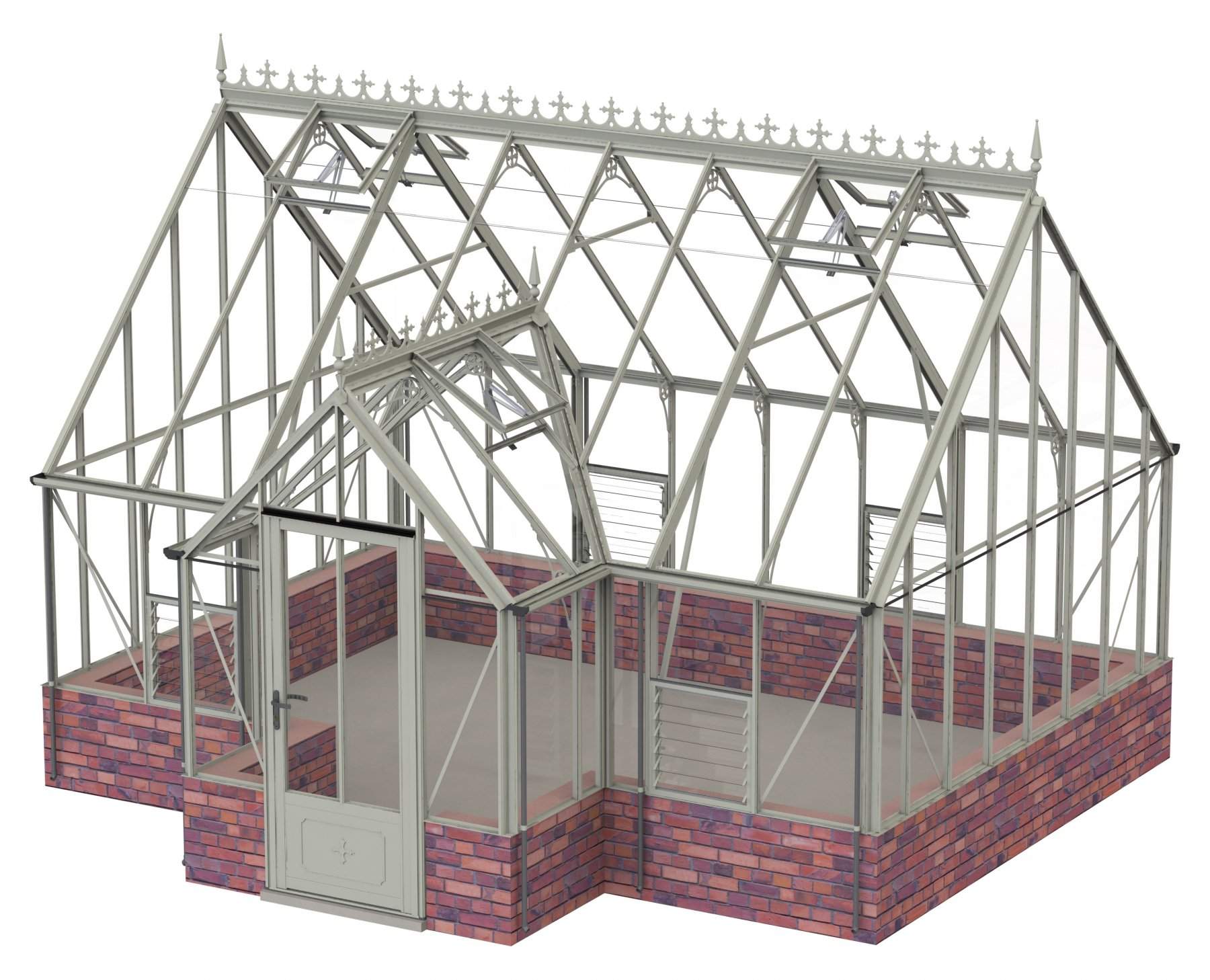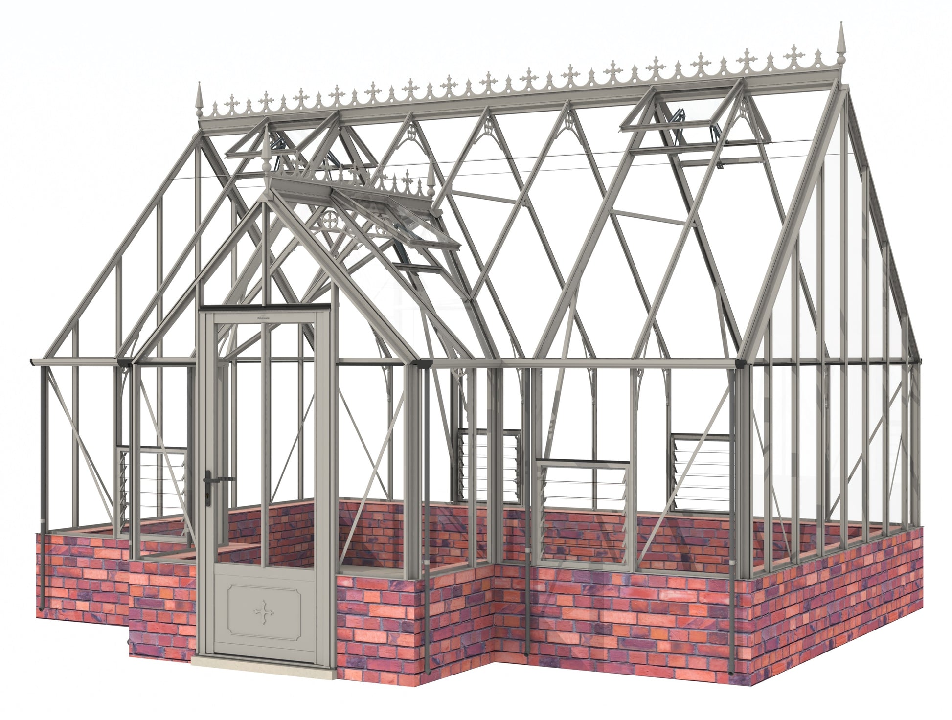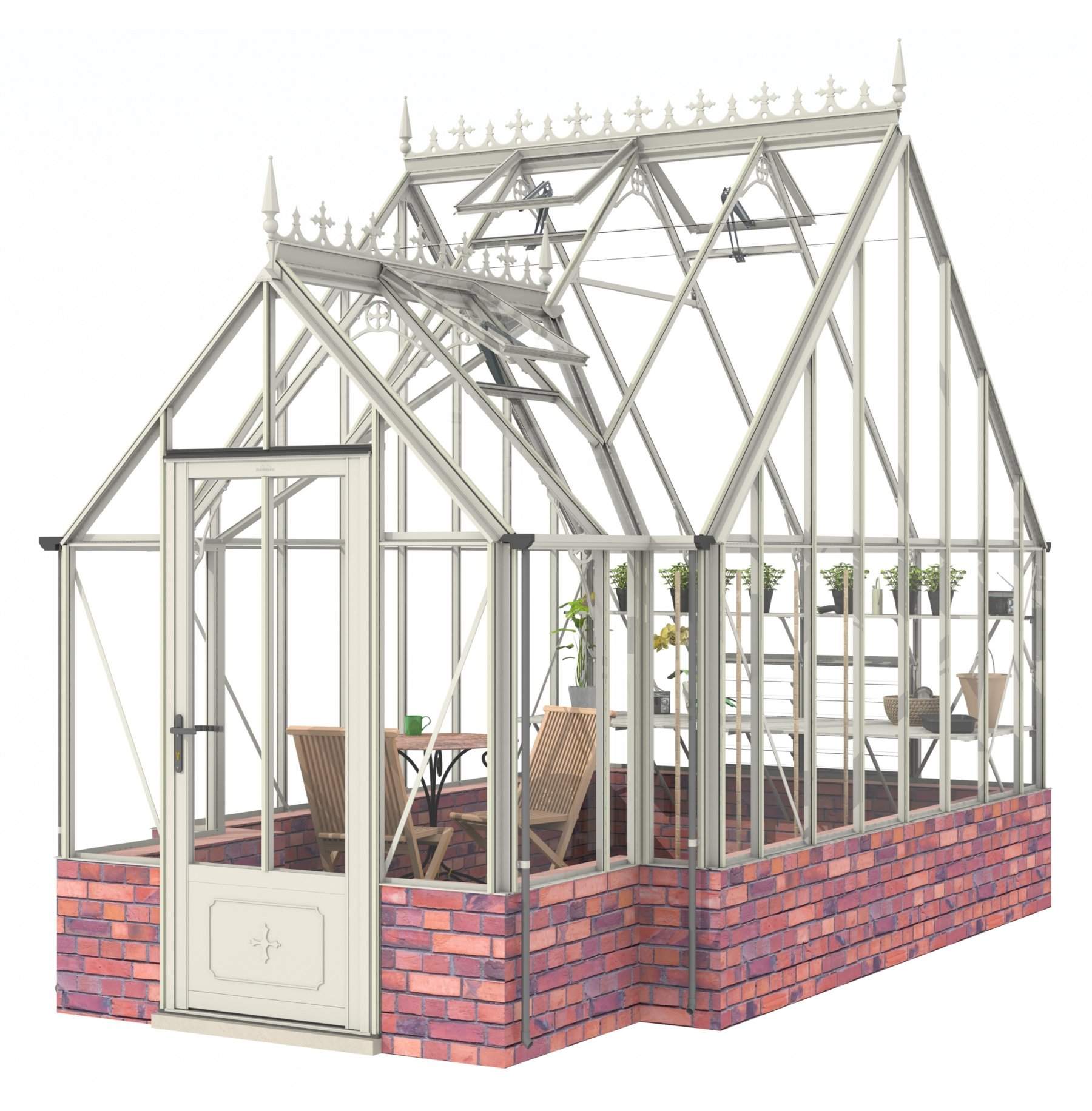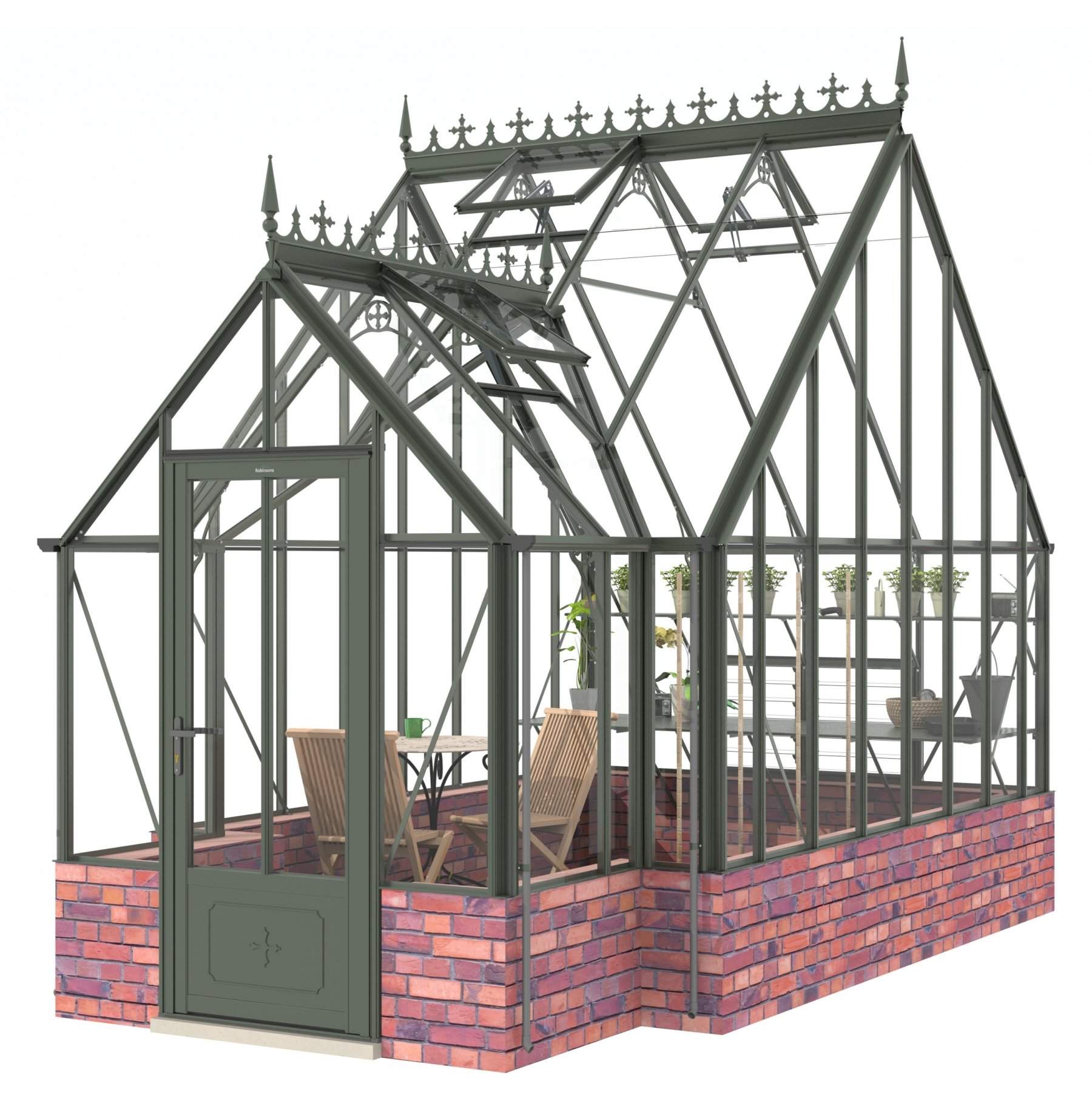 The Victorian range comes in five new contemporary colors, effortlessly blending modernity with its historic design. Convenience is at the forefront, with an extra-wide hinged door that offers a wide access point, secure lock, and low threshold, making it perfect for gardeners of all ages. Choose from either glass-to-ground or dwarf wall models to suit your specific gardening needs.