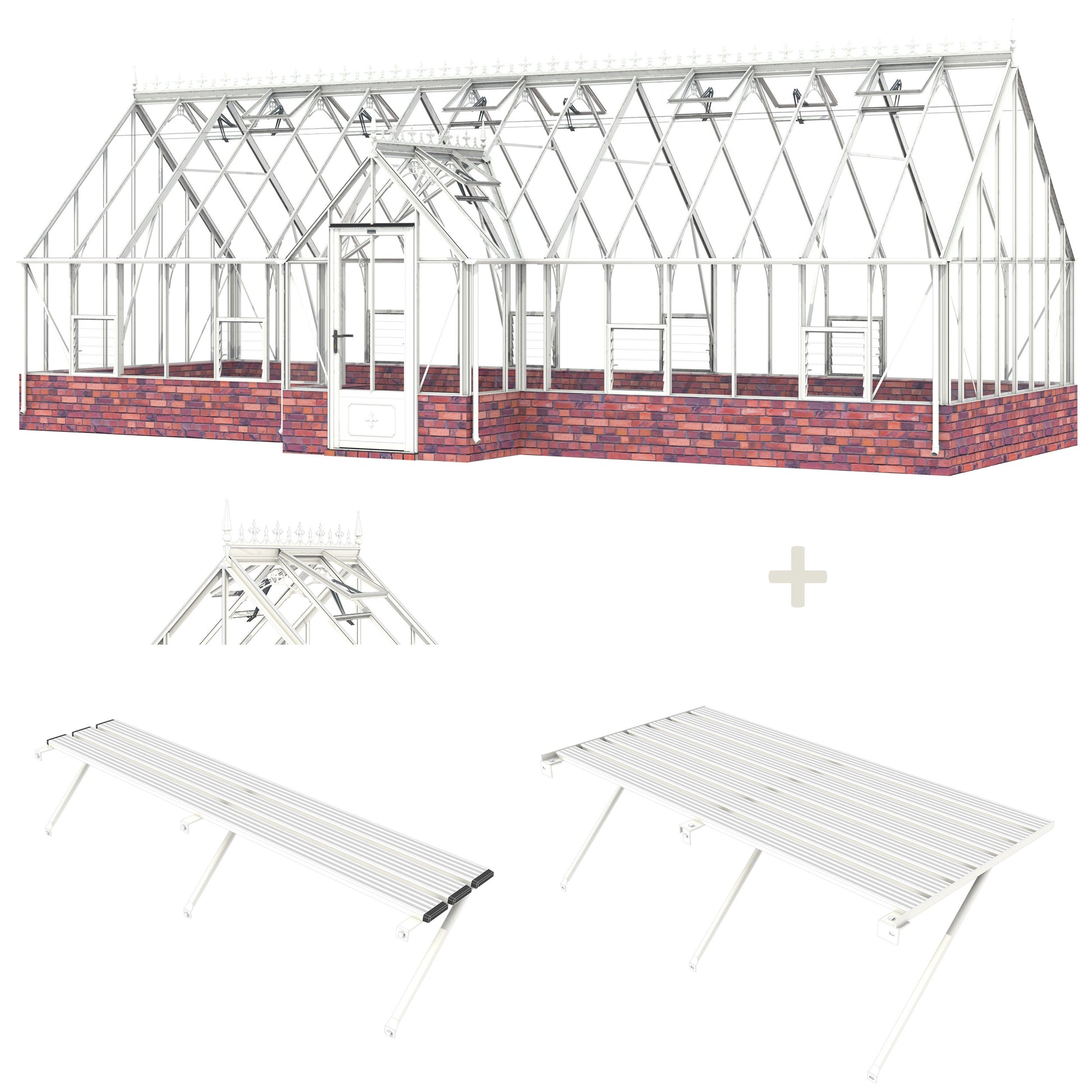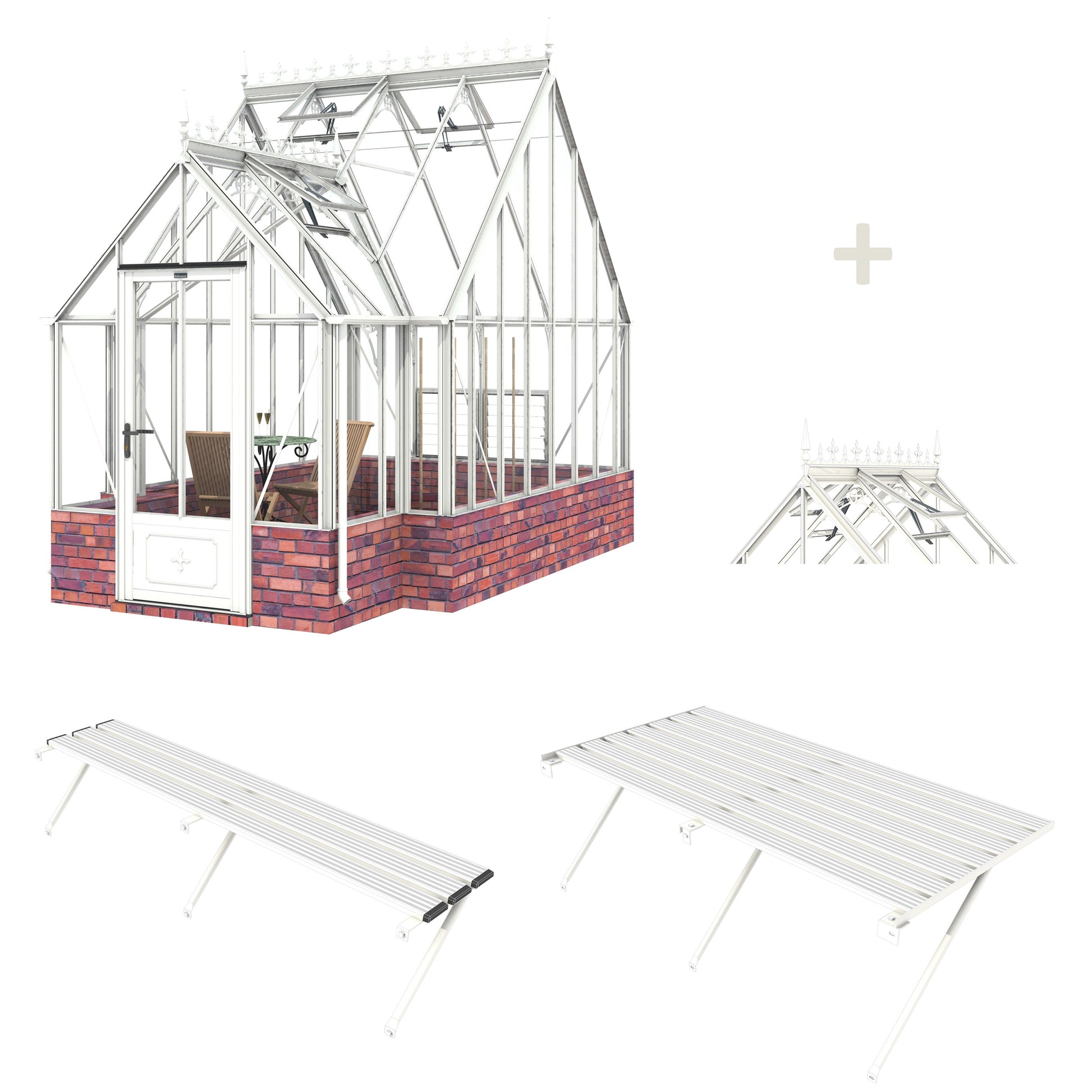 Additional features such as extra-wide Victorian-styled guttering, cresting & finials options, and 7 x roof vents with automatic opening make this greenhouse a cut above the rest. To top it all off, enjoy peace of mind with a free 10-year guarantee. The greenhouse arrives flat-packed for self-assembly, but installation is available for a fee should you require it.
