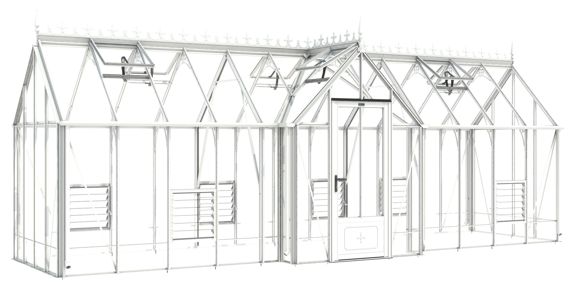 Add a touch of timeless elegance to your greenhouse with our optional ornate ridge cresting and finials. These exquisite architectural details are designed to enhance the aesthetics of your structure, bringing a classic Victorian charm to your garden.