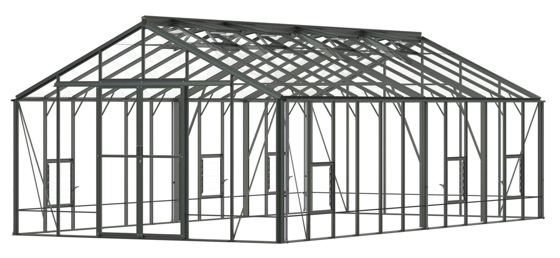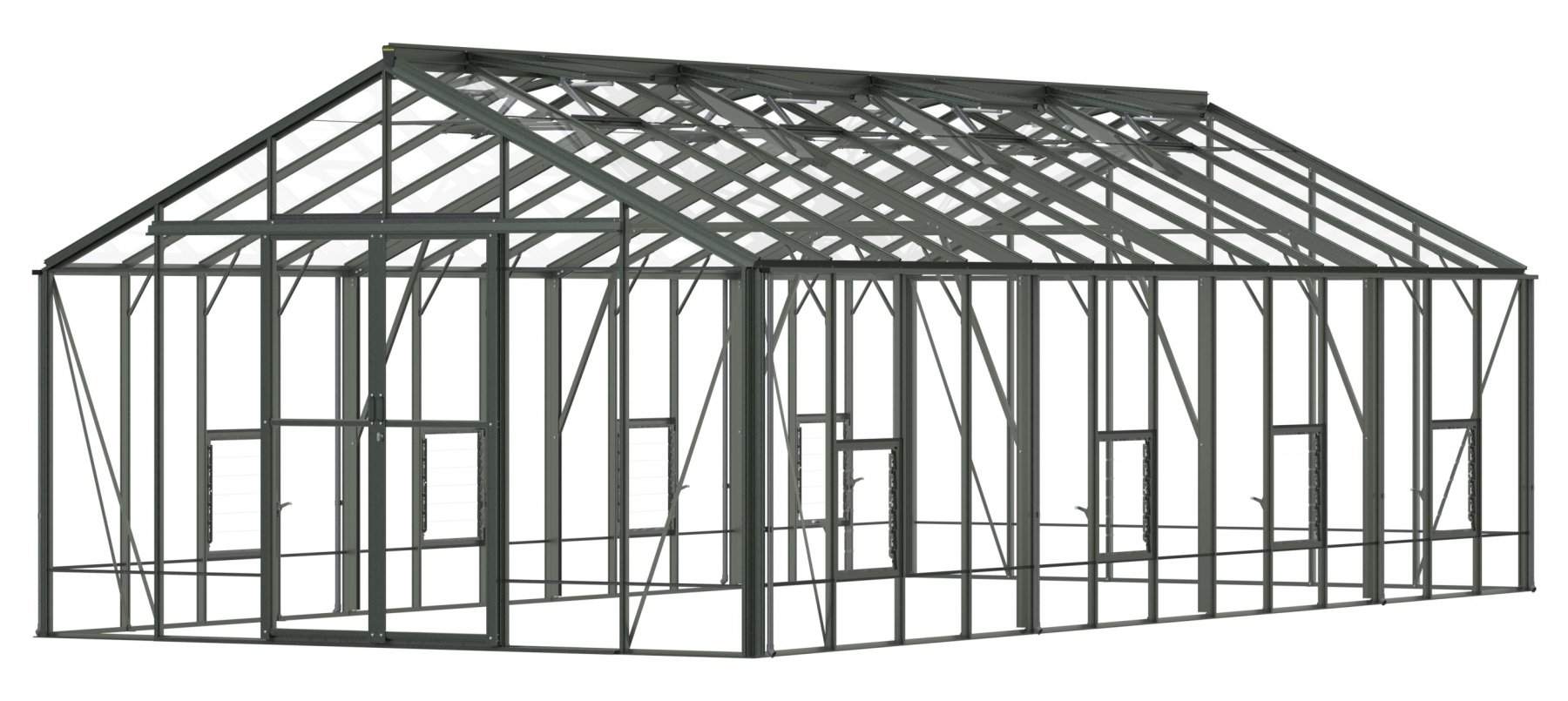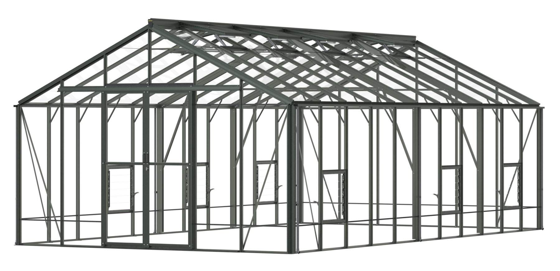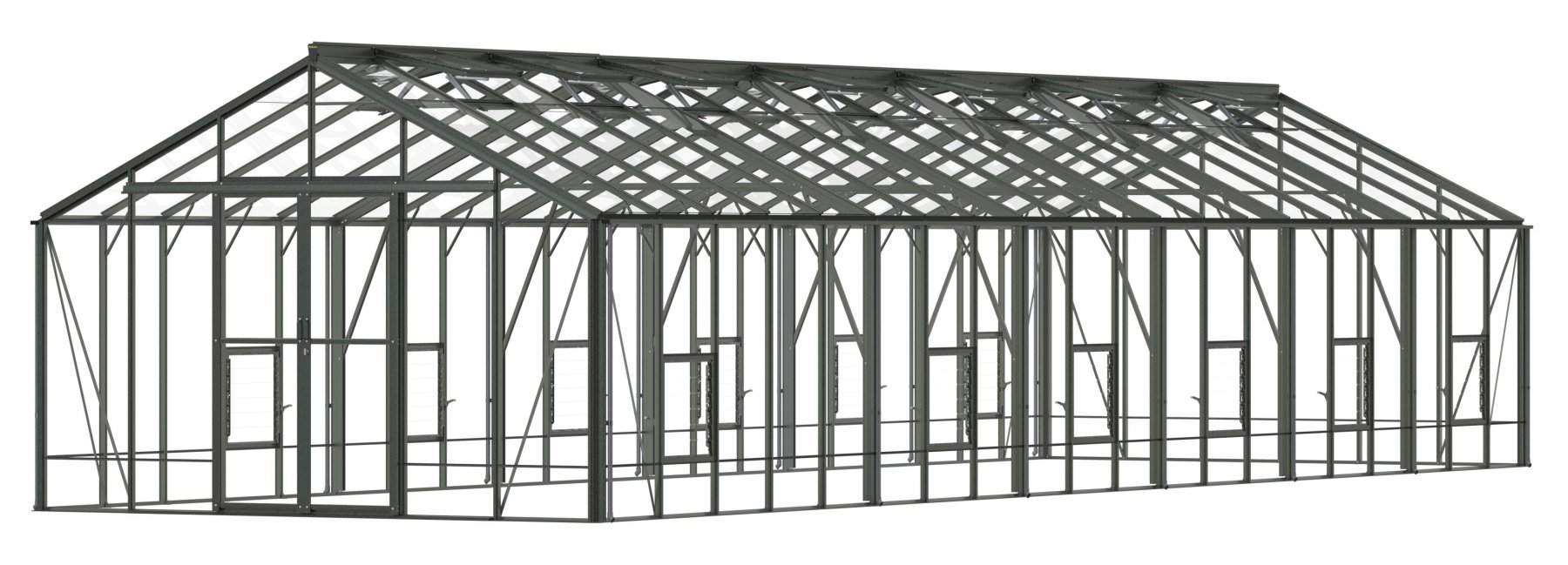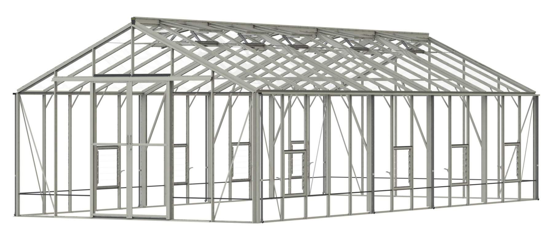 De utstikkende spandrellene bidrar ikke bare til den generelle styrken i rammen, men legger også til den klassiske viktorianske stilen til drivhuset. Den pulverlakkerte overflaten forbedrer det visuelle utseendet samtidig som den beskytter mot korrosjon og slitasje, og sikrer et upåklagelig utseende i årene som kommer.