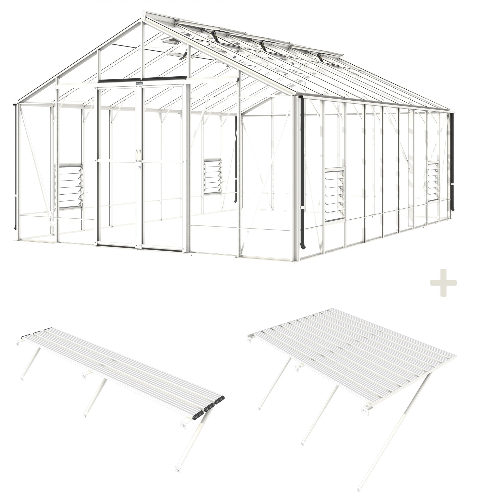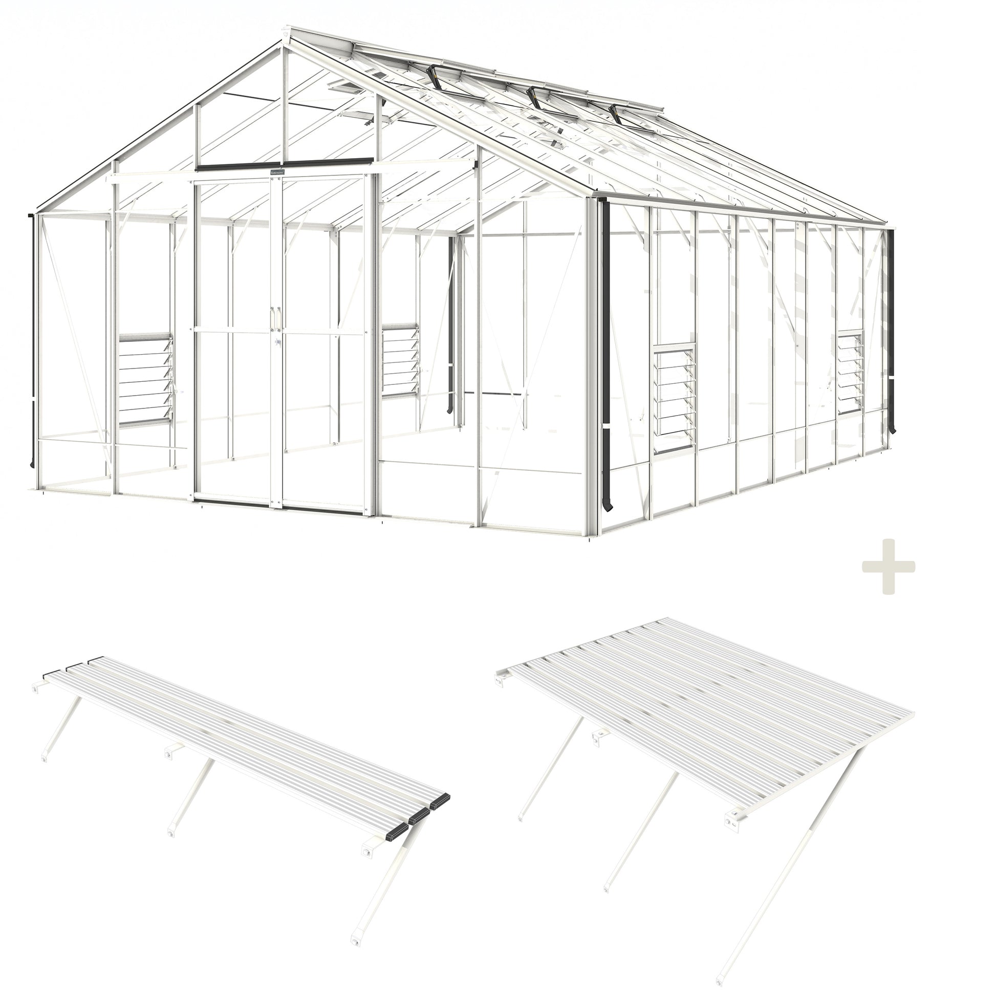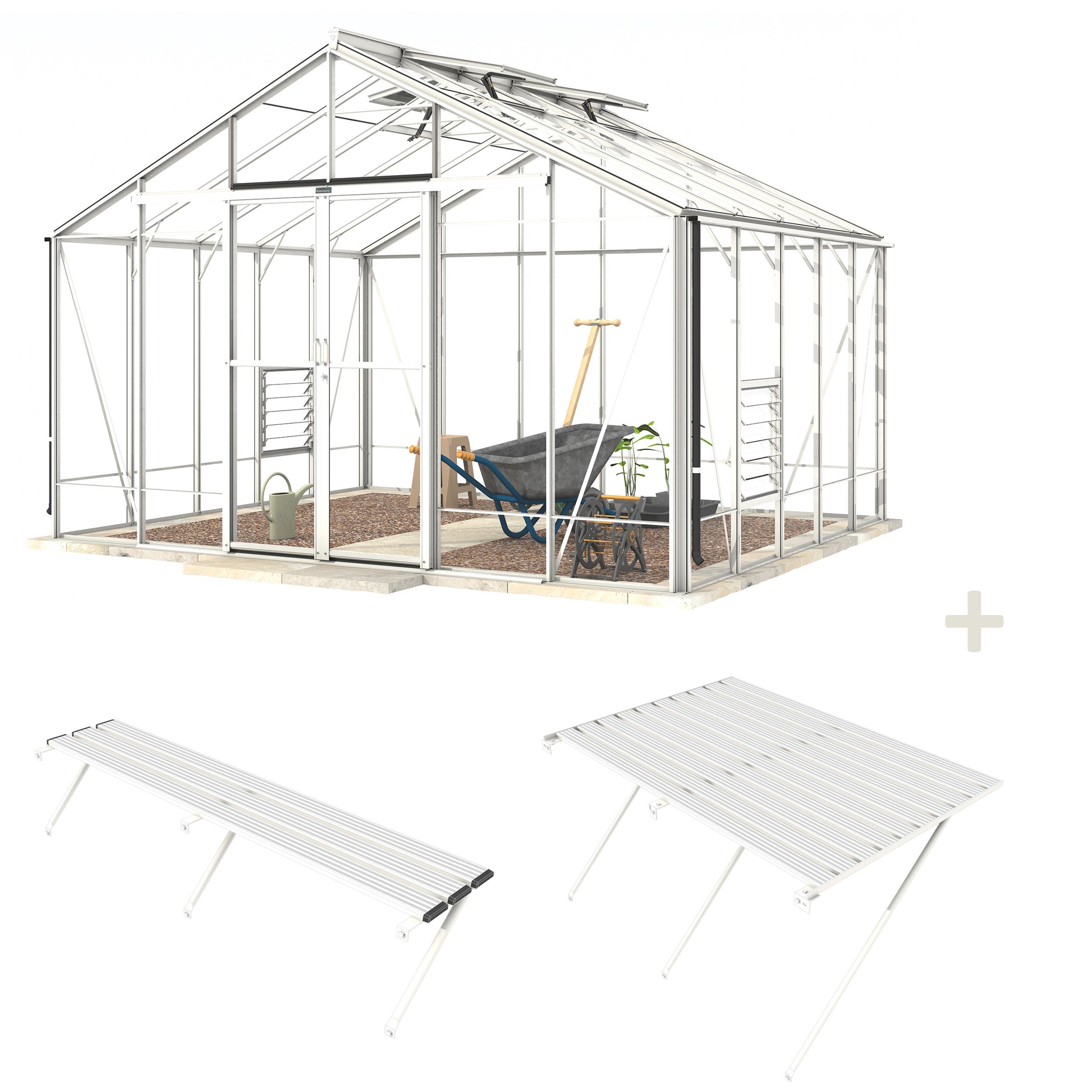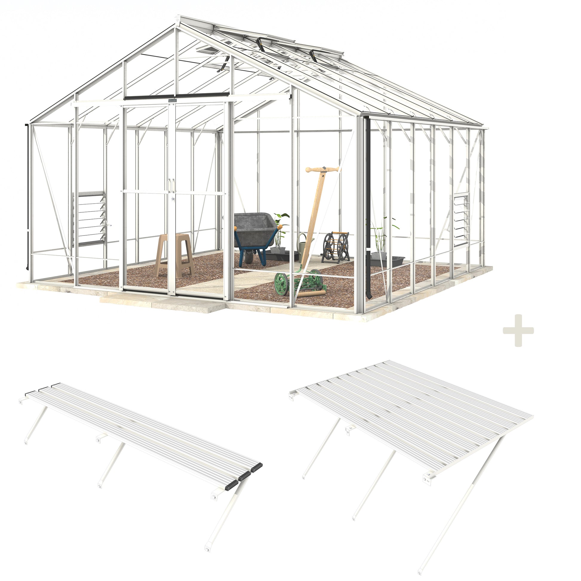 Our optional staging and shelving offer full height adjustability, providing a versatile solution for organising your greenhouse. These sturdy additions are securely bolted to the side of the greenhouses using tubular cantilever supports, ensuring exceptional strength and stability.