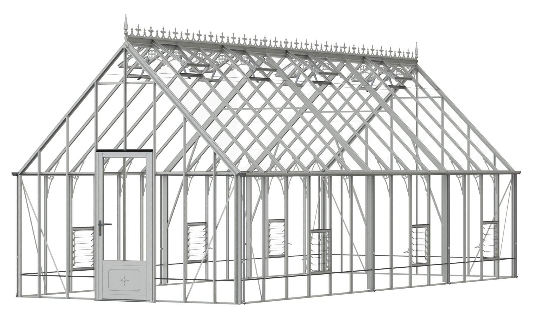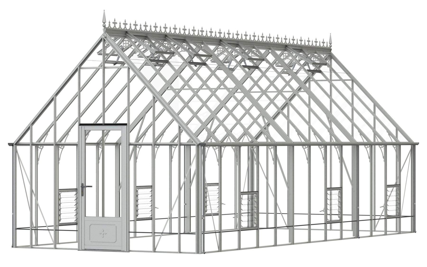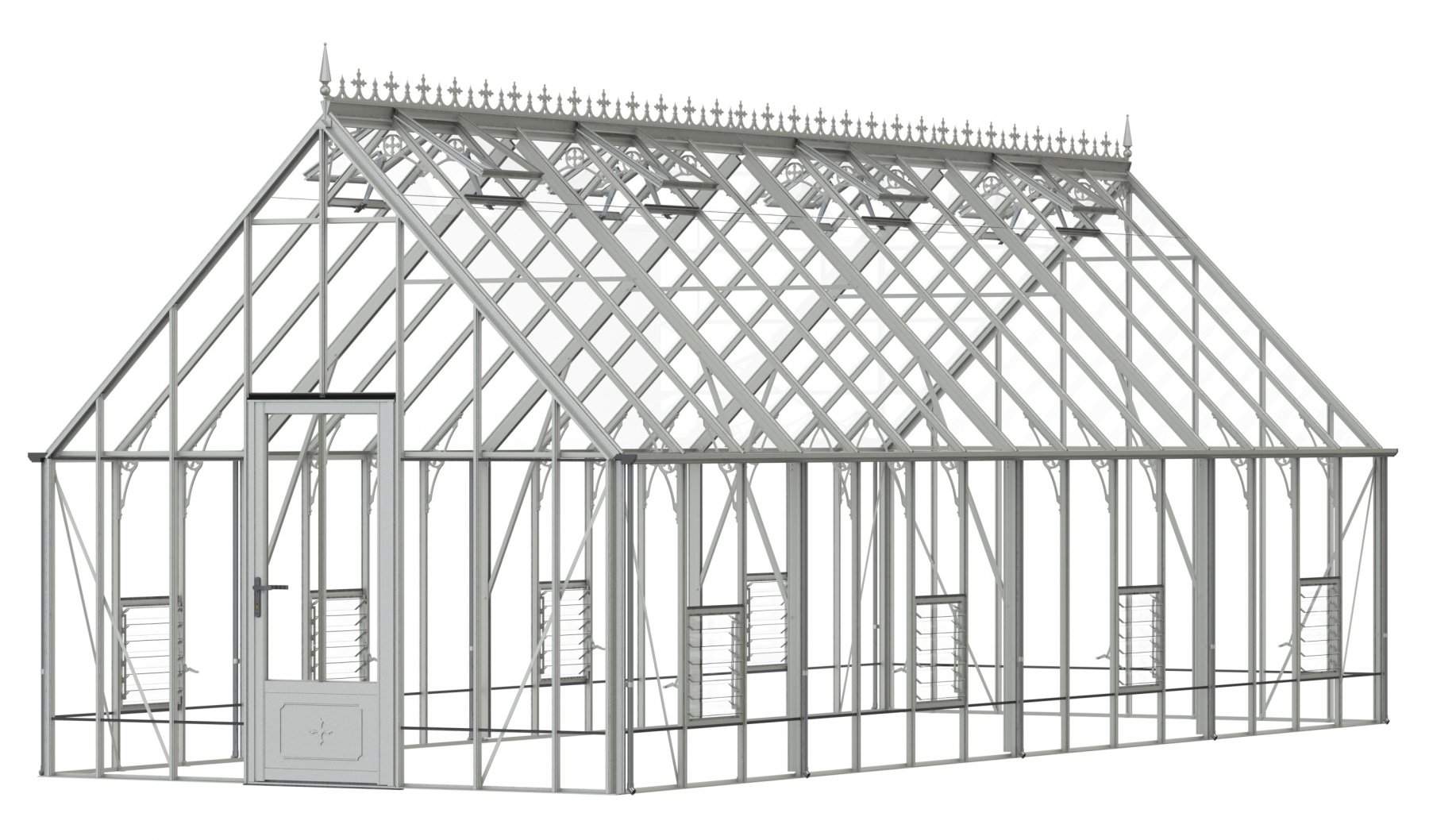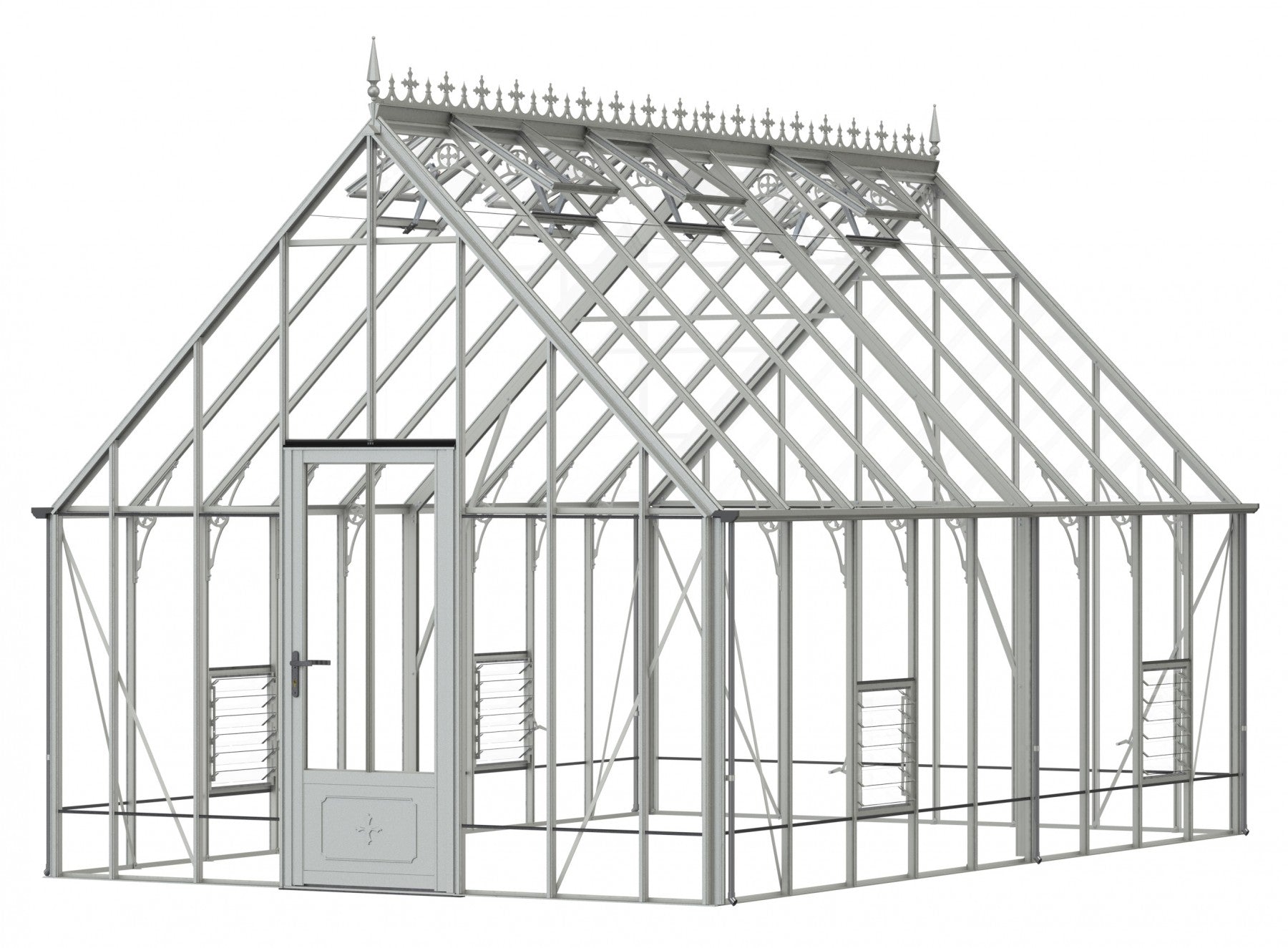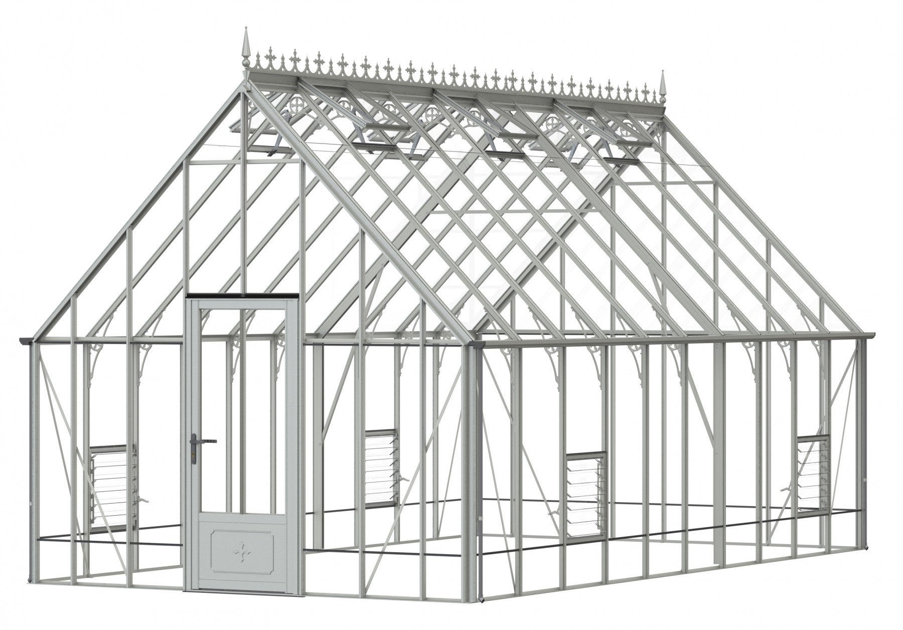 Add a touch of timeless elegance to your greenhouse with our optional ornate ridge cresting and finials. These exquisite architectural details are designed to enhance the aesthetics of your structure, bringing a classic Victorian charm to your garden.