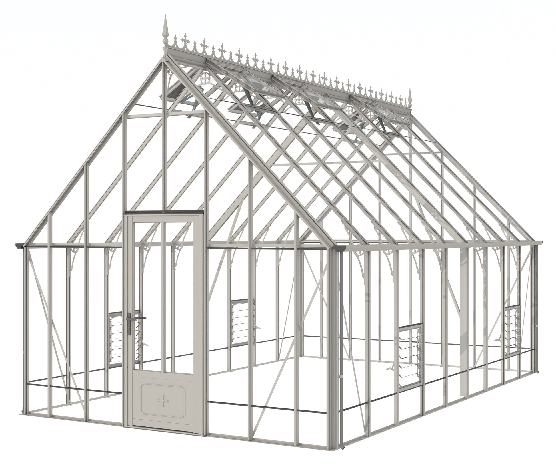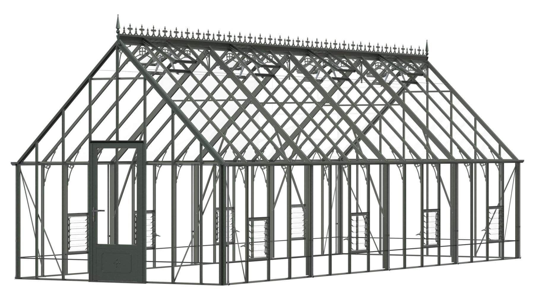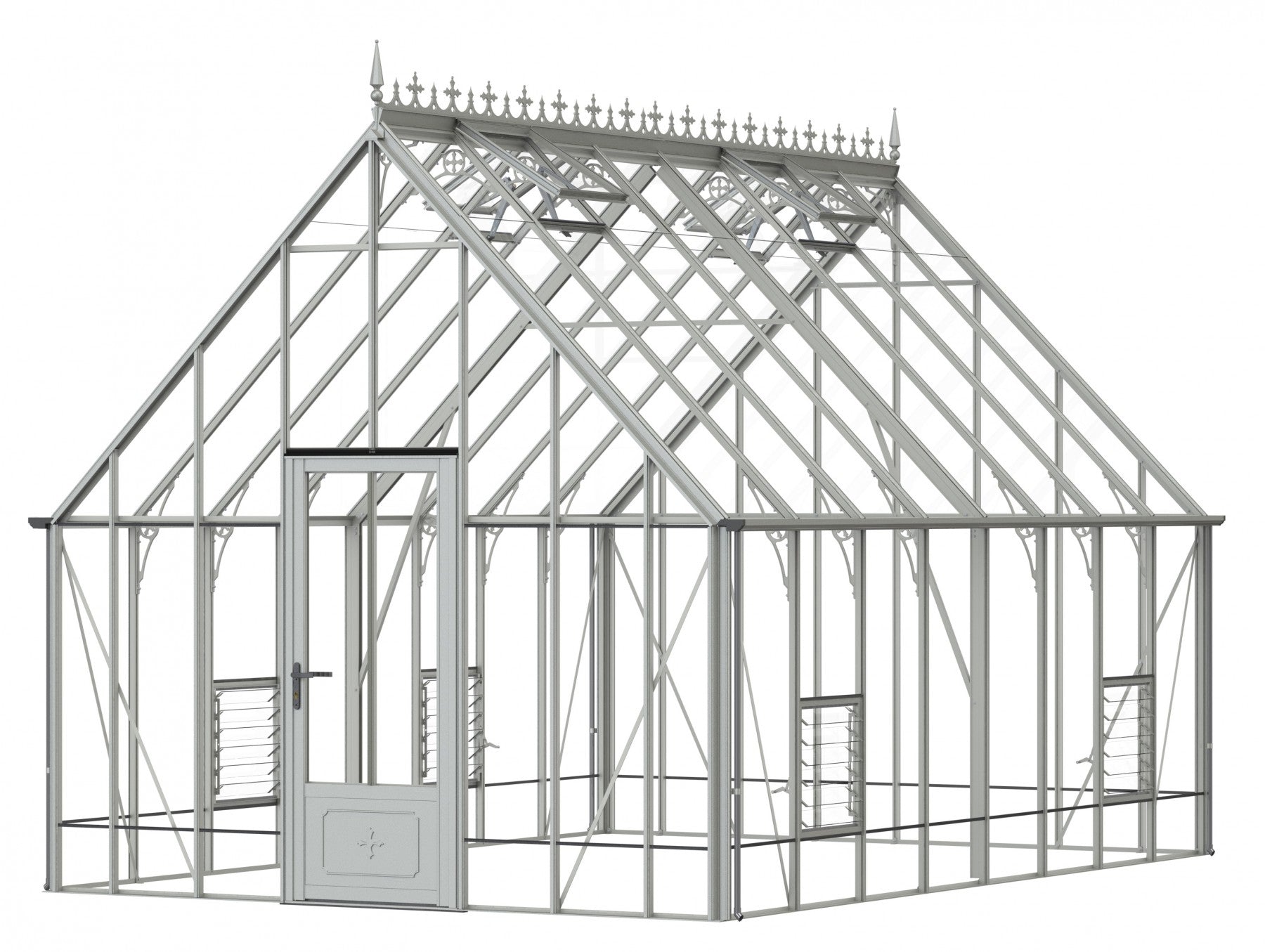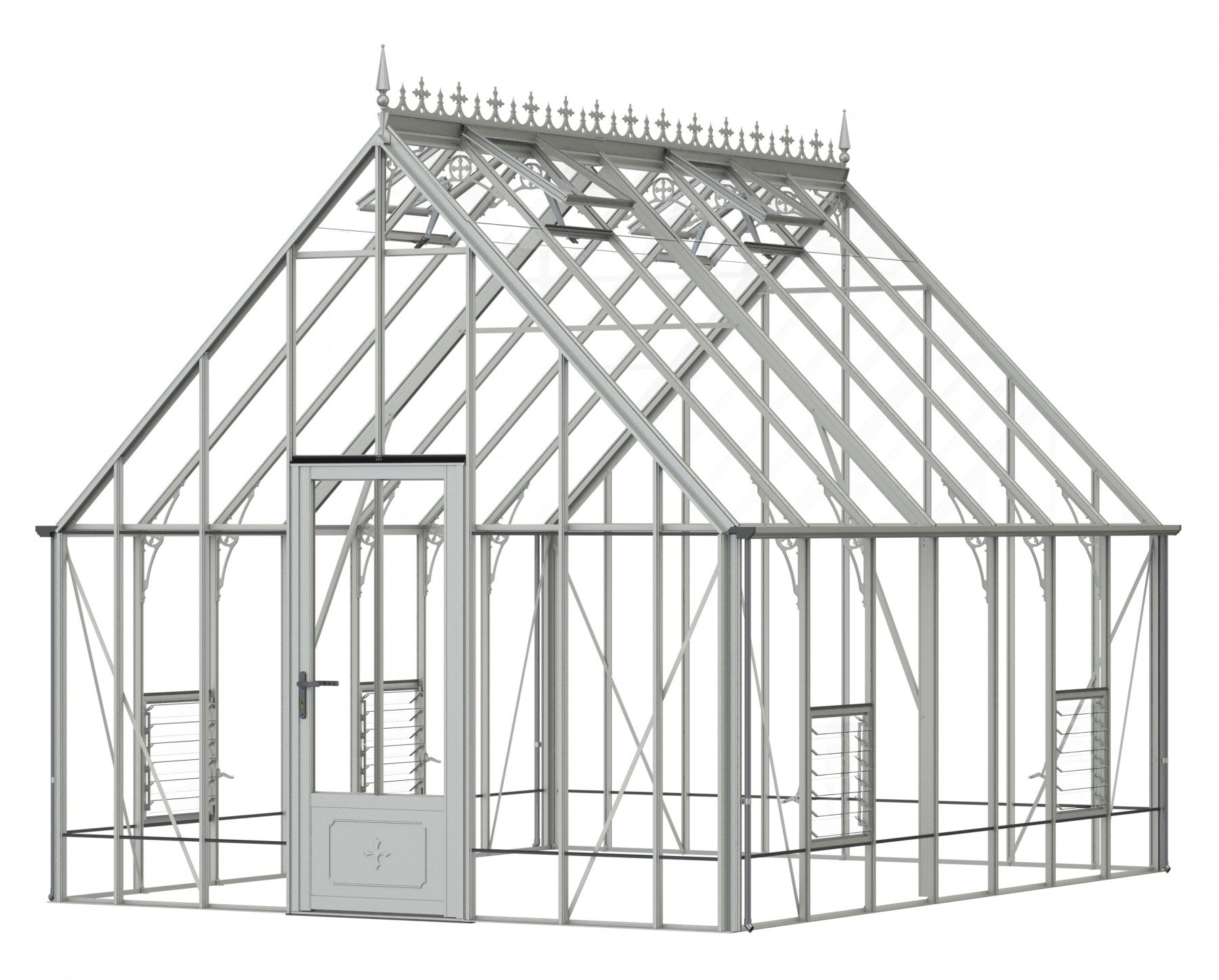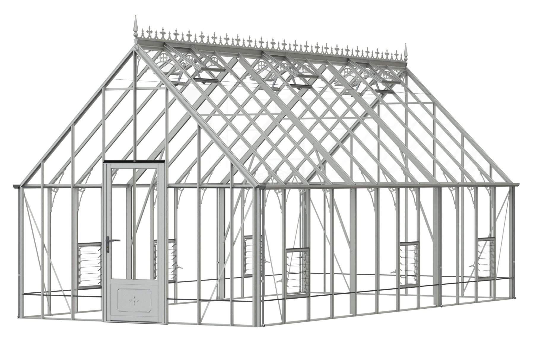 Add a touch of timeless elegance to your greenhouse with our optional ornate ridge cresting and finials. These exquisite architectural details are designed to enhance the aesthetics of your structure, bringing a classic Victorian charm to your garden.