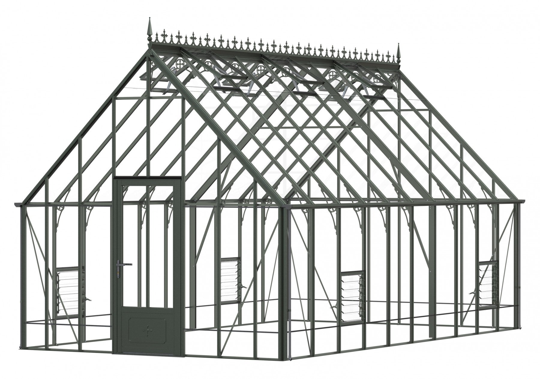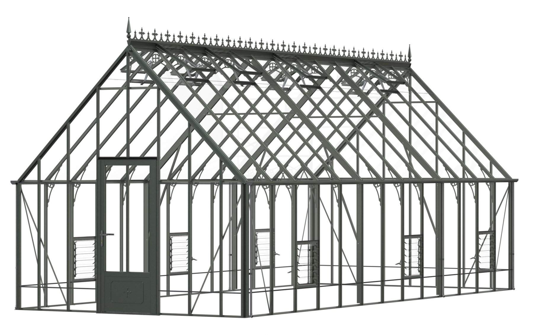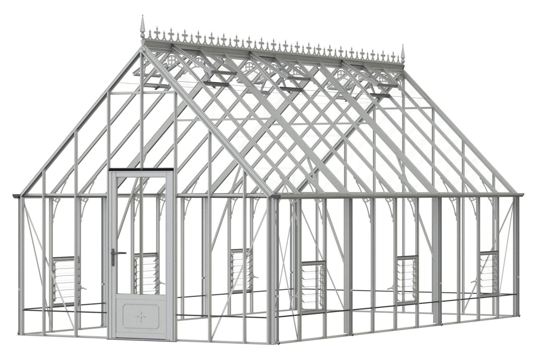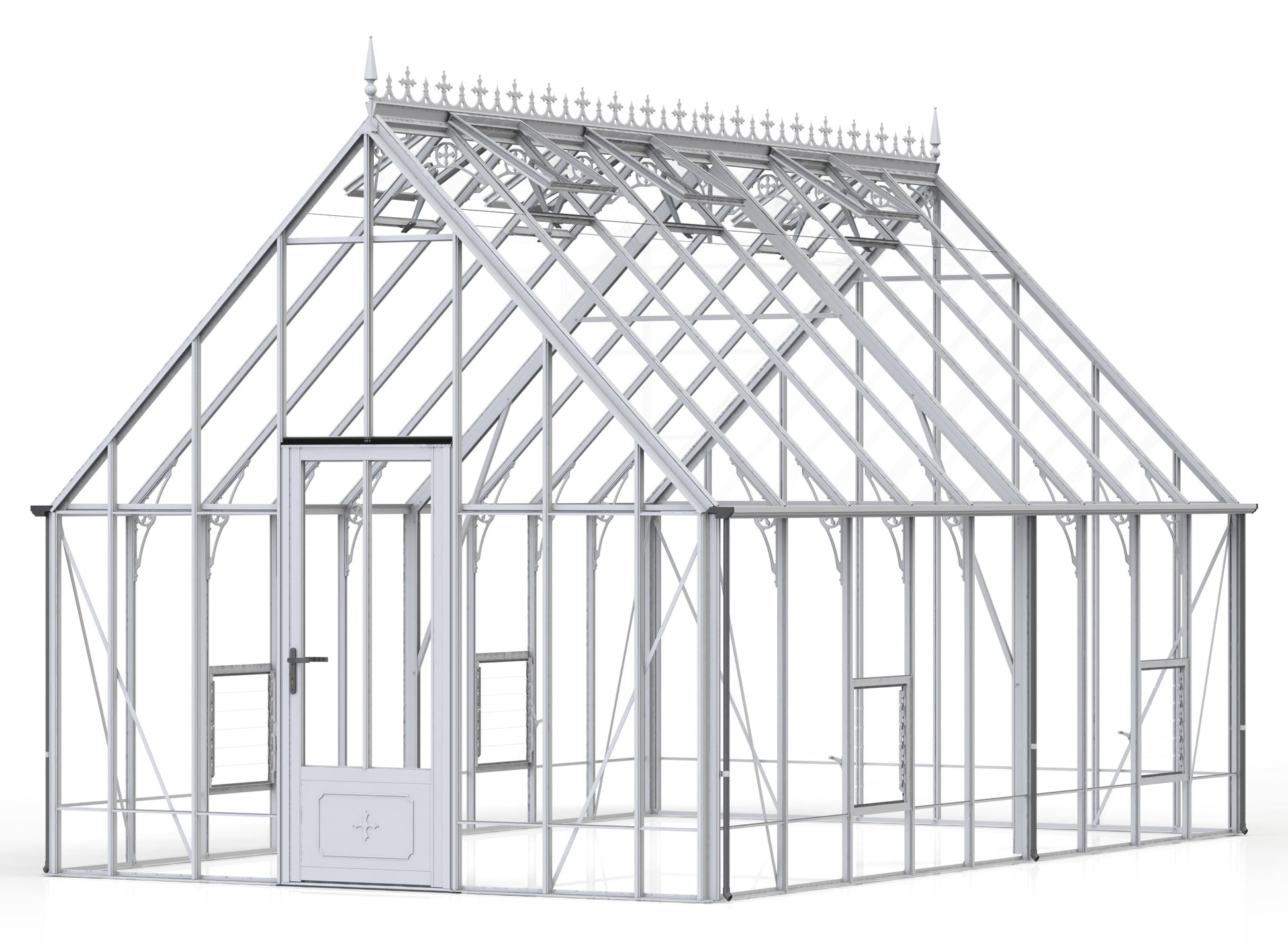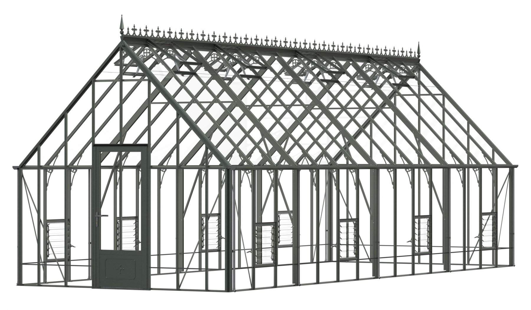 Add a touch of timeless elegance to your greenhouse with our optional ornate ridge cresting and finials. These exquisite architectural details are designed to enhance the aesthetics of your structure, bringing a classic Victorian charm to your garden.
