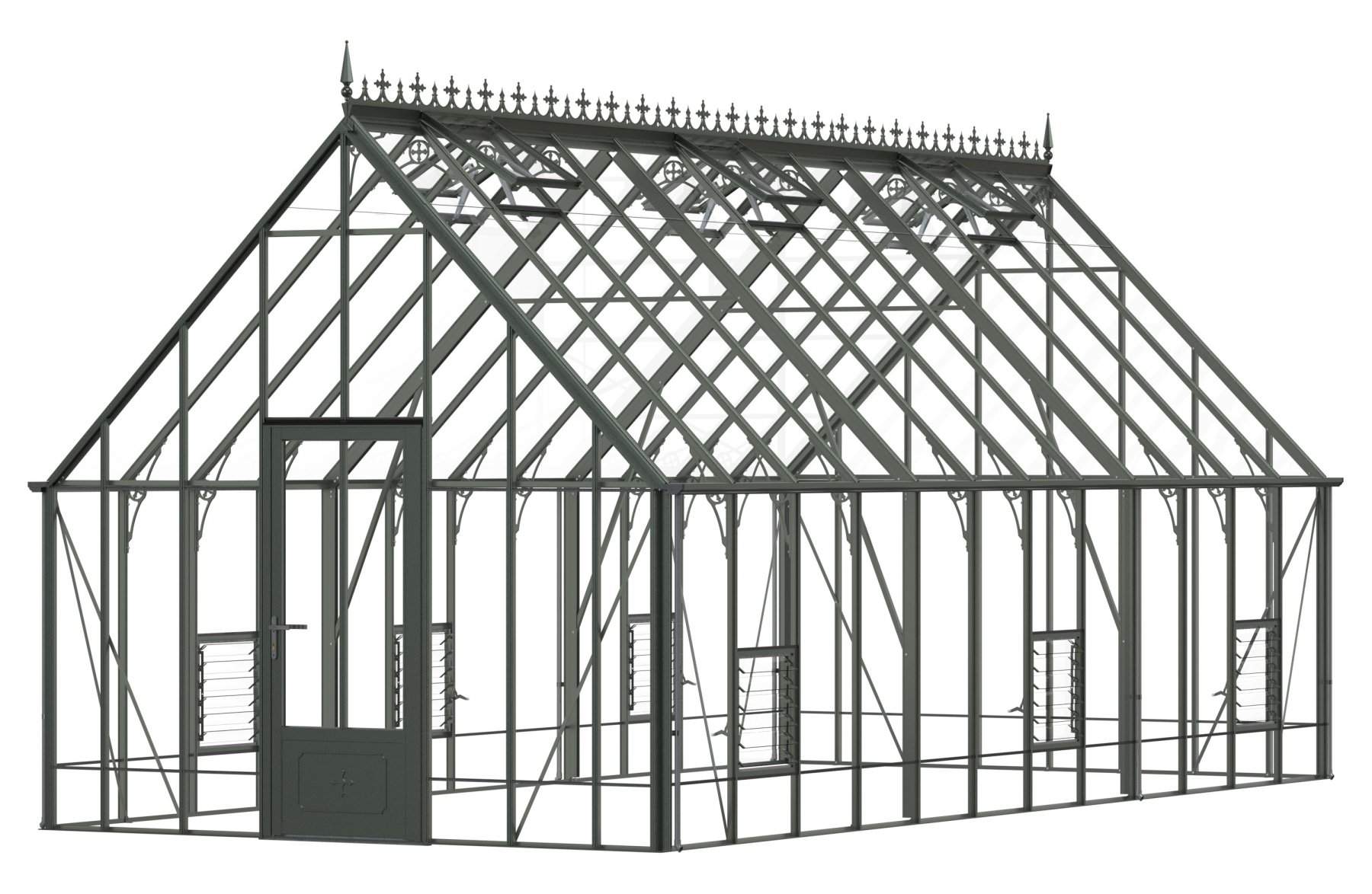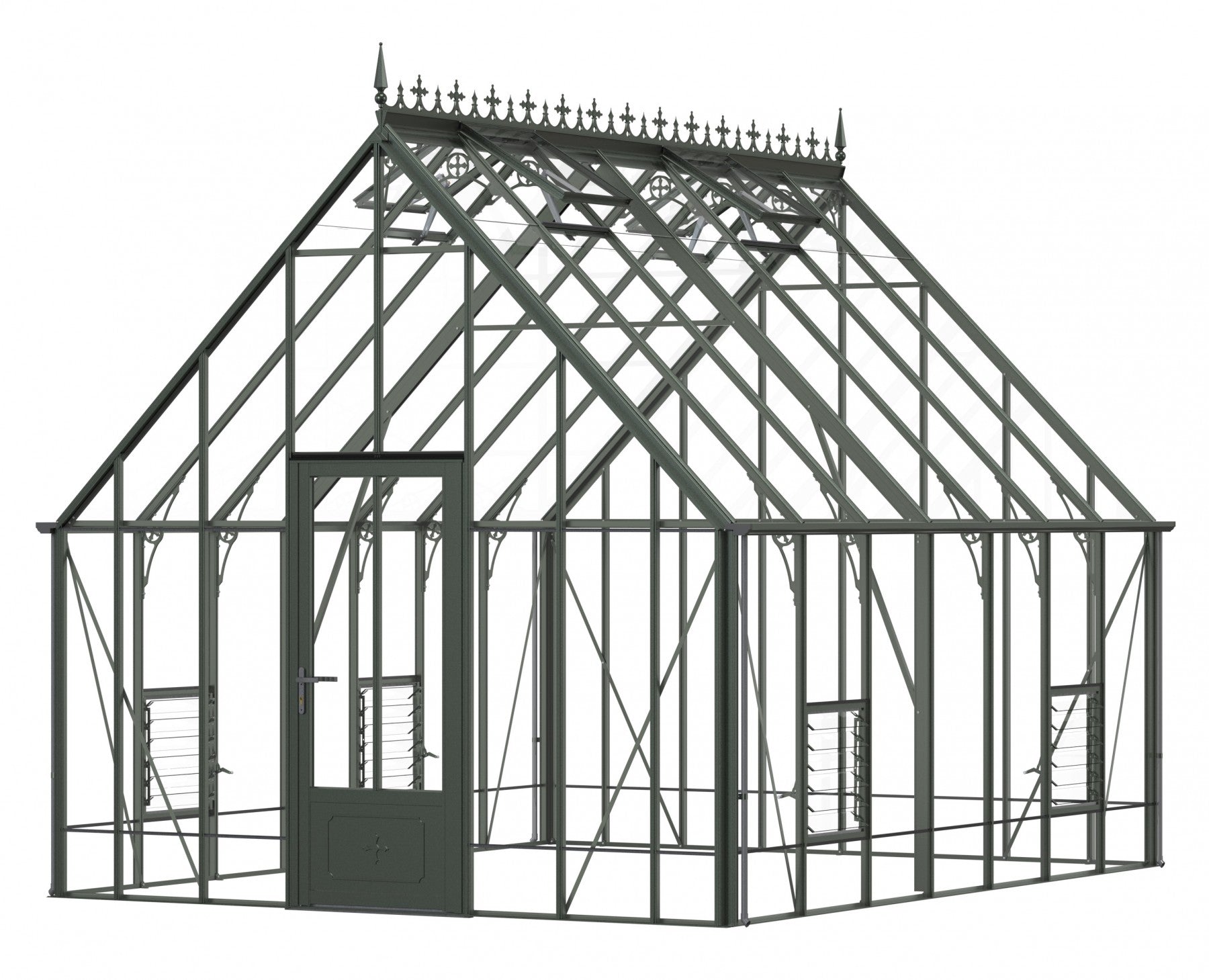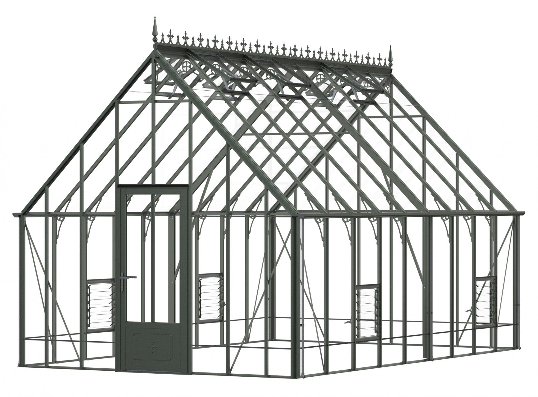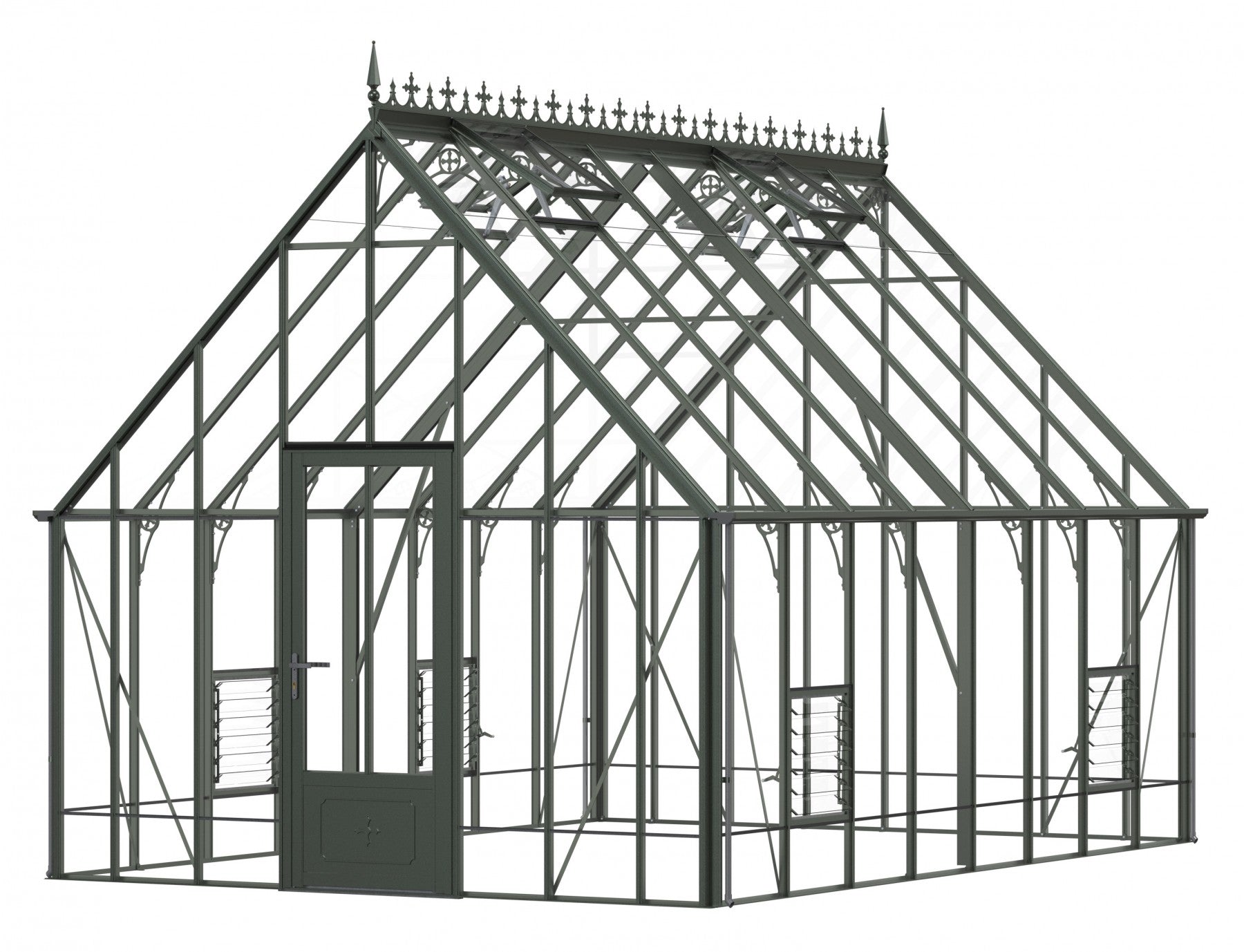 Add a touch of timeless elegance to your greenhouse with our optional ornate ridge cresting and finials. These exquisite architectural details are designed to enhance the aesthetics of your structure, bringing a classic Victorian charm to your garden.