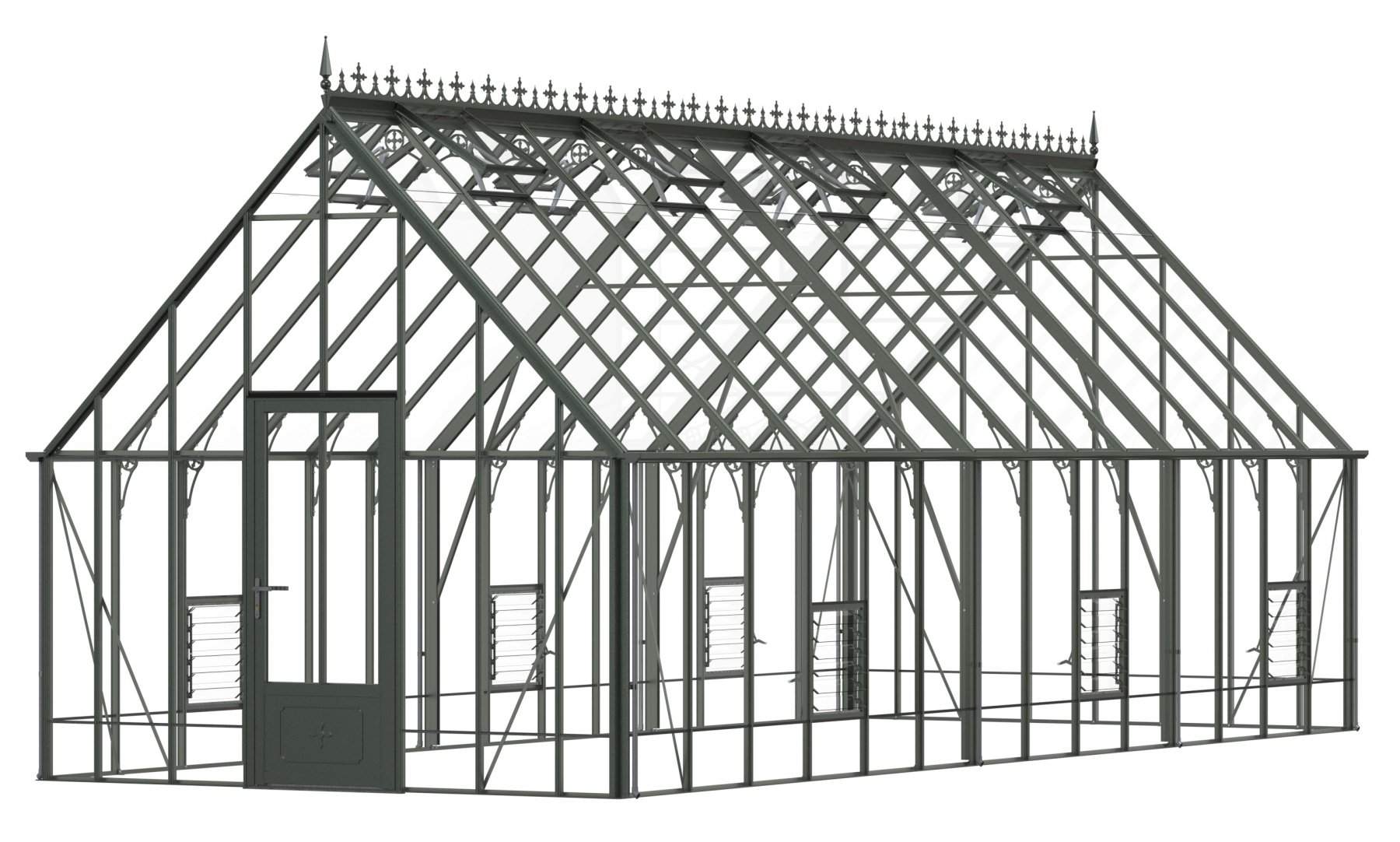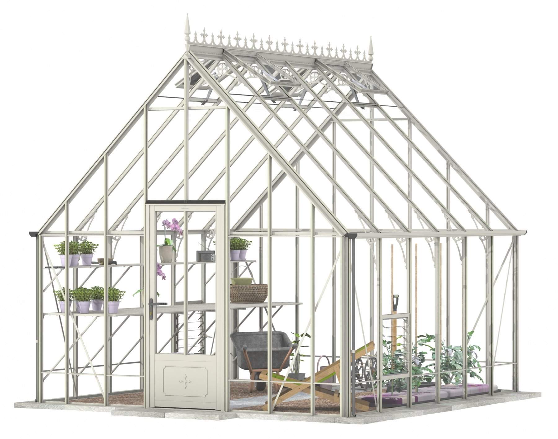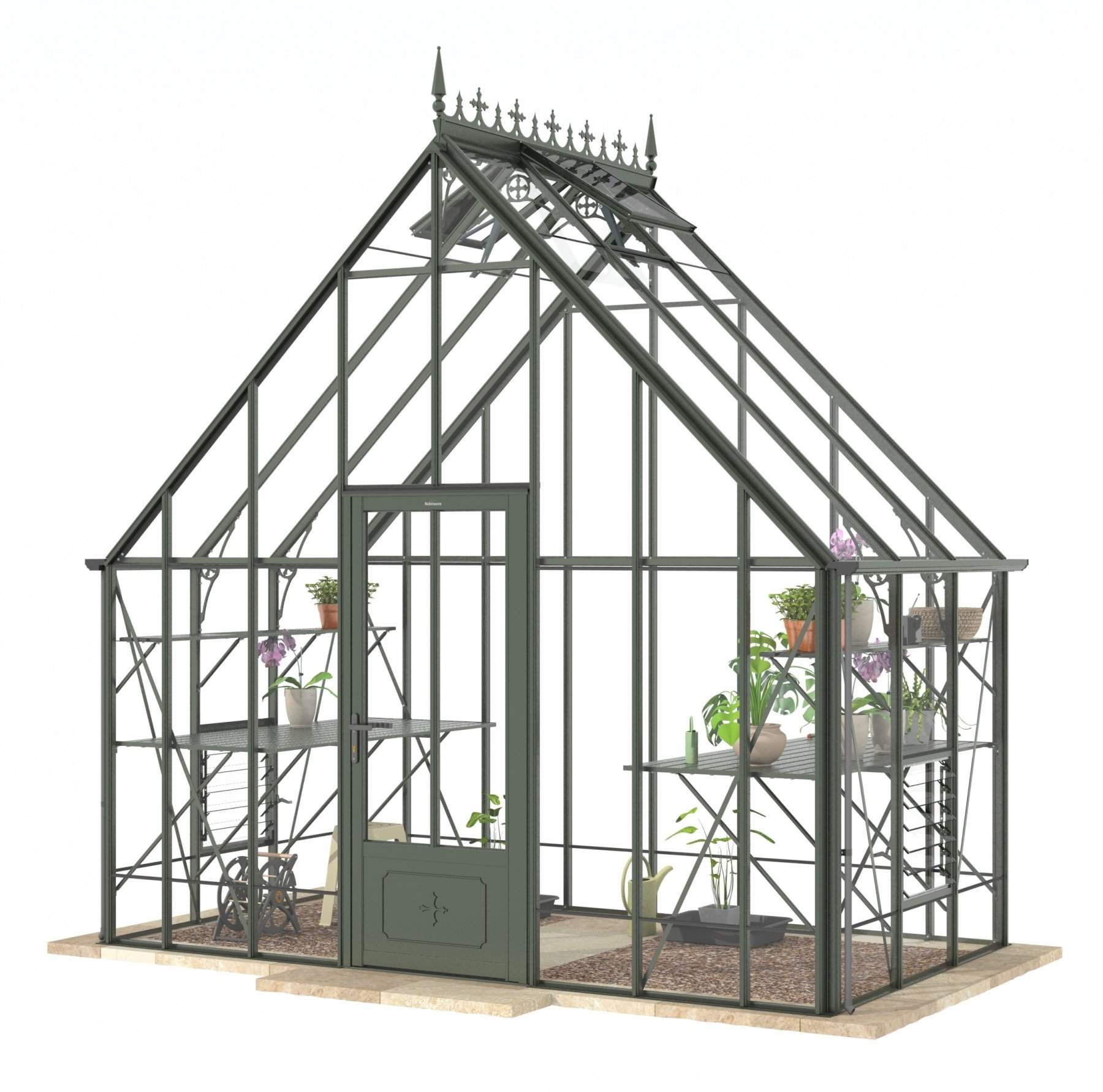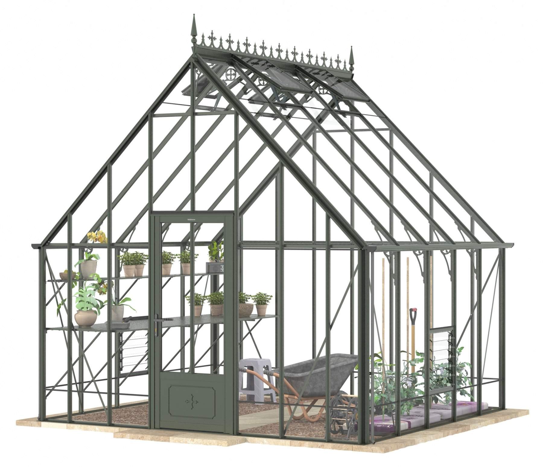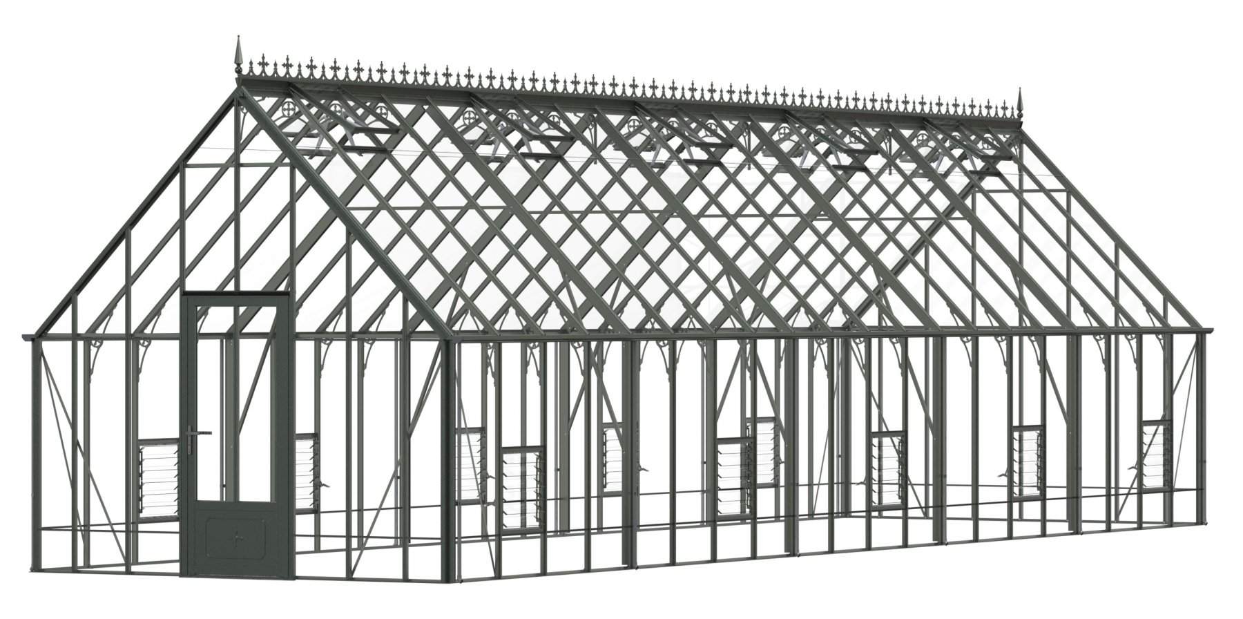 Add a touch of timeless elegance to your greenhouse with our optional ornate ridge cresting and finials. These exquisite architectural details are designed to enhance the aesthetics of your structure, bringing a classic Victorian charm to your garden.