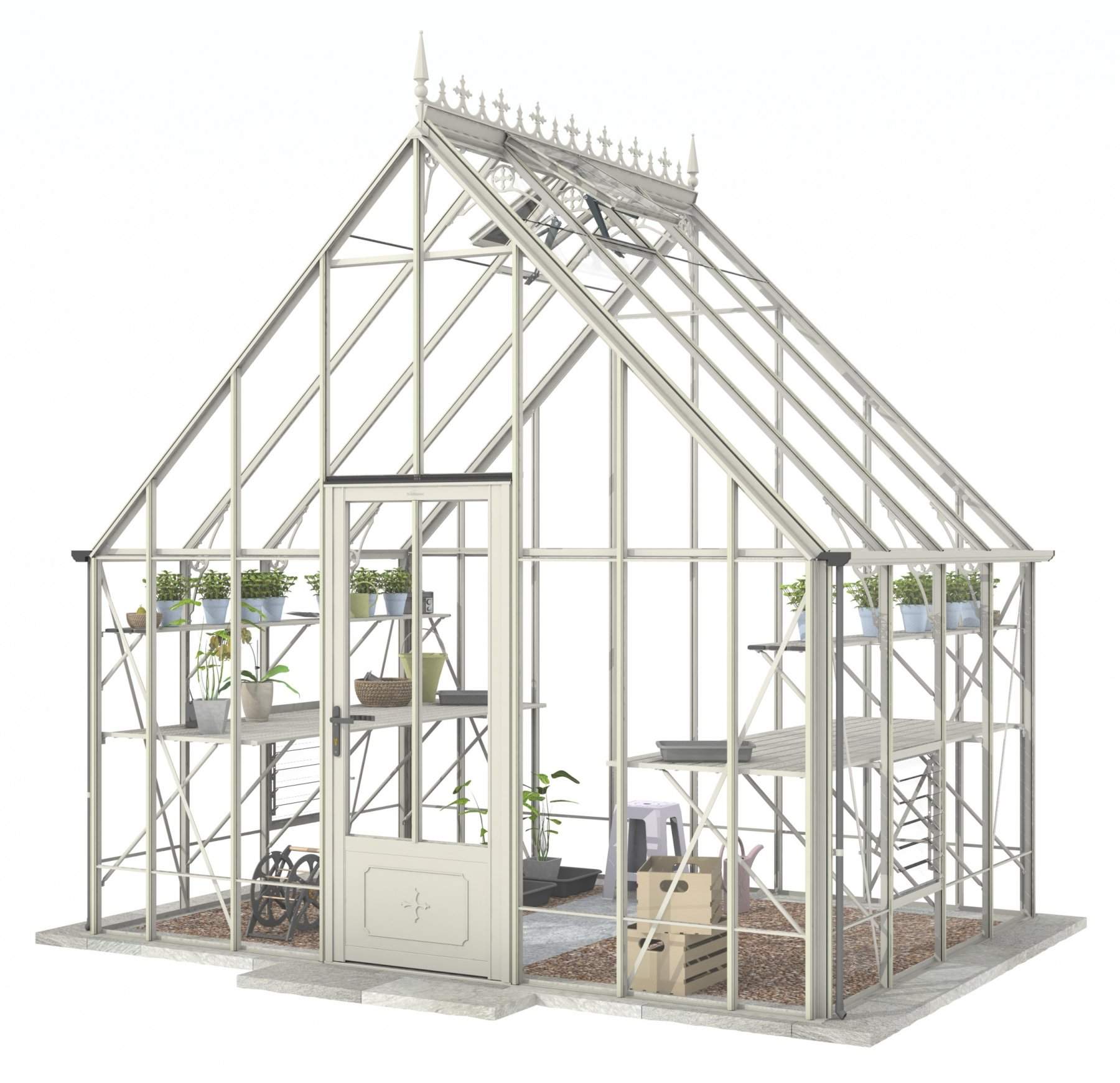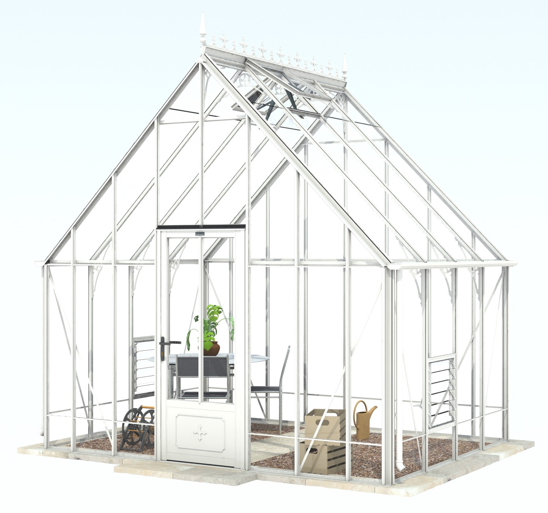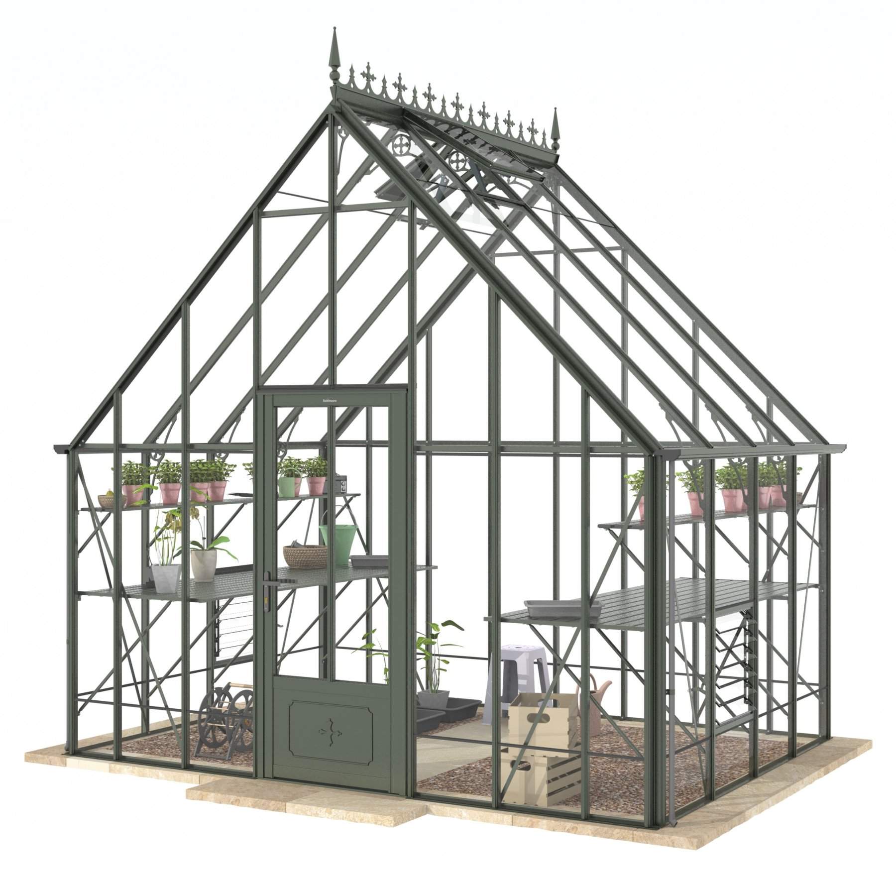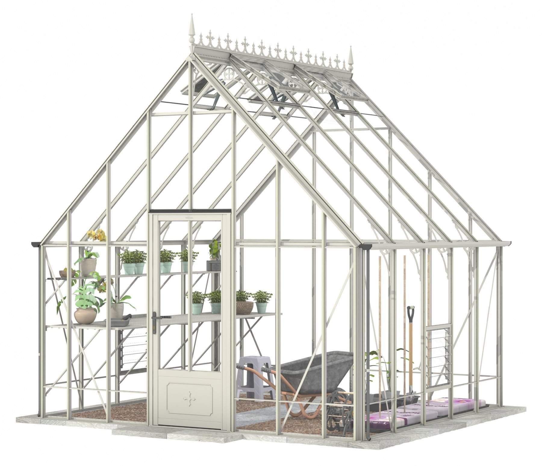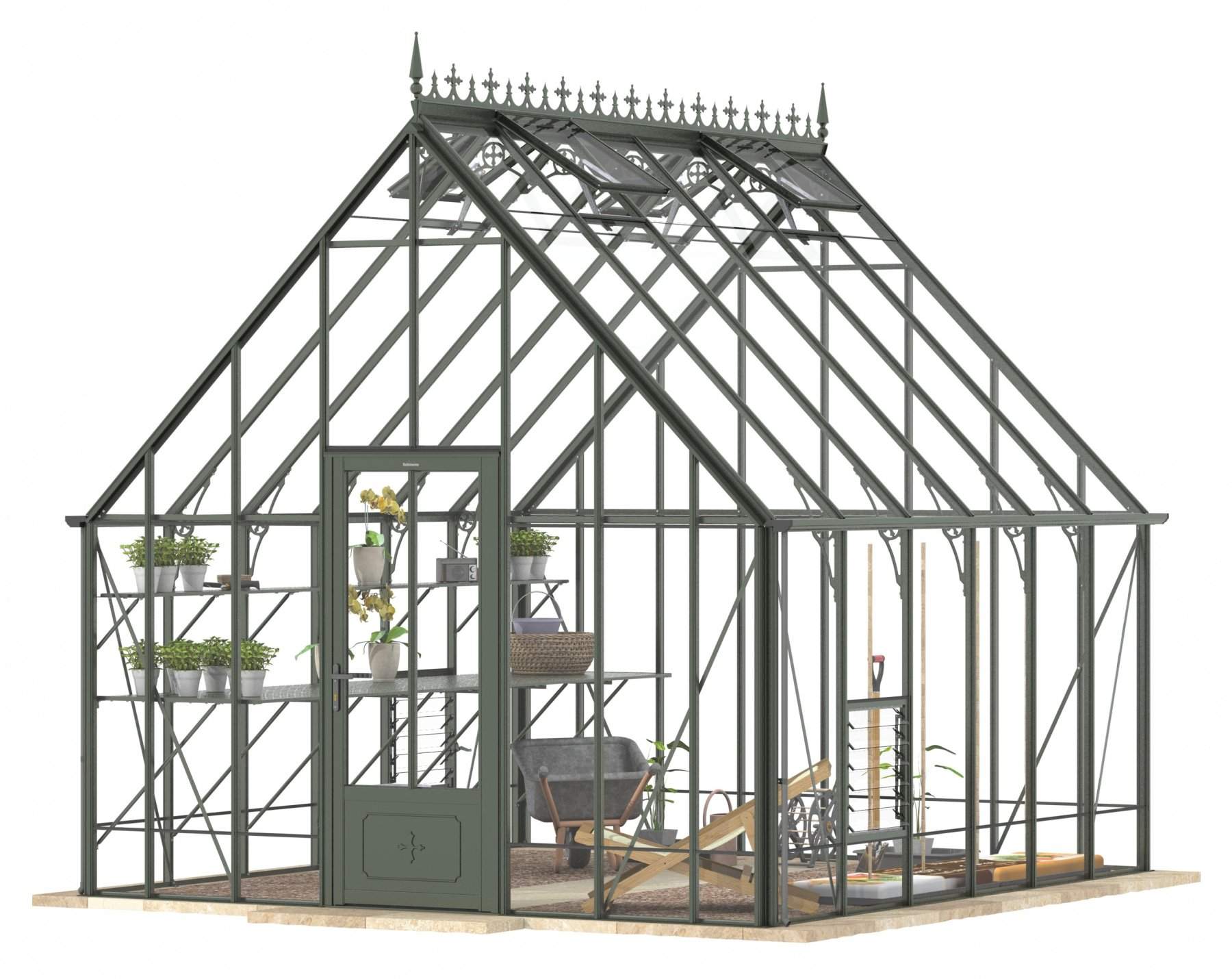 Add a touch of timeless elegance to your greenhouse with our optional ornate ridge cresting and finials. These exquisite architectural details are designed to enhance the aesthetics of your structure, bringing a classic Victorian charm to your garden.