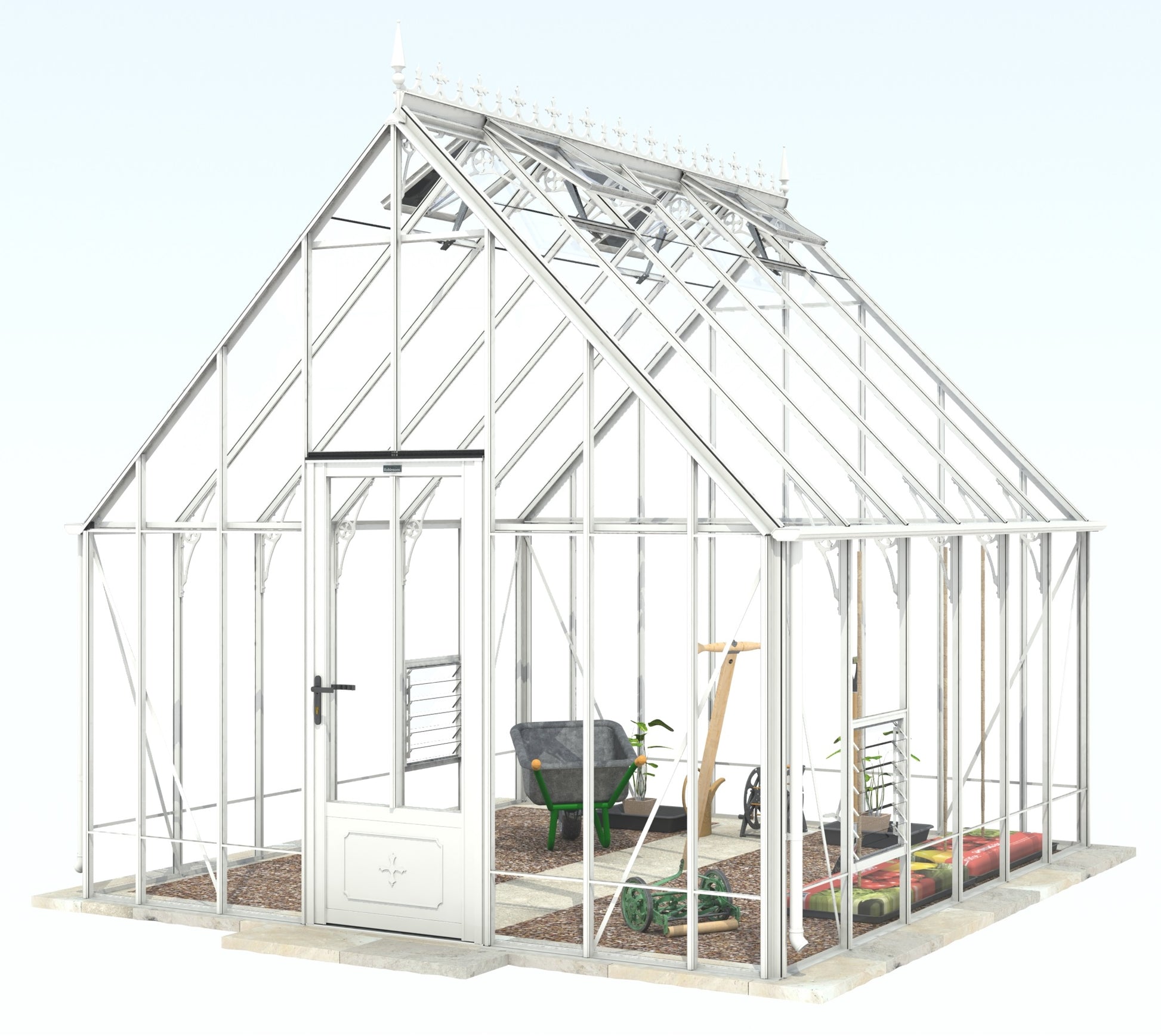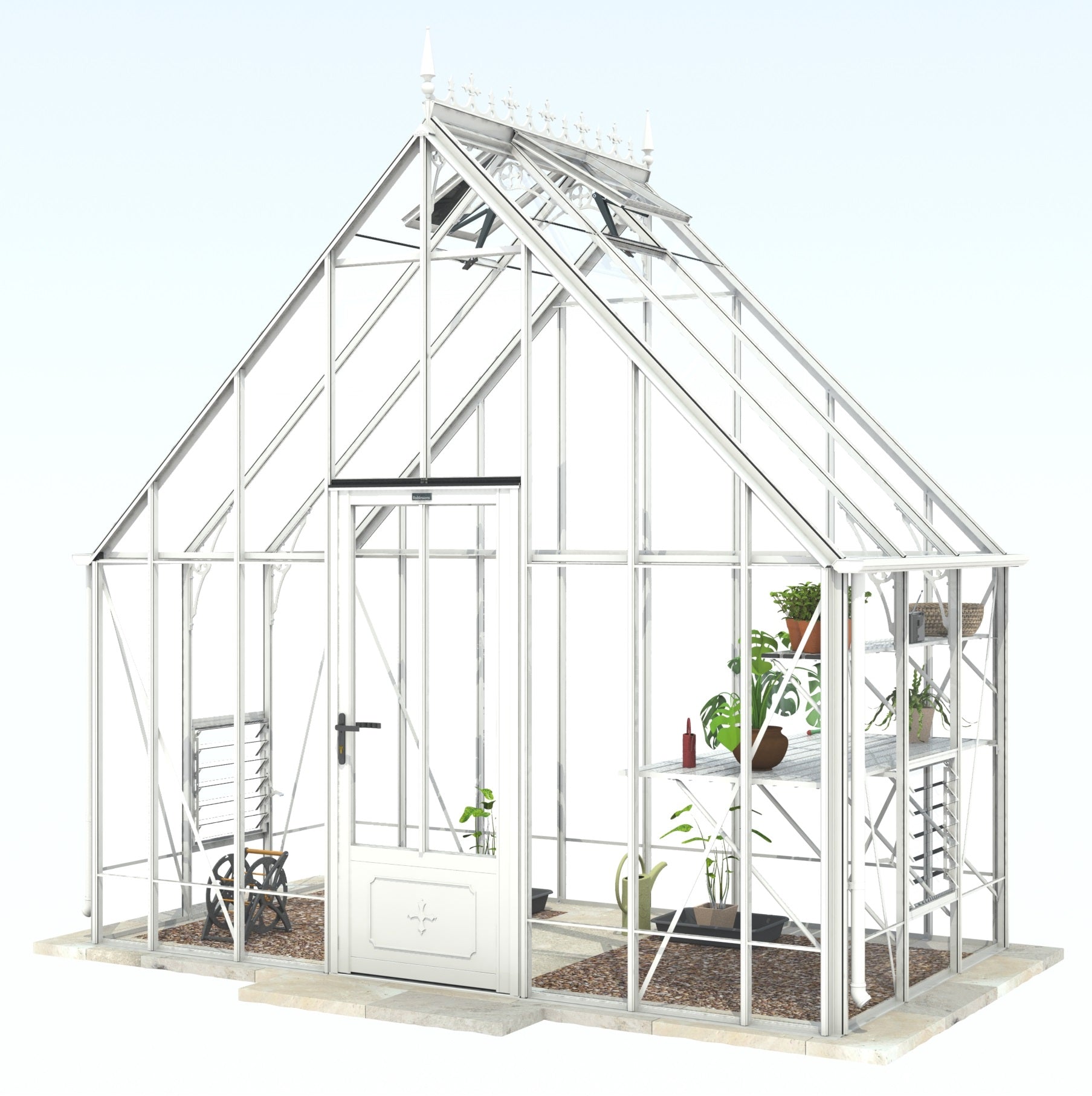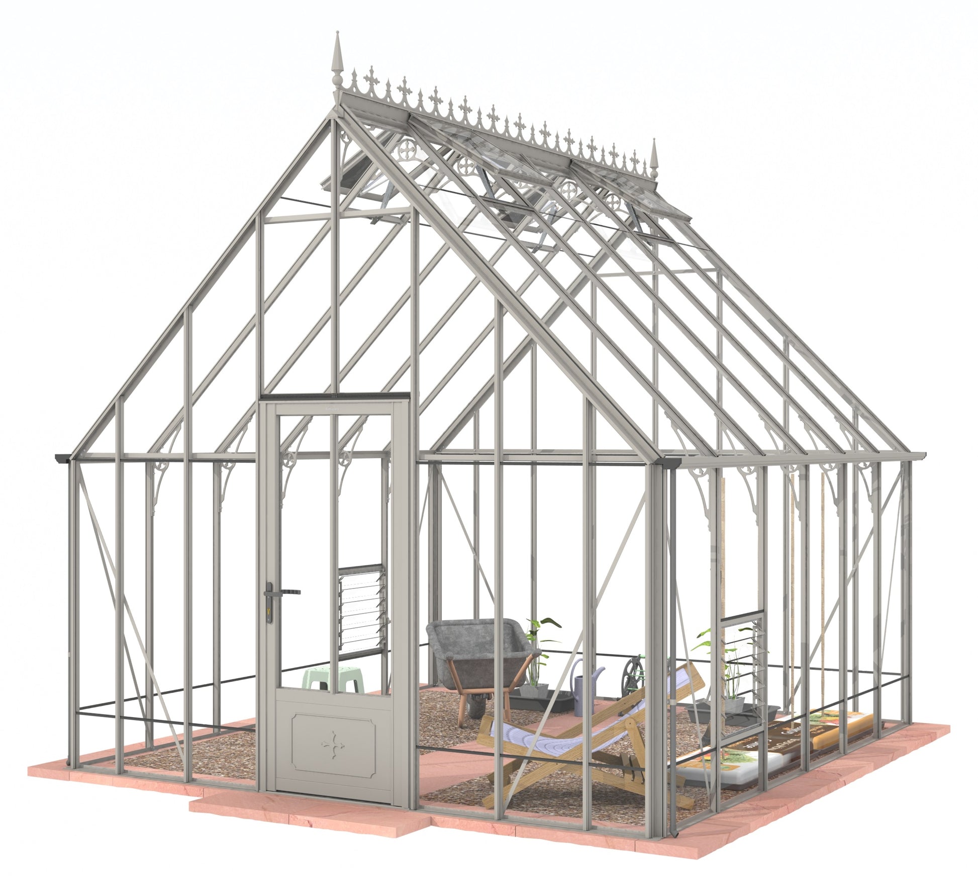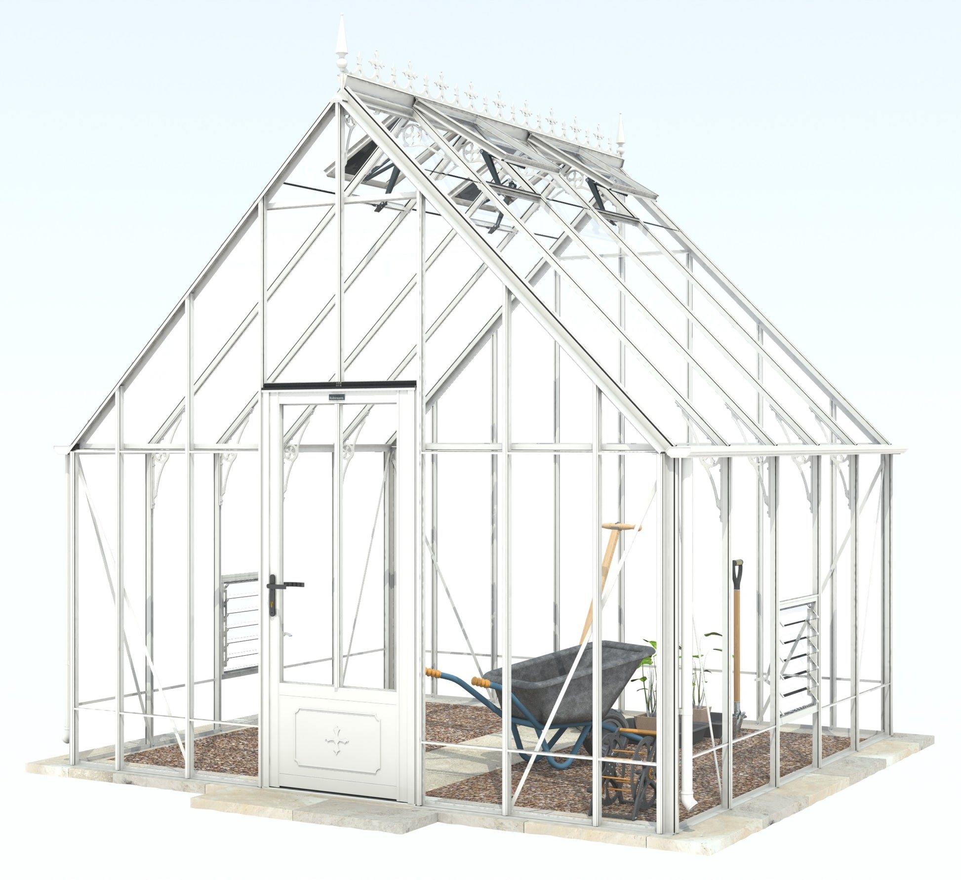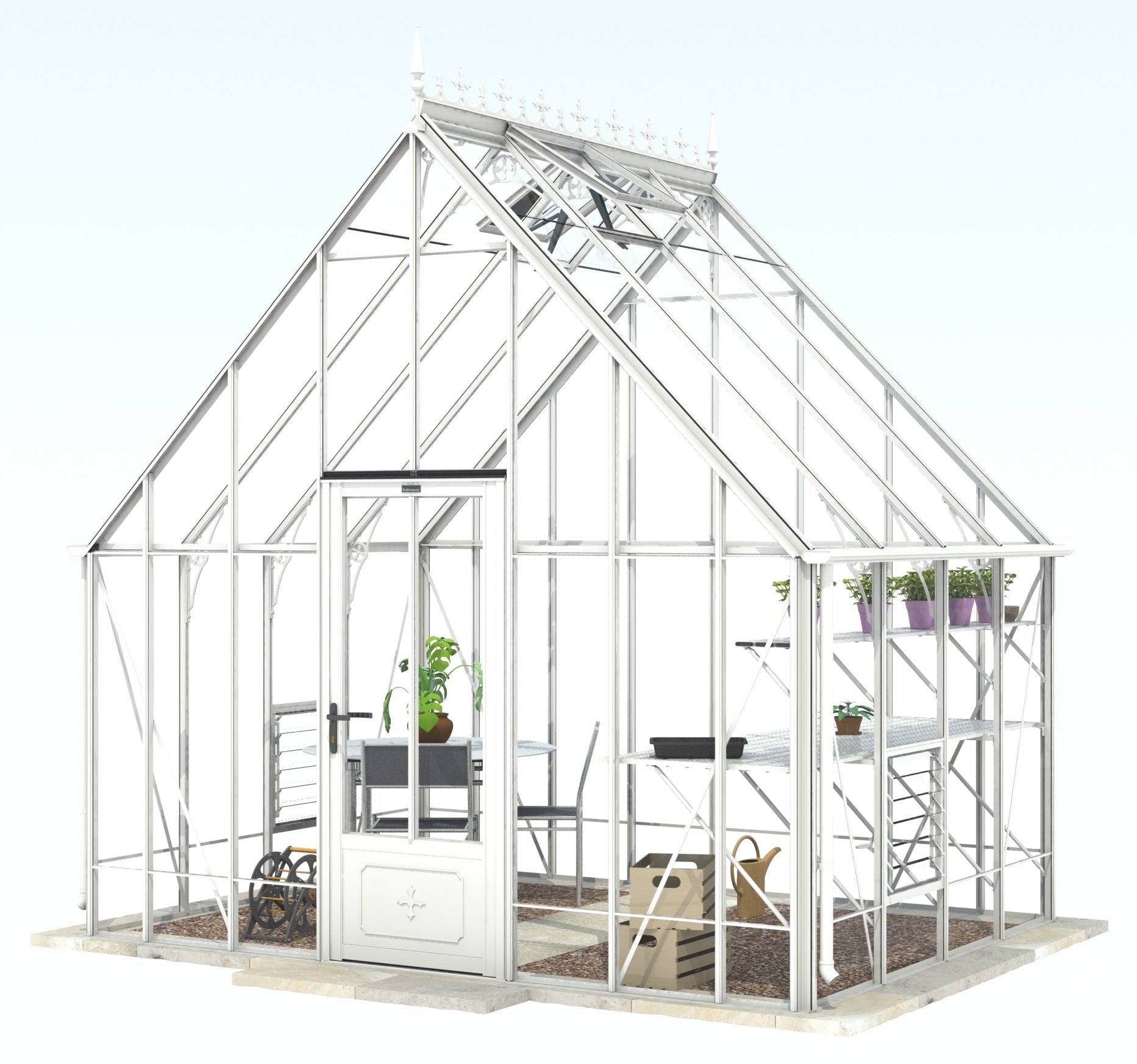 Add a touch of timeless elegance to your greenhouse with our optional ornate ridge cresting and finials. These exquisite architectural details are designed to enhance the aesthetics of your structure, bringing a classic Victorian charm to your garden.
