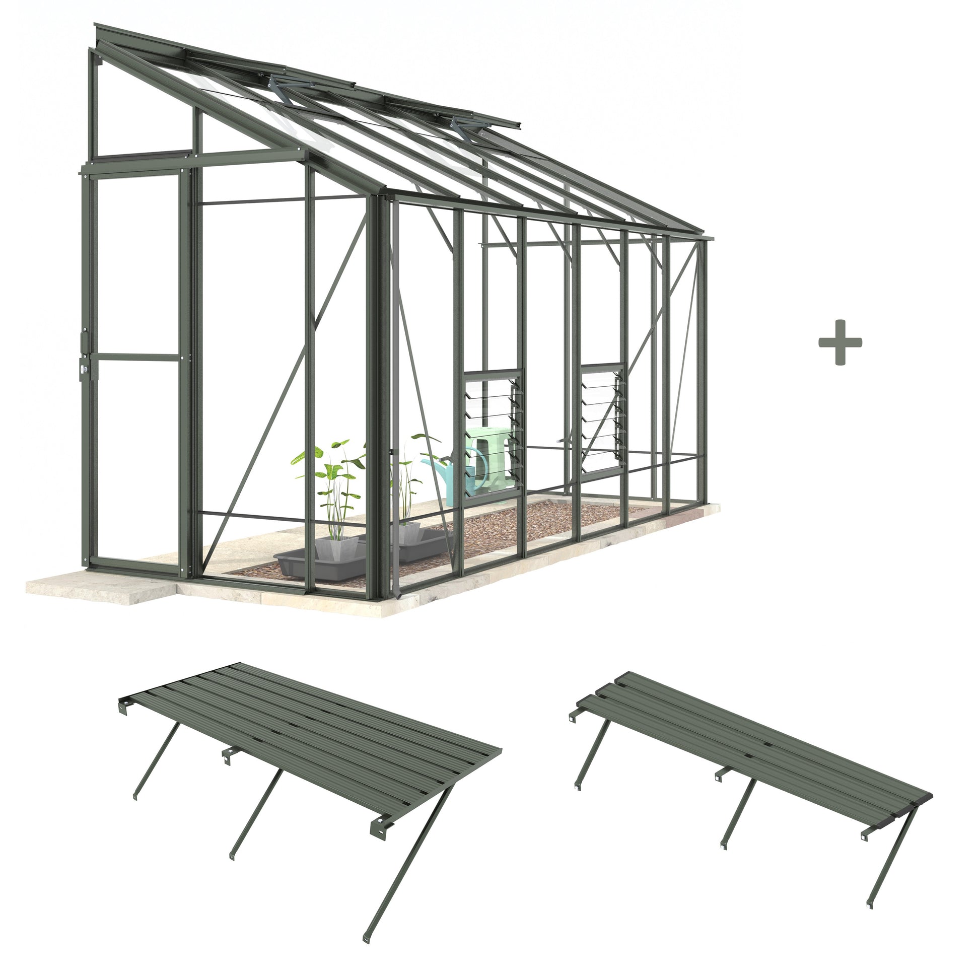 Our optional staging and shelving offer full height adjustability, providing a versatile solution for organising your greenhouse. These sturdy additions are securely bolted to the side of the greenhouses using tubular cantilever supports, ensuring exceptional strength and stability.