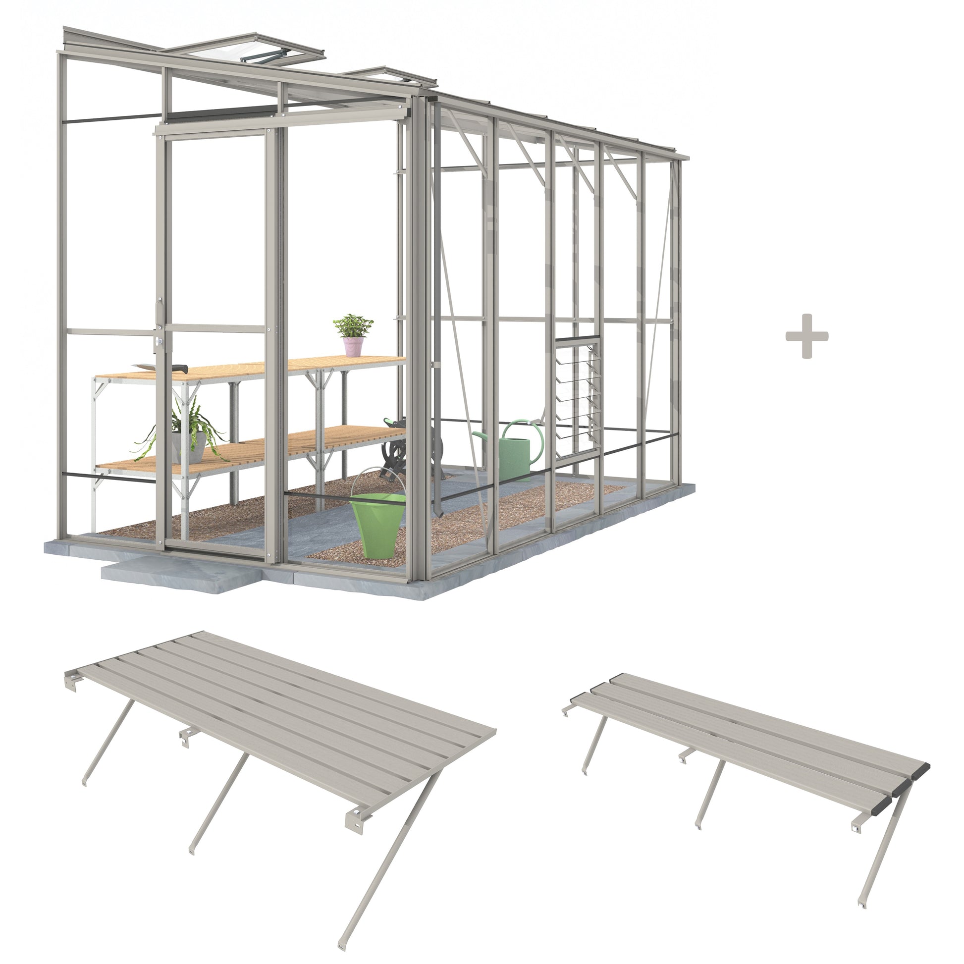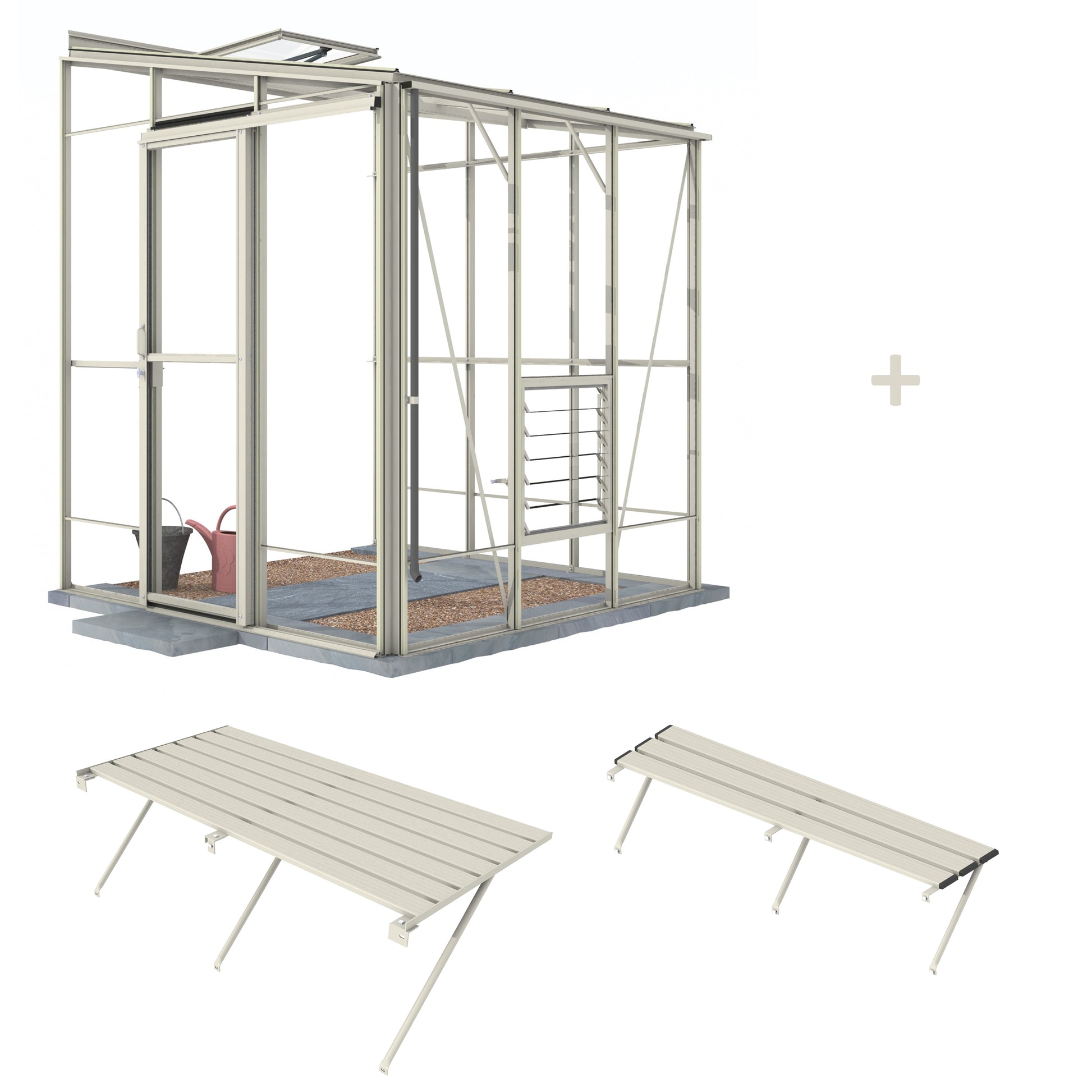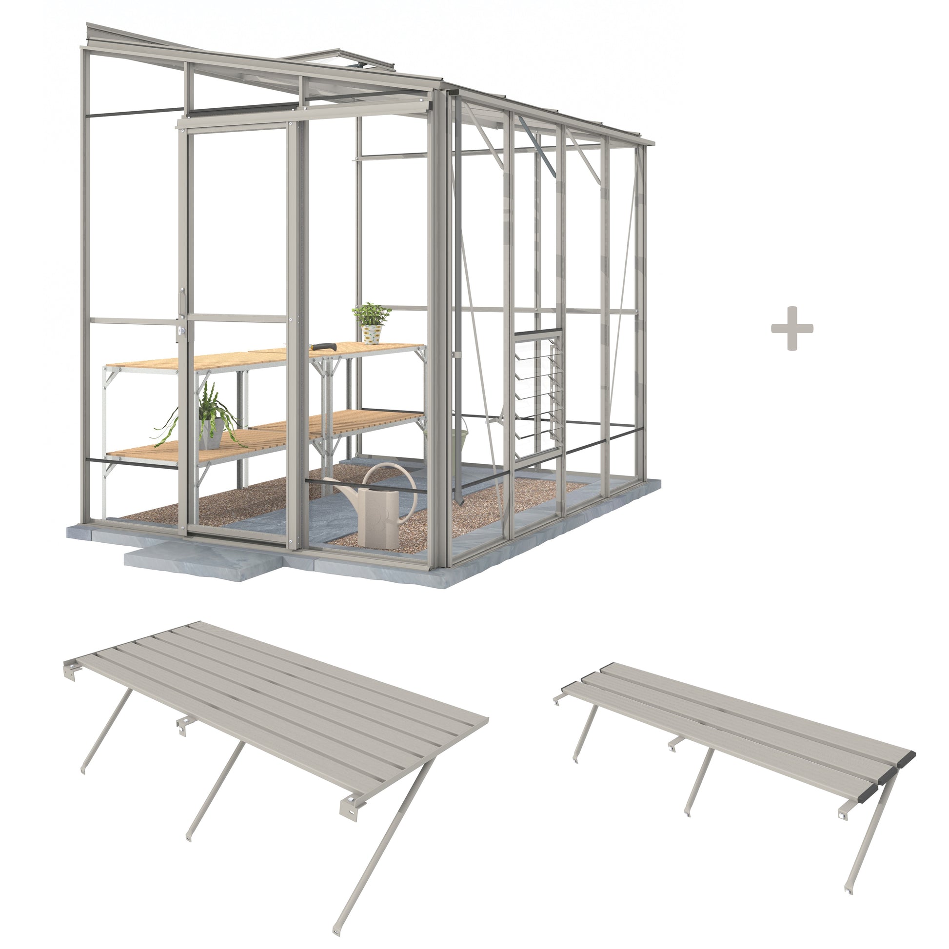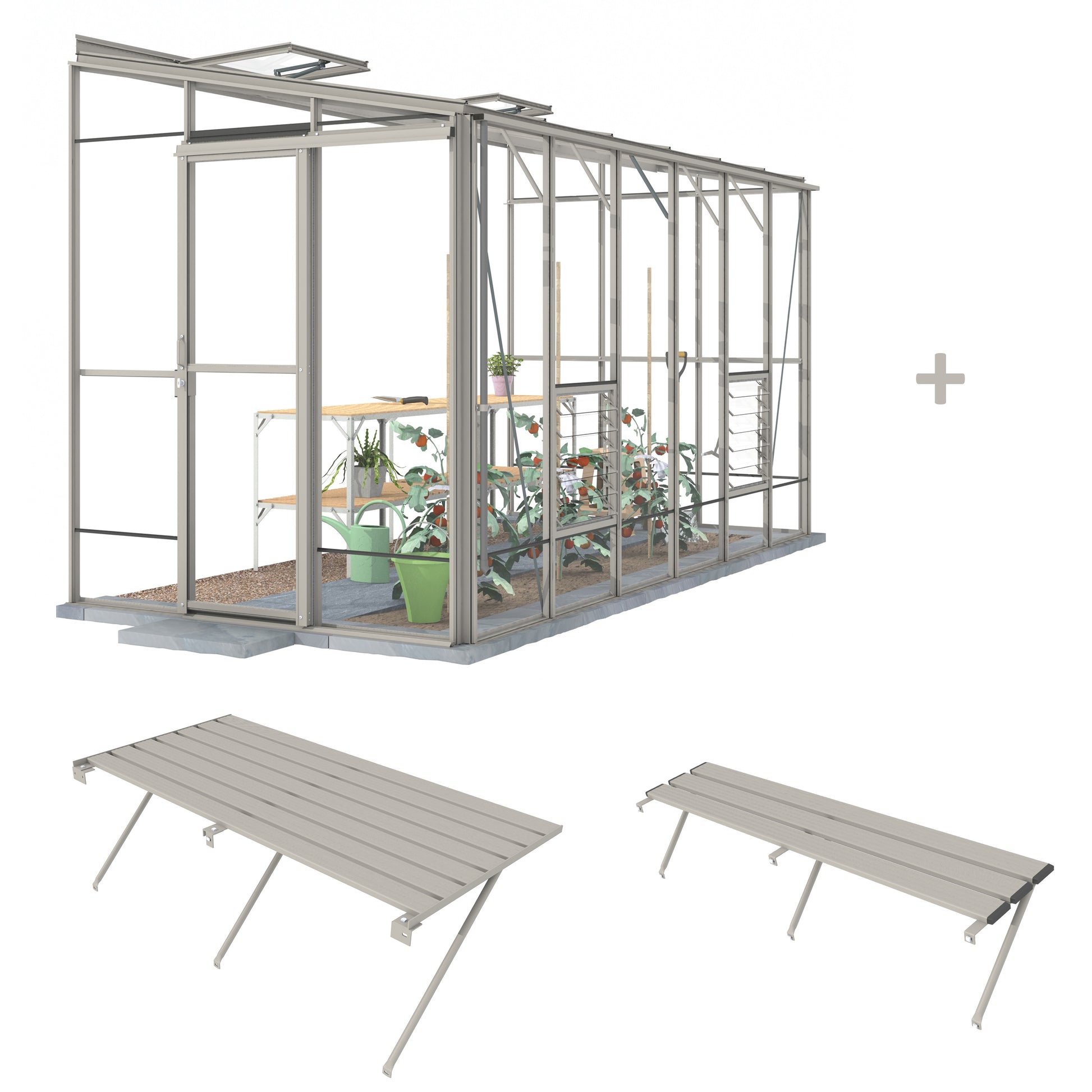 Our optional staging and shelving offer full height adjustability, providing a versatile solution for organising your greenhouse. These sturdy additions are securely bolted to the side of the greenhouses using tubular cantilever supports, ensuring exceptional strength and stability.