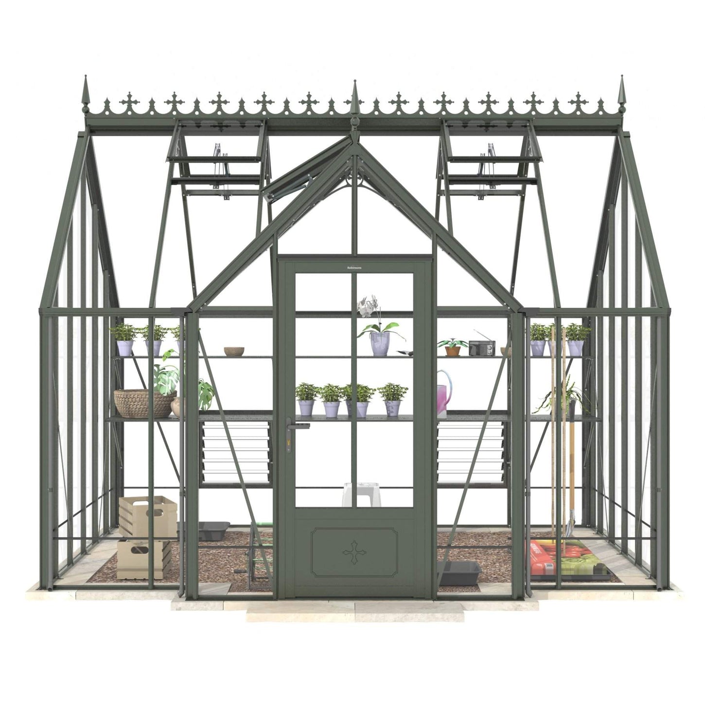Discover the exquisite Robinsons Radley greenhouse, a glass-to-ground version of the Rushby model that brings Victorian elegance to your garden. With a starting length of 8'8" and the ability to extend using 8'1" modules, it offers versatility to fit your desired dimensions.