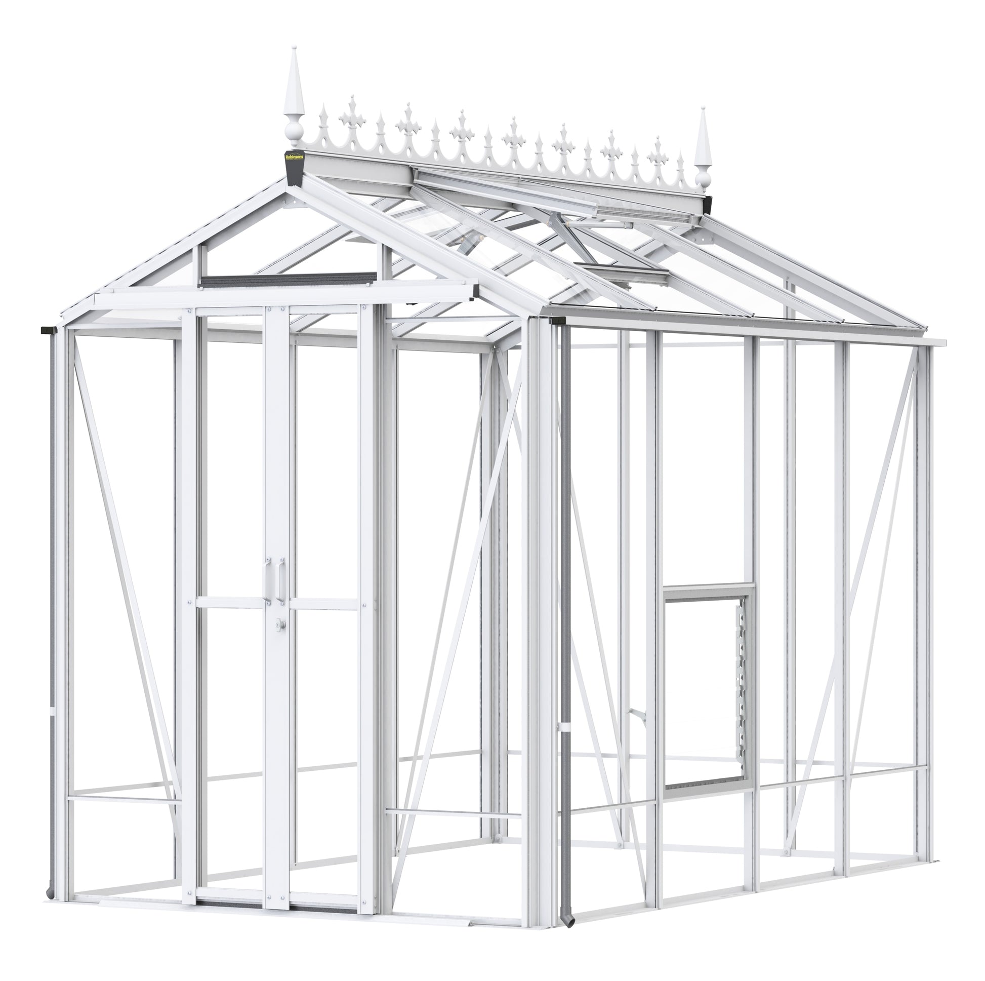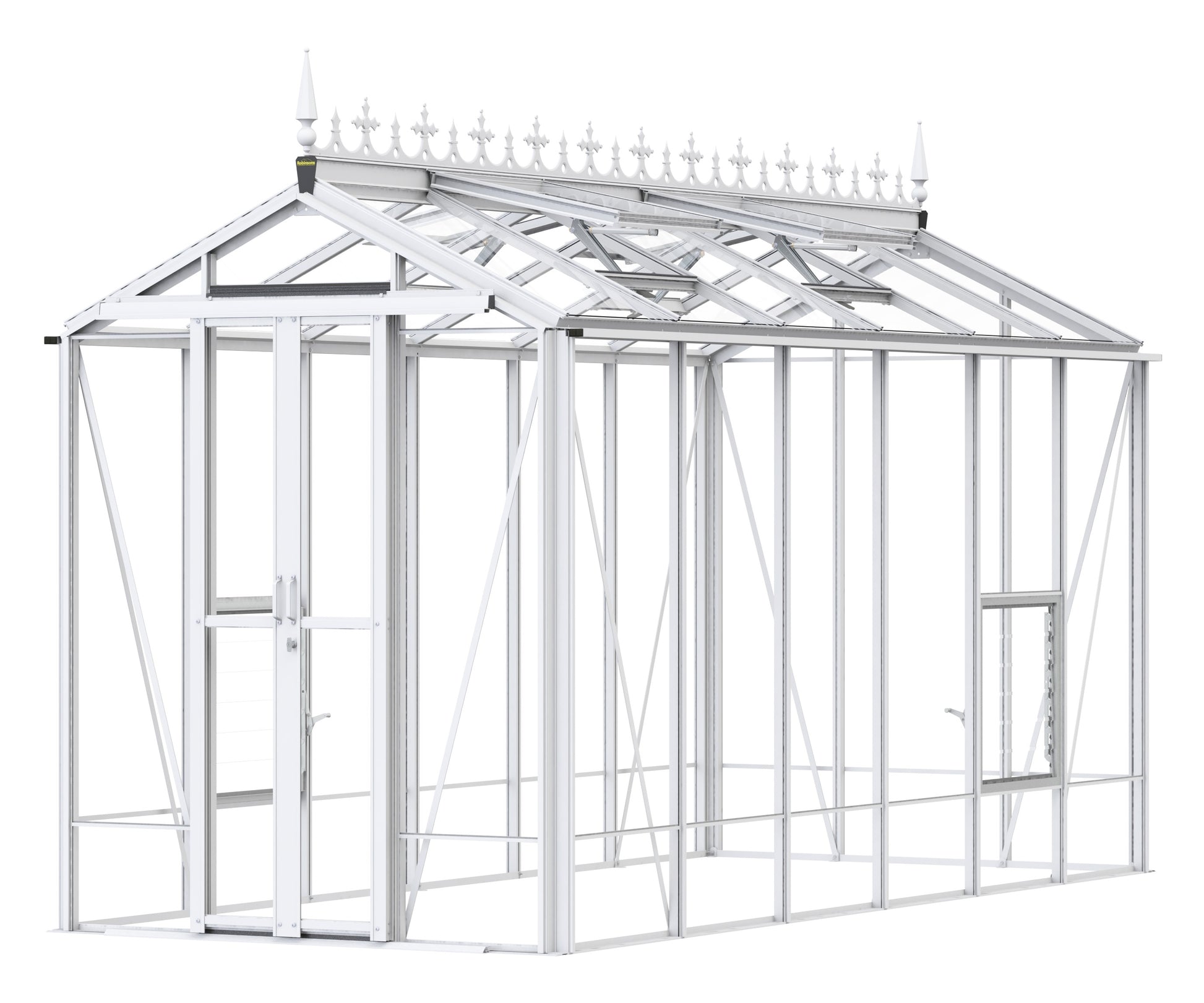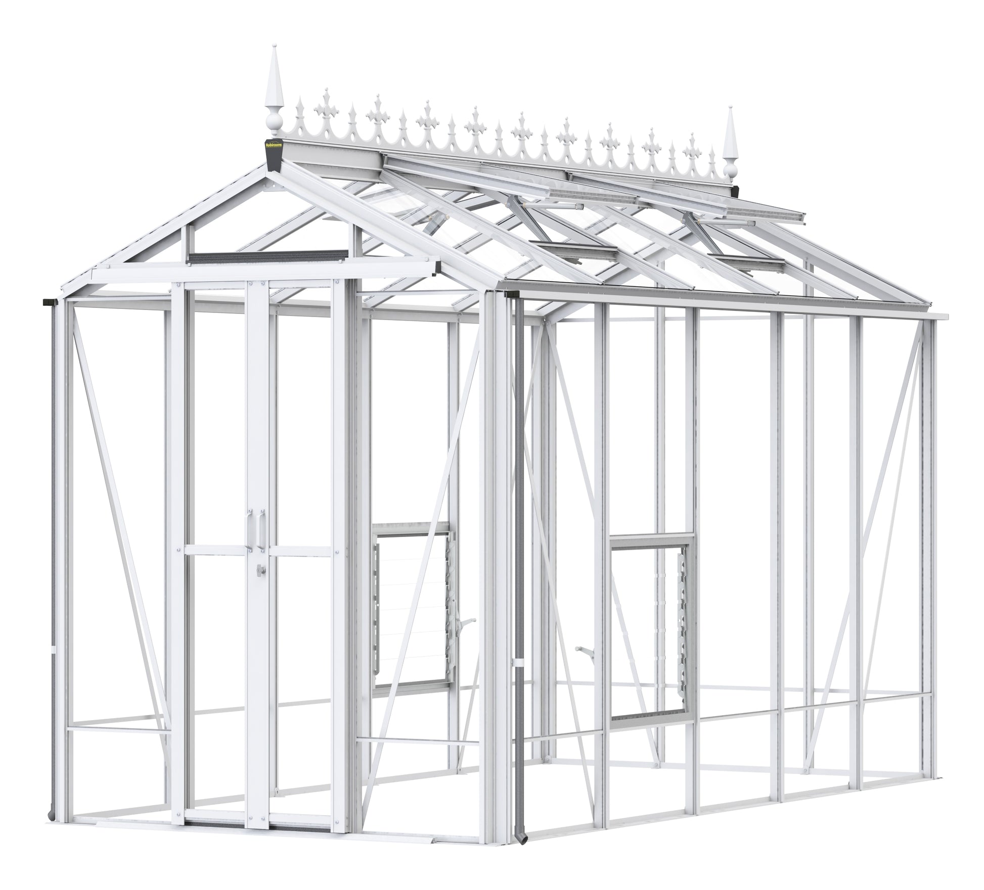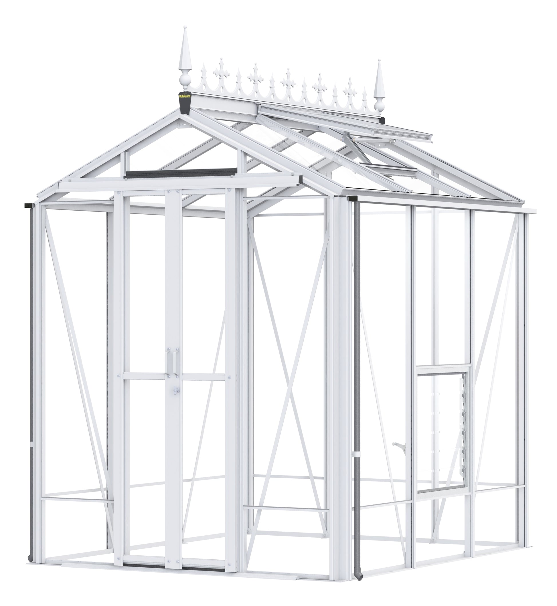 The eaves spandrels not only contribute to the overall strength of the frame but also add to the classic Victorian-style finish of the greenhouse. The powder-coated finish enhances the visual appeal while providing protection against corrosion and wear, ensuring a pristine appearance for years to come.