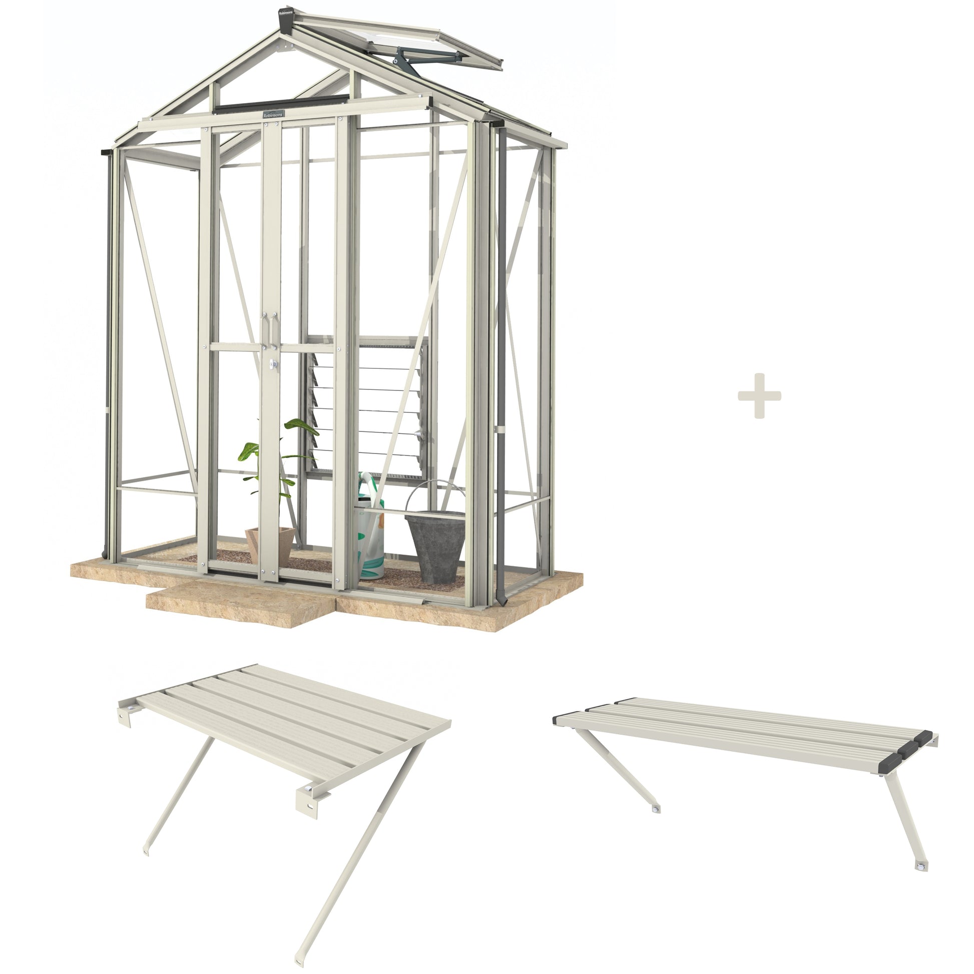 To maximise functionality, our fully height-adjustable staging and shelving offer ample workspace and storage. These robust additions are bolted to the side of the greenhouse, allowing you to customise the perfect working height and utilise the space underneath for heavy storage or extra growing area.