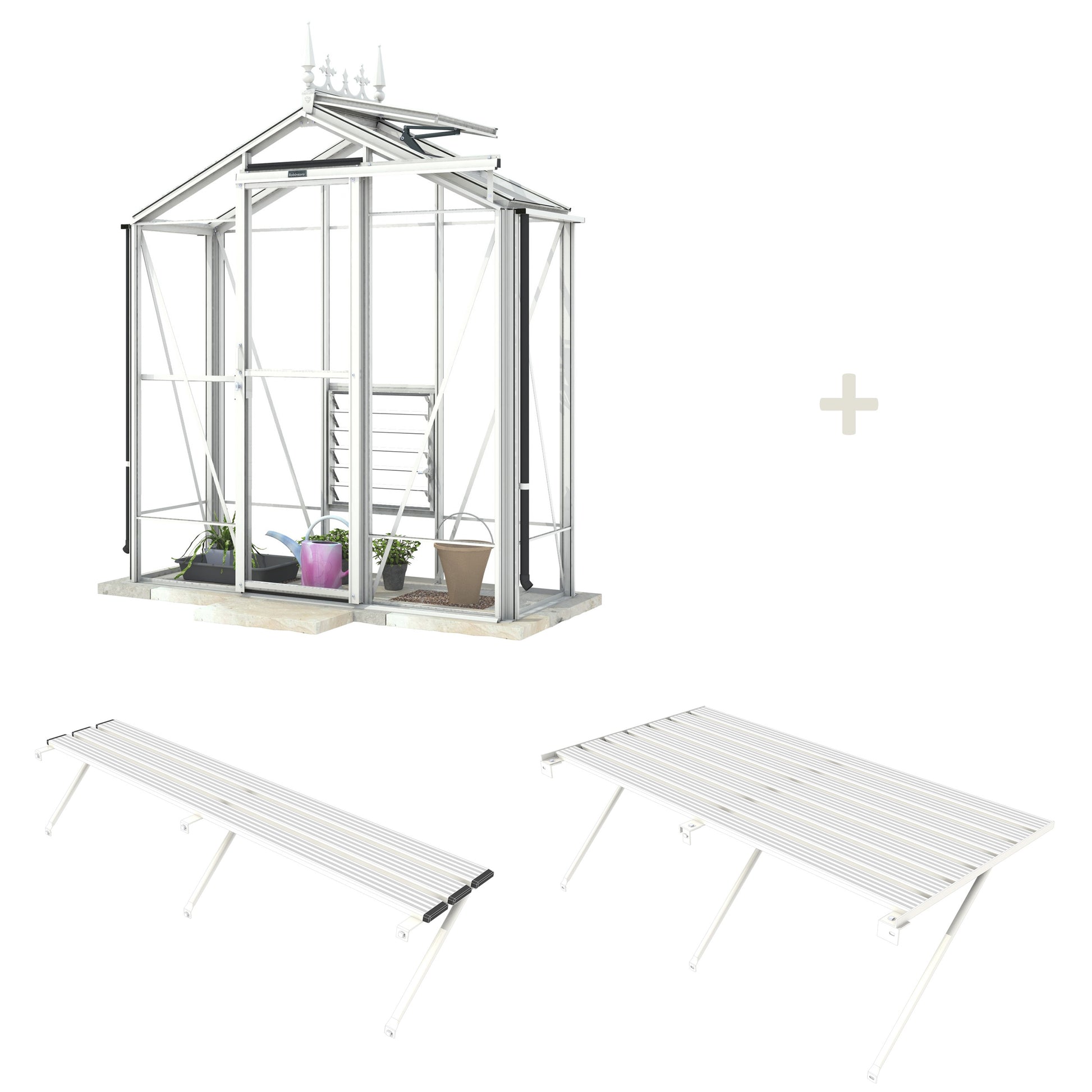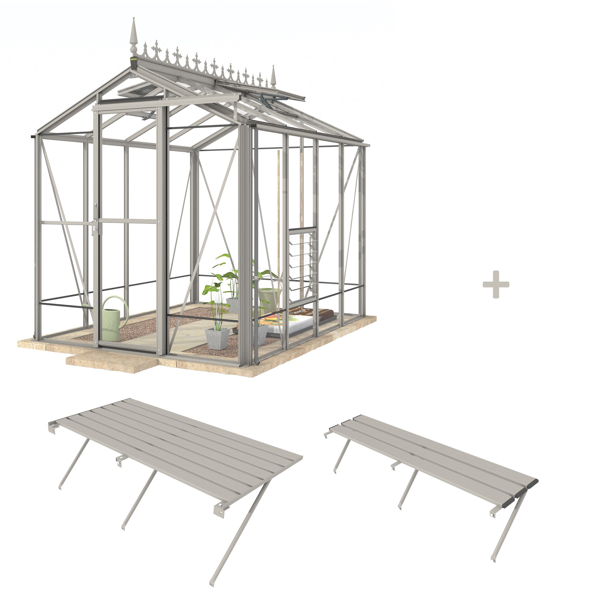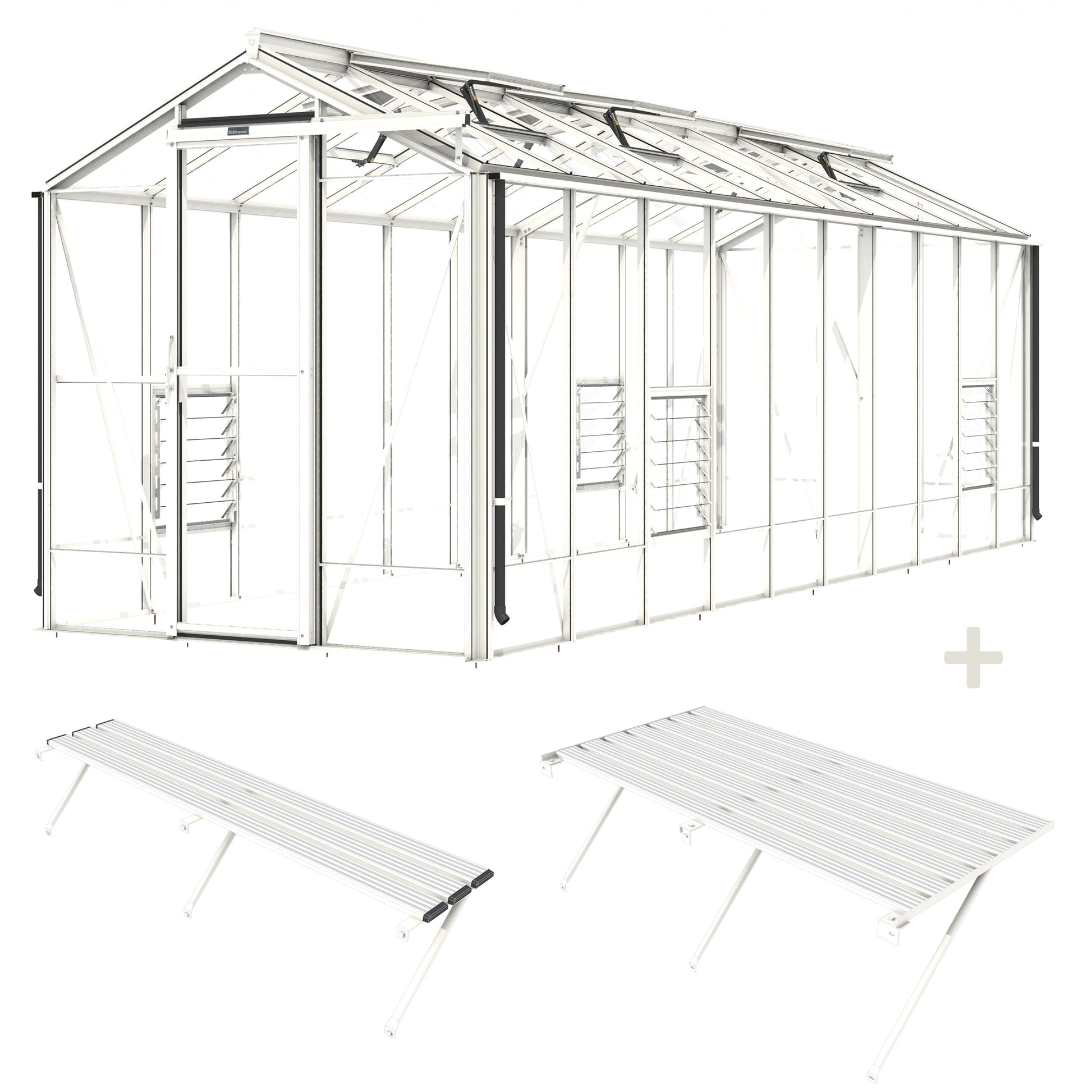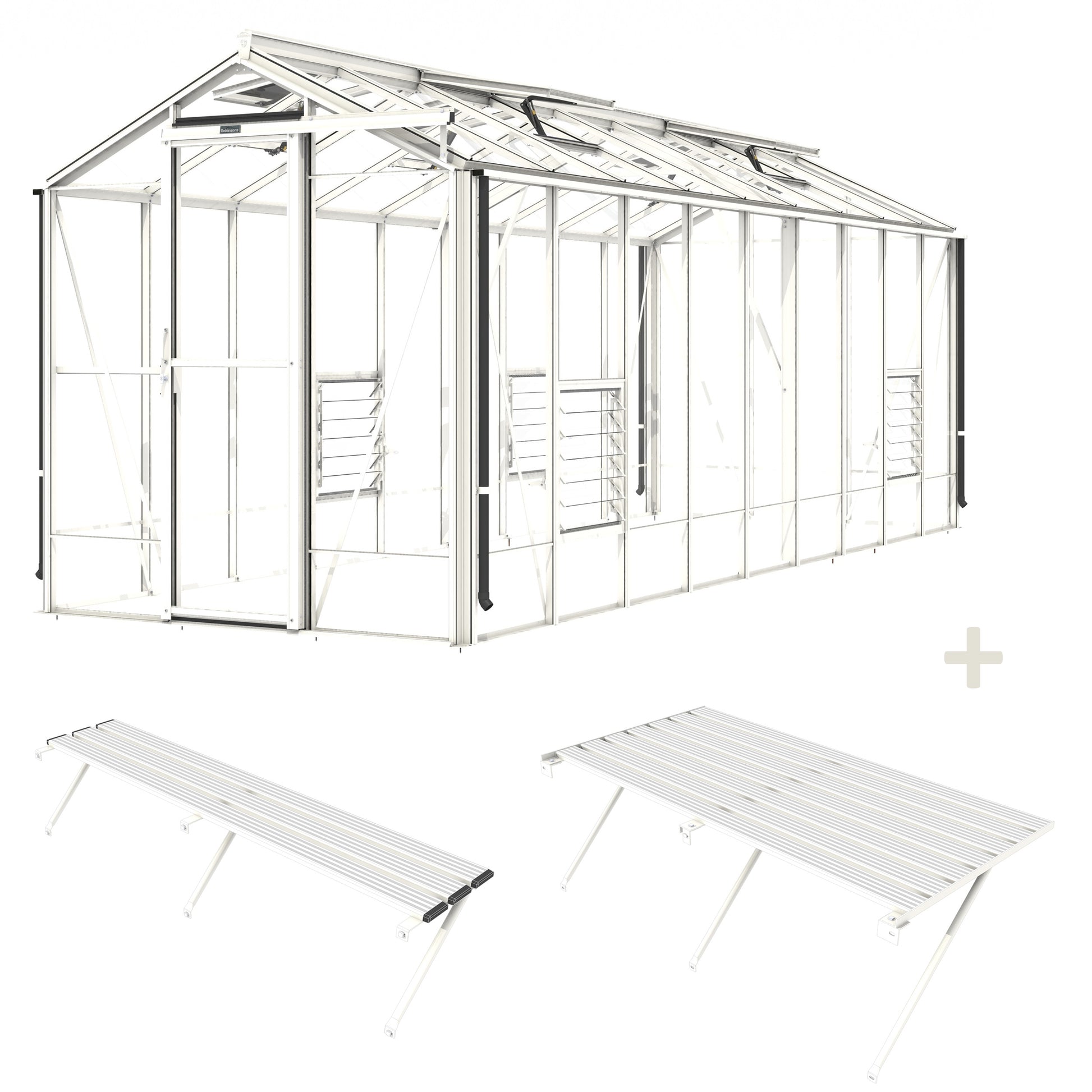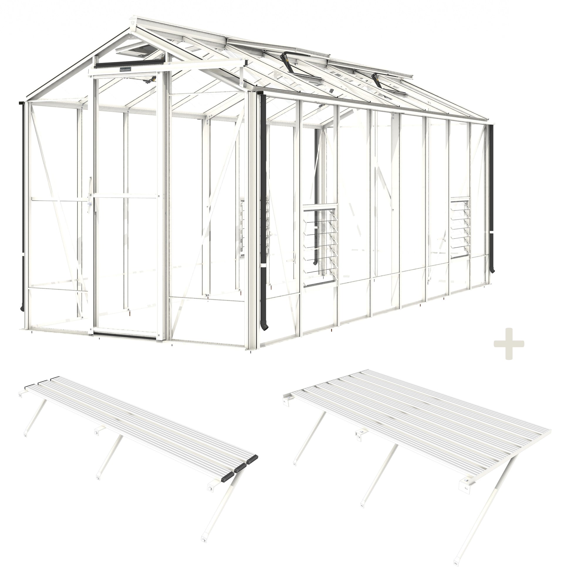 Our optional staging and shelving offer full height adjustability, providing a versatile solution for organising your greenhouse. These sturdy additions are securely bolted to the side of the greenhouses using tubular cantilever supports, ensuring exceptional strength and stability.