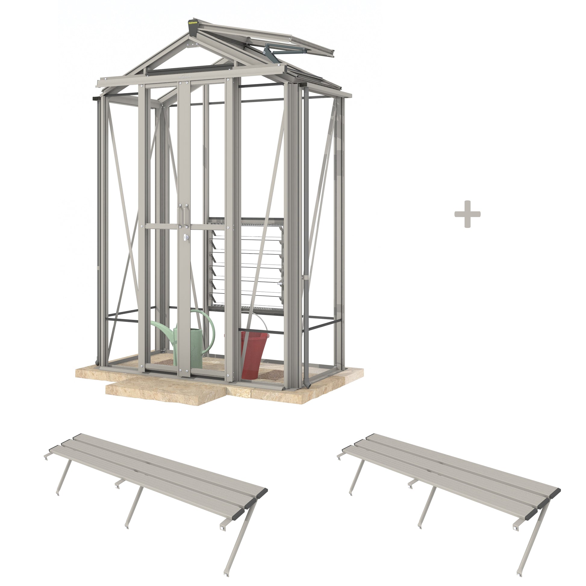 To maximise functionality, our fully height-adjustable staging and shelving offer ample workspace and storage. These robust additions are bolted to the side of the greenhouse, allowing you to customise the perfect working height and utilise the space underneath for heavy storage or extra growing area.