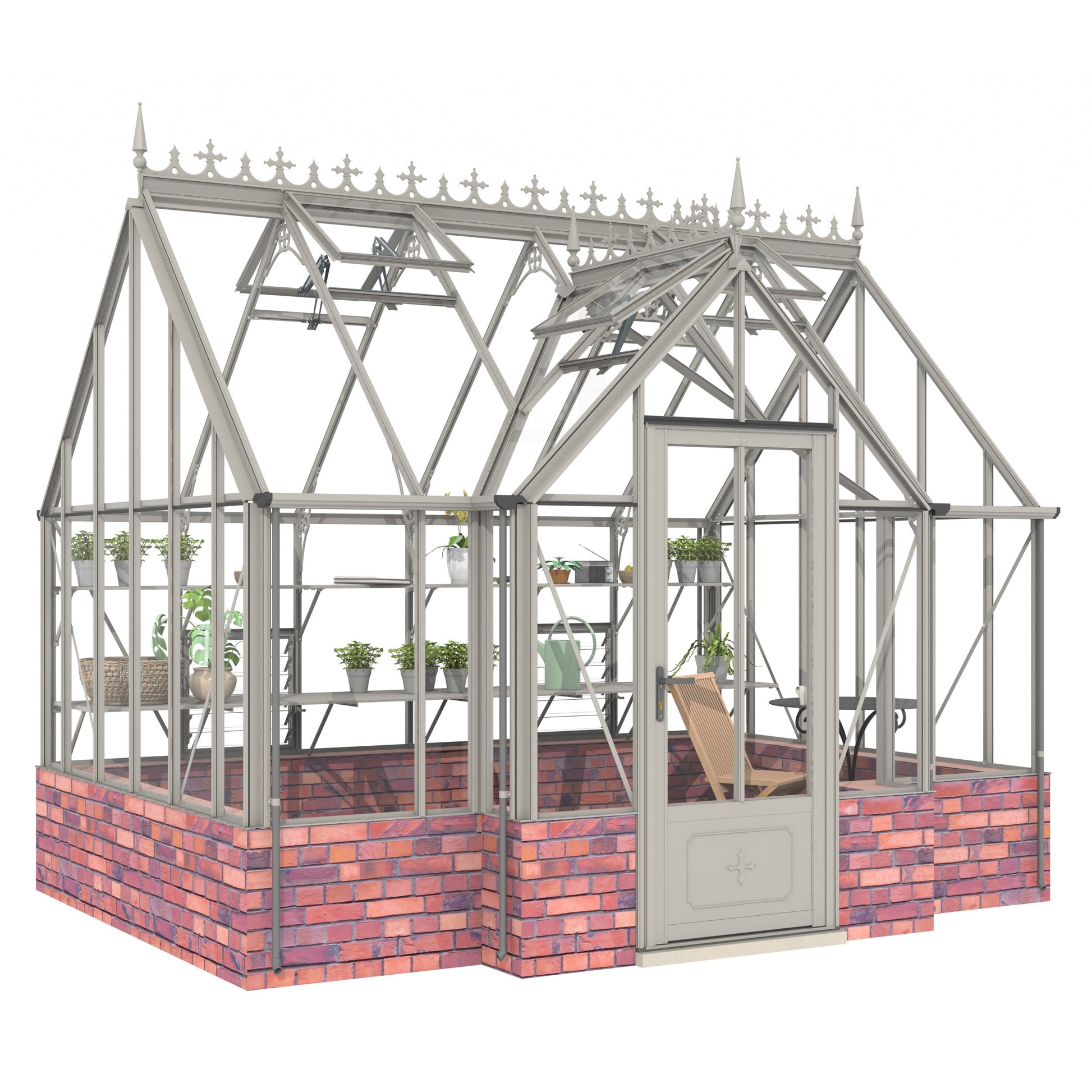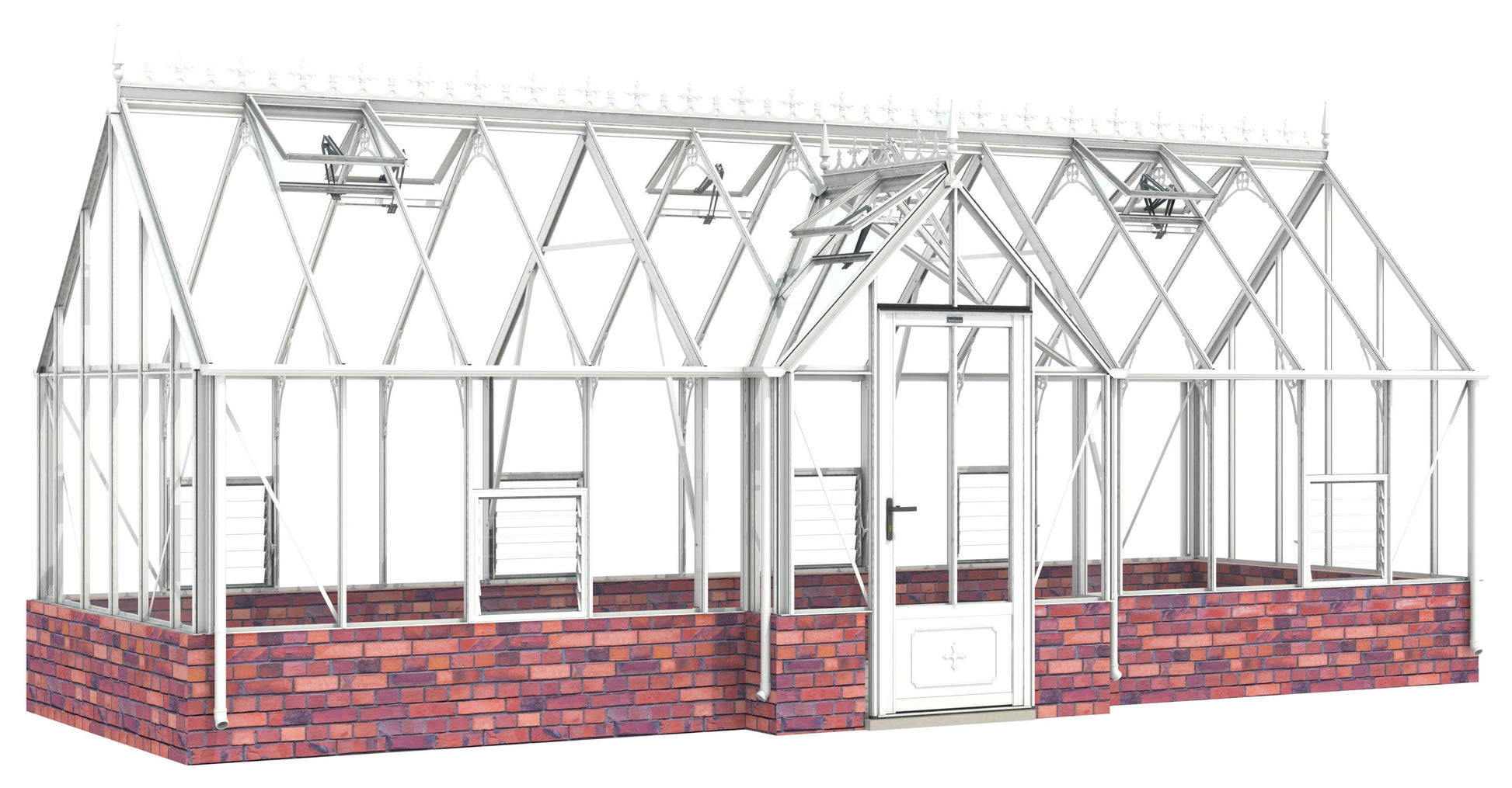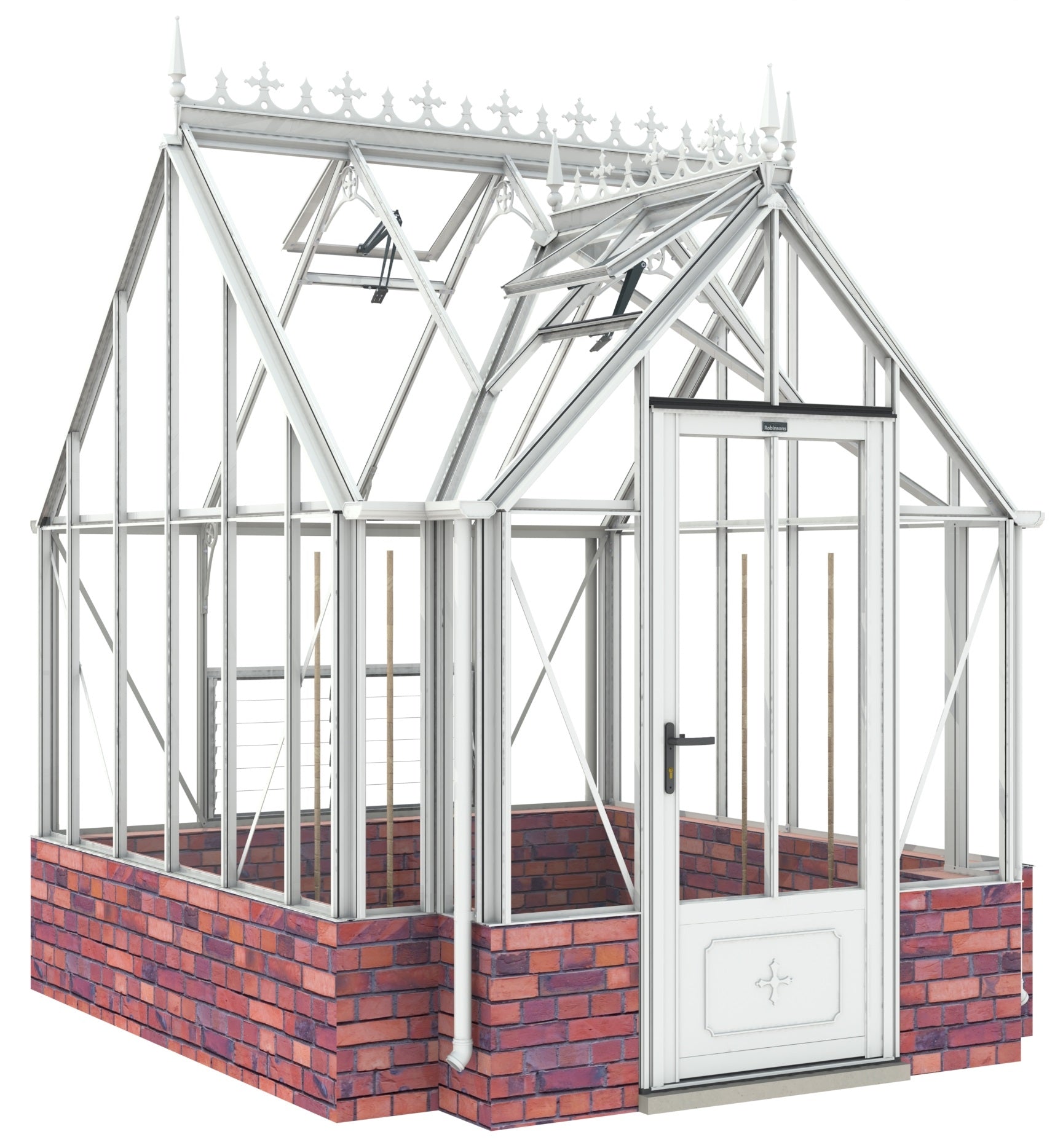 The 525mm high wall of the Rushby greenhouse enhances its Victorian charm, creating a striking and picturesque effect. To ensure a seamless installation, we will provide you with an official base plan in your order confirmation. Please refrain from building your base until you have received this document.