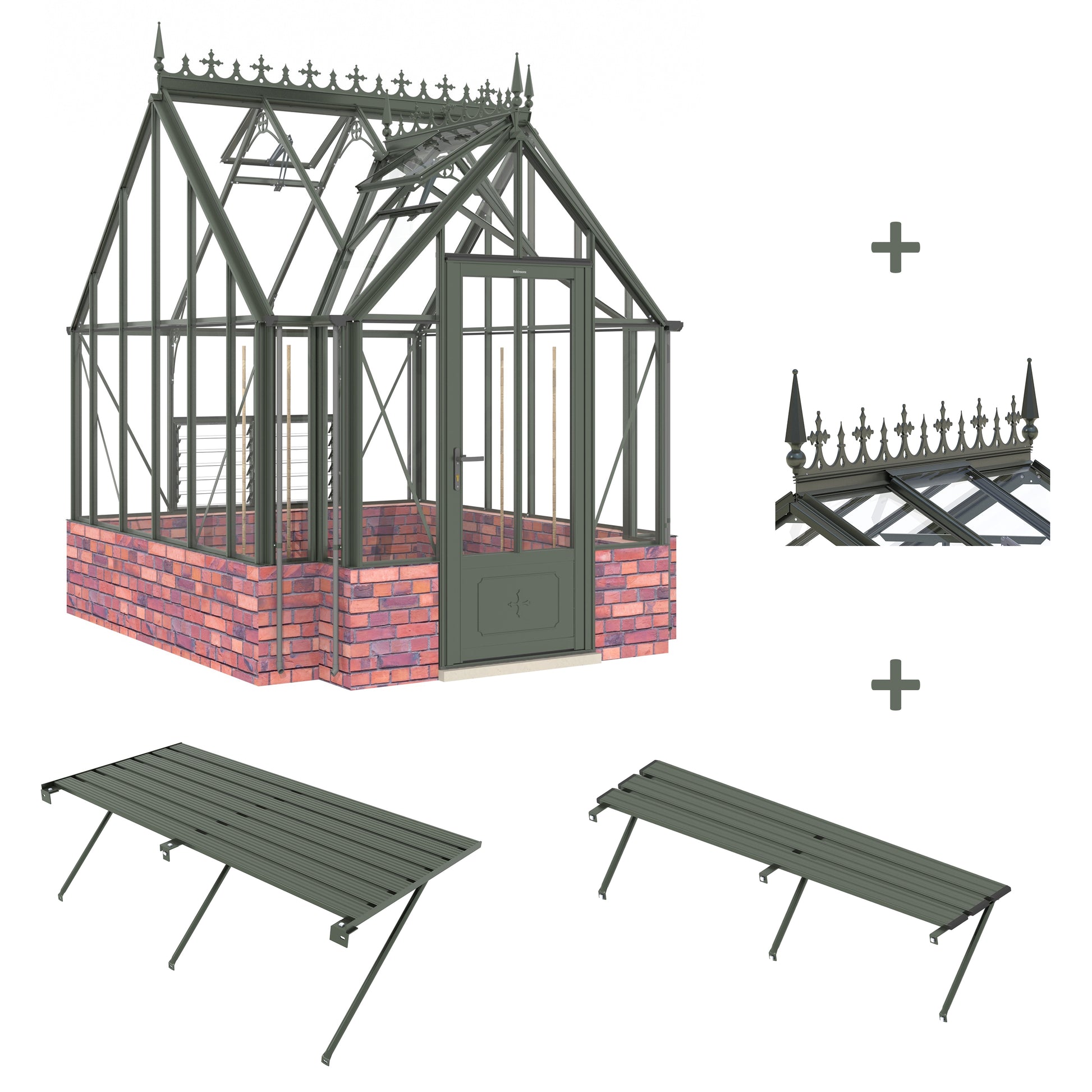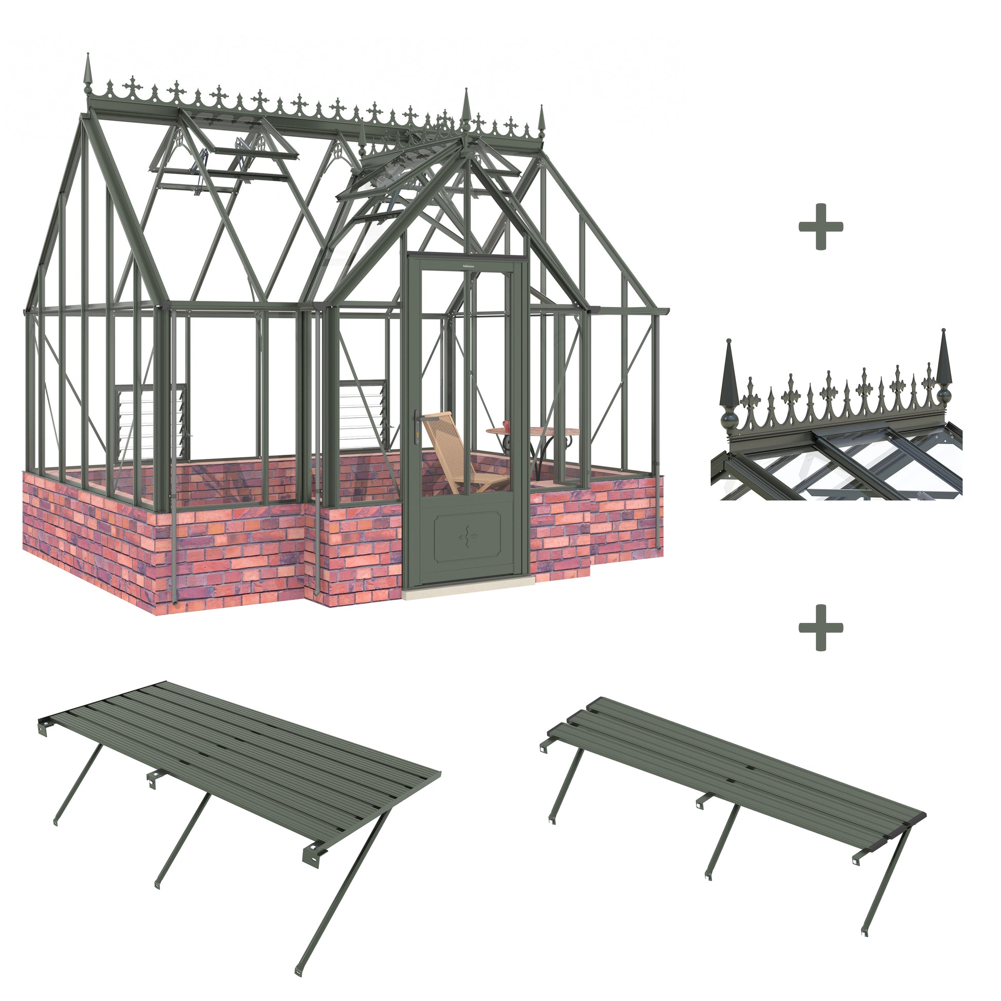 Add a touch of timeless elegance to your greenhouse with our optional ornate ridge cresting and finials. These exquisite architectural details are designed to enhance the aesthetics of your structure, bringing a classic Victorian charm to your garden.