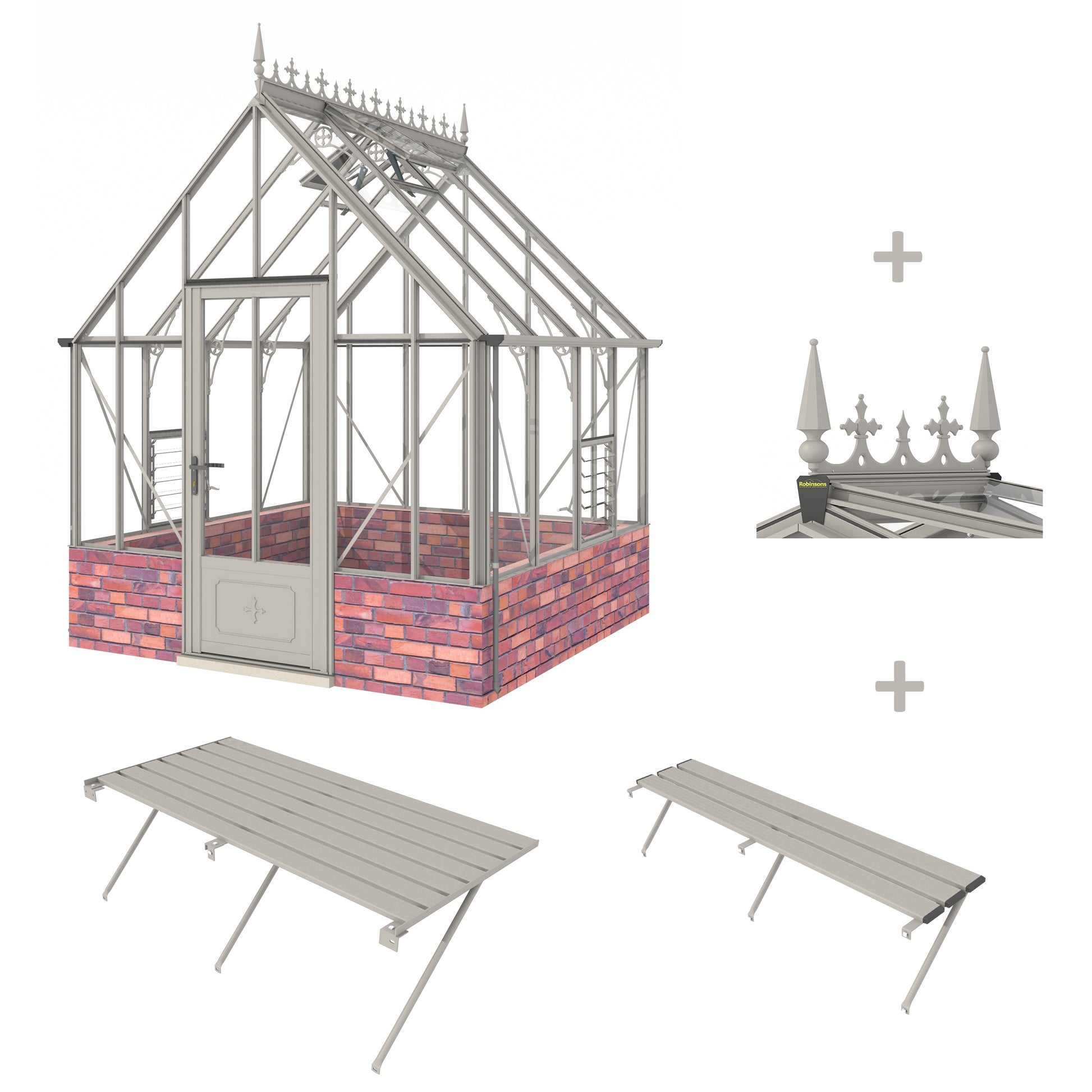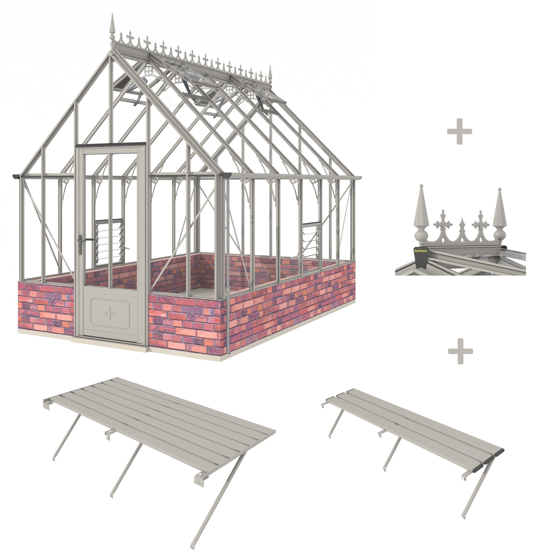 Add a touch of timeless elegance to your greenhouse with our optional ornate ridge cresting and finials. These exquisite architectural details are designed to enhance the aesthetics of your structure, bringing a classic Victorian charm to your garden.